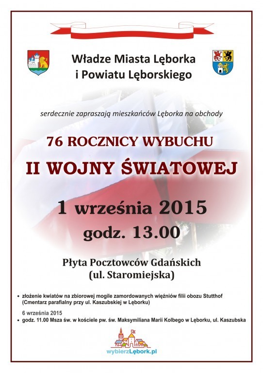 W programie hymn, okolicznościowe wystąpienie Burmistrza Lęborka, Apel Pamięci i złożenie kwiatów. Oprawę artystyczną zapewnia Orkiestra Dęta Ziemia Lęborska. Po uroczystości złożone zostaną kwiaty na zbiorowej mogile zamordowanych więźniów filii obozu Stutthof.