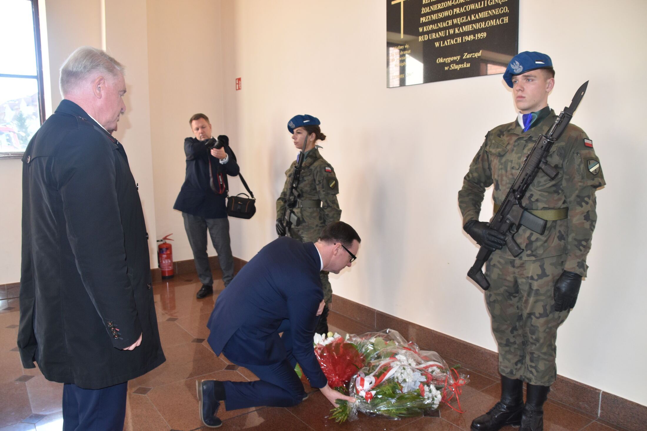 Po mszy uczestnicy udali się pod tablicę pamiątkową, gdzie złożono wiązanki kwiatów. Tablica głosi: „W hołdzie represjonowanym politycznie żołnierzom-górnikom, którzy przymusowo pracowali i ginęli w kopalniach węgla kamiennego, rud uranu i w kamieniołomach w latach 1949–1959”.