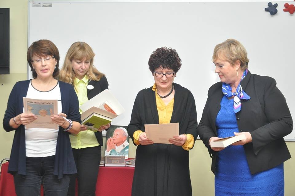 Konkurs zorganizowały i przeprowadziły Katarzyna Zając i panie polonistki. Nagrody w konkursie zakupiło Starostwo Powiatowe w Lęborku, dlatego też Pani Elżbieta Godderis Wicestarosta Lęborski wręczyła je osobiście nagrodzonym uczniom.