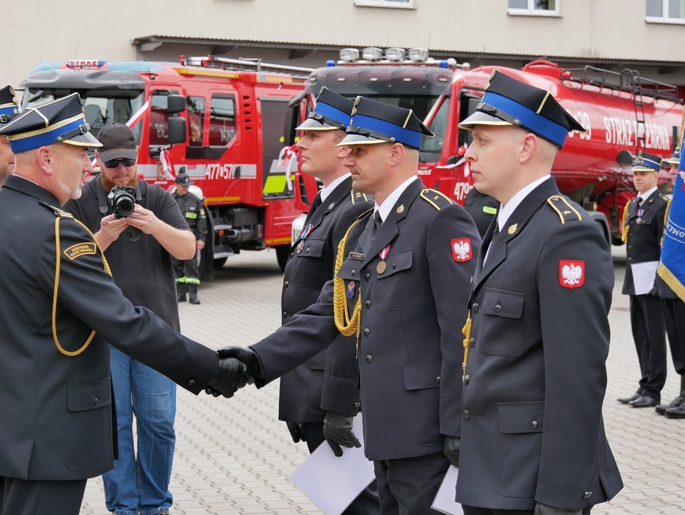 Strażackie świętowanie to grad odznaczeń wyróżnień i awansów, które otrzymali zarówno strażacy zawodowi i ochotnicy. Strażacy wzbogacili się również o sprzęt poprawiający mobilność i zdolność bojową. Lekki samochód operacyjny Hyundai Tucson otrzymała Komenda Powiatowa PSP w Lęborku. Samochód kosztował 158 tys. zł. Na montaż finansowy umożliwiający zakup złożyły się środki przekazane przez Powiat Lęborski, gminy Cewice i Wicko, Wojewódzki Fundusz Wsparcia PSP oraz Wojewódzki Fundusz Ochrony Środowiska i Gospodarki Wodnej w Gdańsku. Dwa samochody trafiły do OSP z terenu gm. Nowa Wieś Lęborska. Średni samochód ratowniczo-gaśniczy GBA 4,2/25 Volvo FLD3 trafił do OSP Krępa Kaszubska. Pojazd kosztował 1.170.099 zł. Zakup był możliwy dzięki wsparciu finansowemu Ministerstwa Klimatu i Środowiska, Narodowego Funduszu Ochrony Środowiska i Gospodarki Wodnej oraz WFOŚiGW w Gdańsku. Dotacji na zakup samochodu udzieliły też: MSWiA, KG PSP, Gmina Nowa Wieś Lęborska, Starostwo Powiatowe w Lęborku. OSP w Nowej Wsi Lęborskiej otrzymał ciągnik siodłowy z cysterną do transportu środków gaśniczych. MAN TGS 18.440 kosztował 95 tys. zł. Na montaż finansowy umożliwiający zakup złożyły się środki przekazane przez: sołectwa gminy Nowa Wieś Lęborska, Gminę Nowa Wieś Lęborska, Powiat Lęborski, Farm Frites Poland SA, Nadleśnictwo Strzebielino, Przedsiębiorstwo AMG w Lęborku oraz firmę Usługi Logistyczne Grzegorz Żywicki.