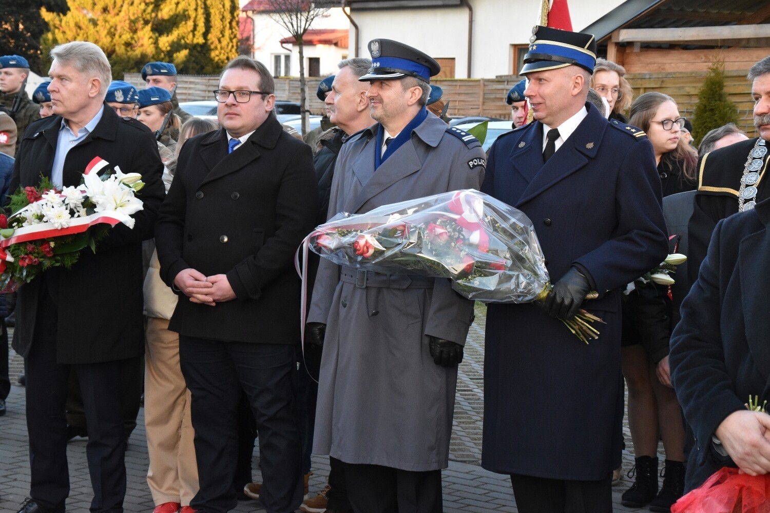 W imieniu Powiatu Lęborskiego pod pamiątkową tablicą kwiaty złożyli: Edmund Głombiewski – Wicestarosta Lęborski, wiceprzewodniczący Rady Powiatu Lęborskiego: Marian Borek i Witold Krużycki, członkowie Zarządu Powiatu: Jacek Perłak i Ryszard Wenta oraz Danuta Mikołajczyk – Sekretarz Powiatu. Podczas uroczystości nie zabrakło przedstawicieli Miasta Lęborka z burmistrzem Witoldem Namyślakiem i Jarosławem Litwinem – Przewodniczącym Rady Miasta Lęborka. Hołd „wyklętym” oddała również: Iwona Mielewczyk – radna Sejmiku Województwa Pomorskiego. W uroczystej mszy odprawionej przez proboszcza parafii – Rafała Cieszyńskiego, uczestniczyli także członkowie rodziny rotmistrza Jana Skorba, żołnierza 5. Wileńskiej Brygady AK oraz weteran II wojny światowej. Obecni byli również weterani: por. Jan Stosik i por. Jan Dulko - założyciel i dowódca działającej na Ziemi Lęborskiej do lipca 1951 r. antykomunistycznej organizacji młodzieżowej „Polska Organizacja Zbrojna”, za co został skazany przez politycznie zależny sąd na 8 lat więzienia.