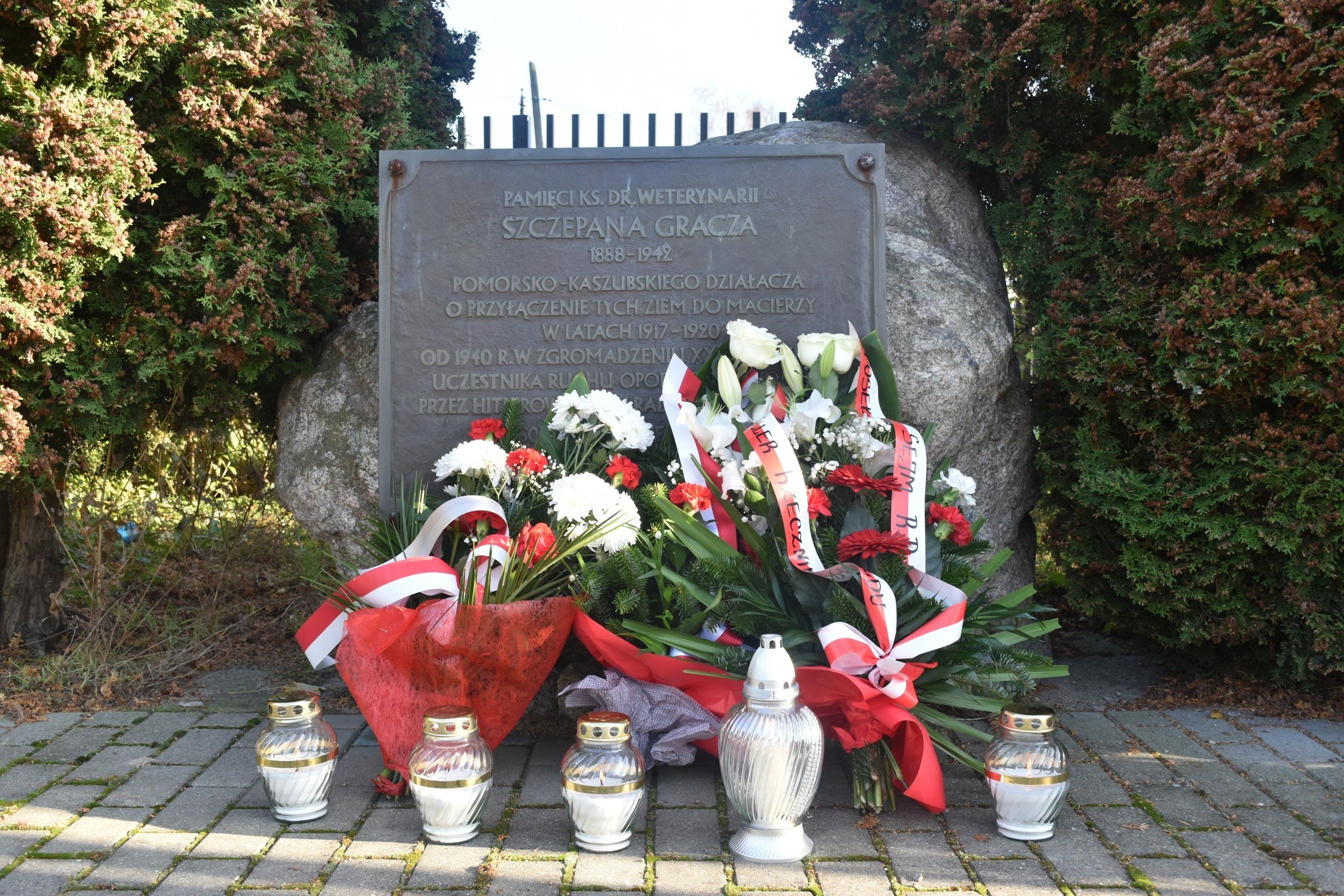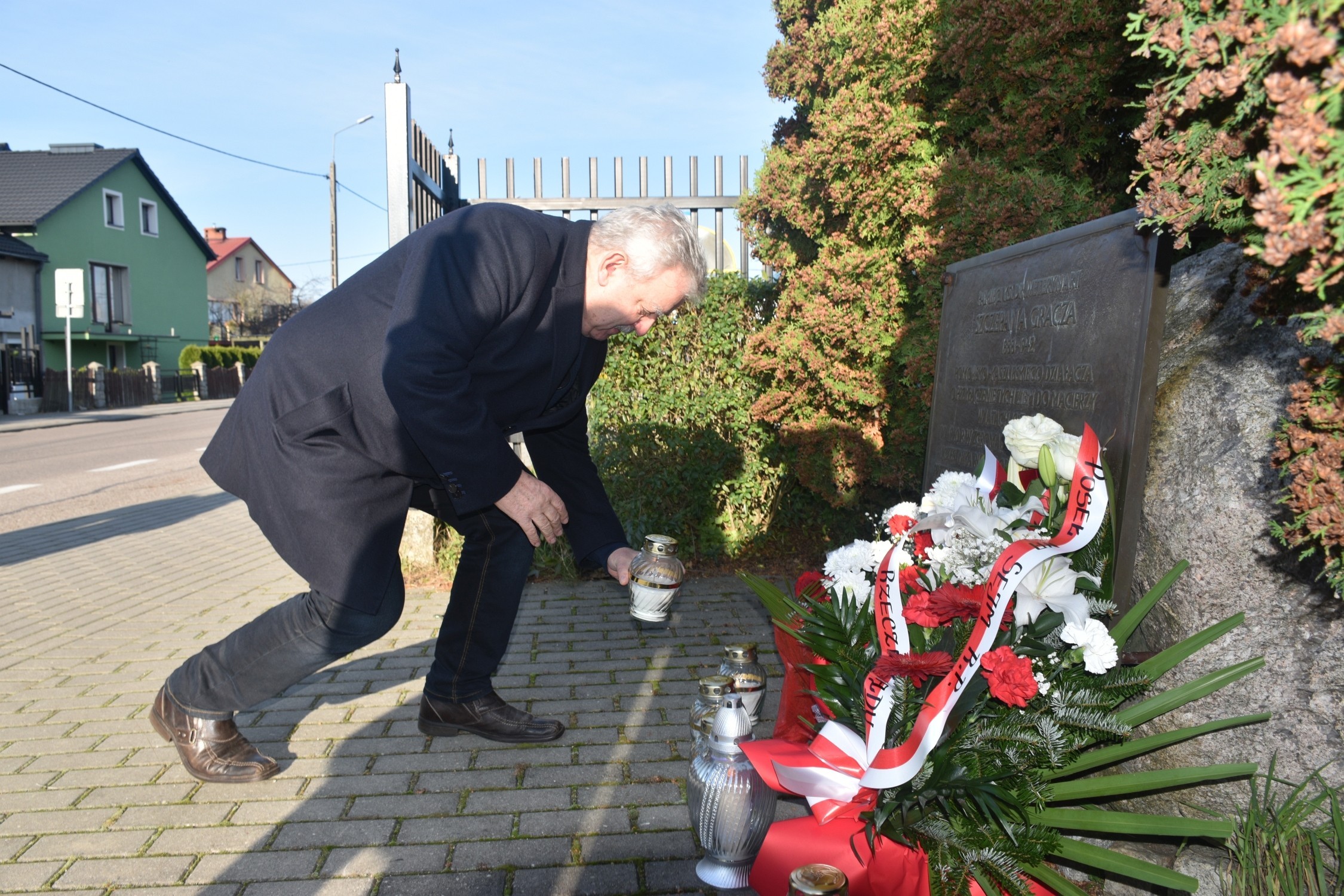 Po uroczystościach przy ul. Targowej, senator K. Kleina w towarzystwie starosty i burmistrza, zapalili znicze pod pomnikiem ks. Szczepana Gracza.