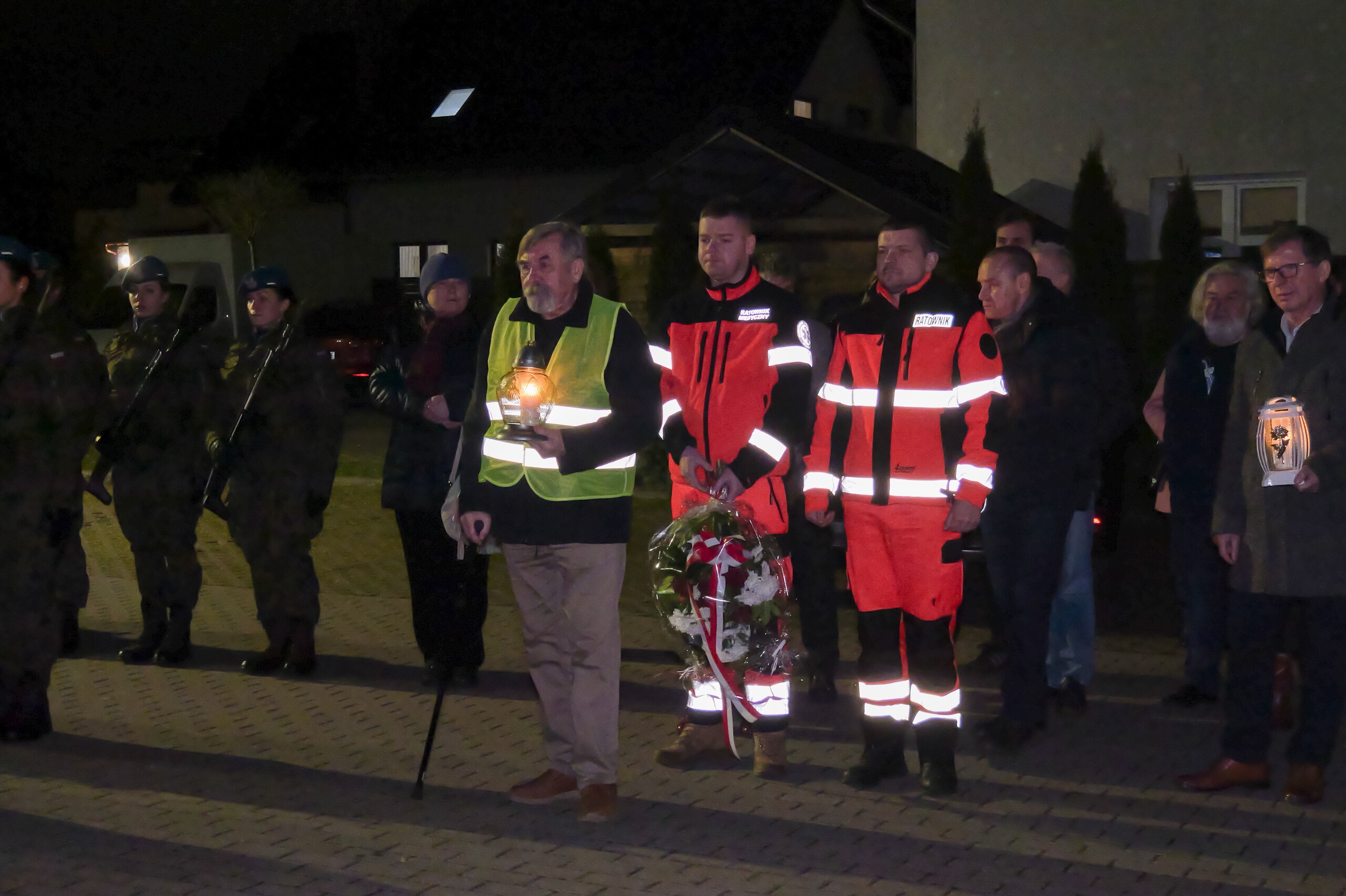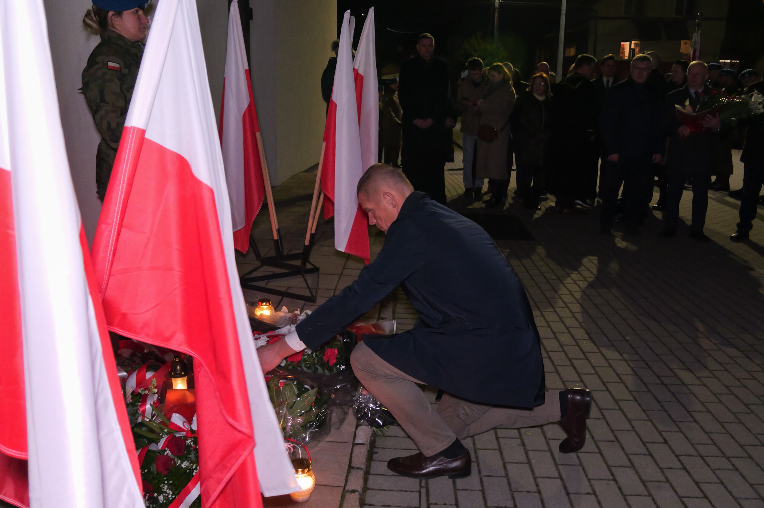 Po mszy odprawionej przez proboszcza parafii pw. Miłosierdzia Bożego – Rafała Cieszyńskiego, uczestnicy uroczystości złożyli wiązanki kwiatów i zapalili symboliczne znicze pod tablicą pamiątkową. Powiat Lęborski reprezentowali: Tomasz Litwin – Starosta Lęborski i wicestarosta Adrian Wenta, którzy złożyli kwiaty wspólnie z reprezentującym Miasto Lębork – burmistrzem Jarosławem Litwinem. Licznej reprezentacji radnych powiatowych i miejskich towarzyszyli mieszkańcy miasta i powiatu, przedstawiciele organizacji społecznych i ugrupowań politycznych. Okolicznościowe wiązanki złożyli także przedstawiciele służb mundurowych i ratownictwa medycznego. Wśród uczestników uroczystości, podobnie jak w poprzednich latach wzięli udział przedstawiciele rodziny rtm. Jana Skorba.