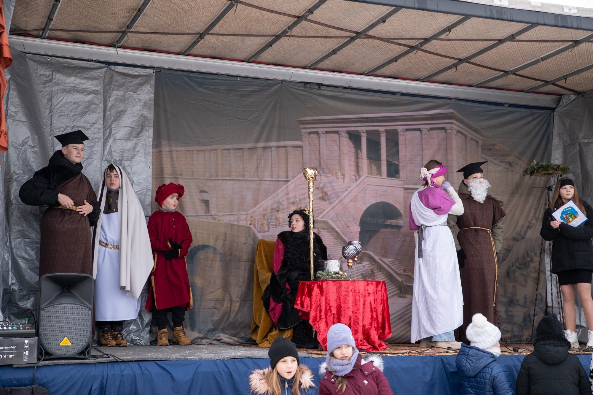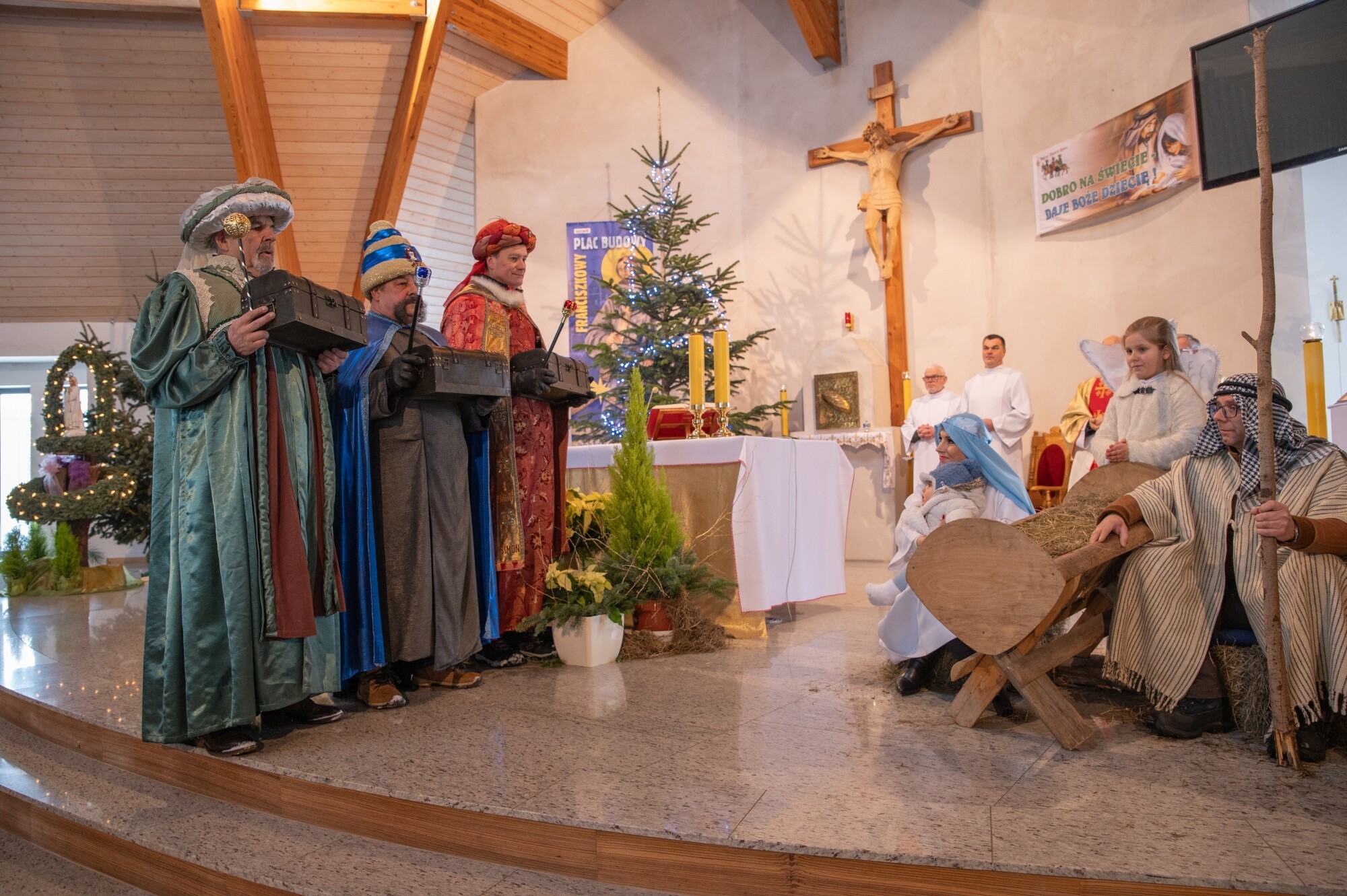 „W jasełkach leży” – takie hasło towarzyszyło uczestnikom przemarszu. To odniesienie do tradycji przedstawień jasełkowych zapoczątkowanych 800 lat temu przez św. Franciszka w Greccio we Włoszech. Stamtąd tradycja rozprzestrzeniła się na cały świat i wciąż zachęca kolejne pokolenia chrześcijan do tworzenia bożonarodzeniowych widowisk. I takie też przedstawienie na zaaranżowanej w Lubowidzu polowej scenie można było obejrzeć w wykonaniu młodzieży ze Szkoły Podstawowej nr 5 w Lęborku, przygotowanej przez Ewę Lewnę i Beatę Łakocką.