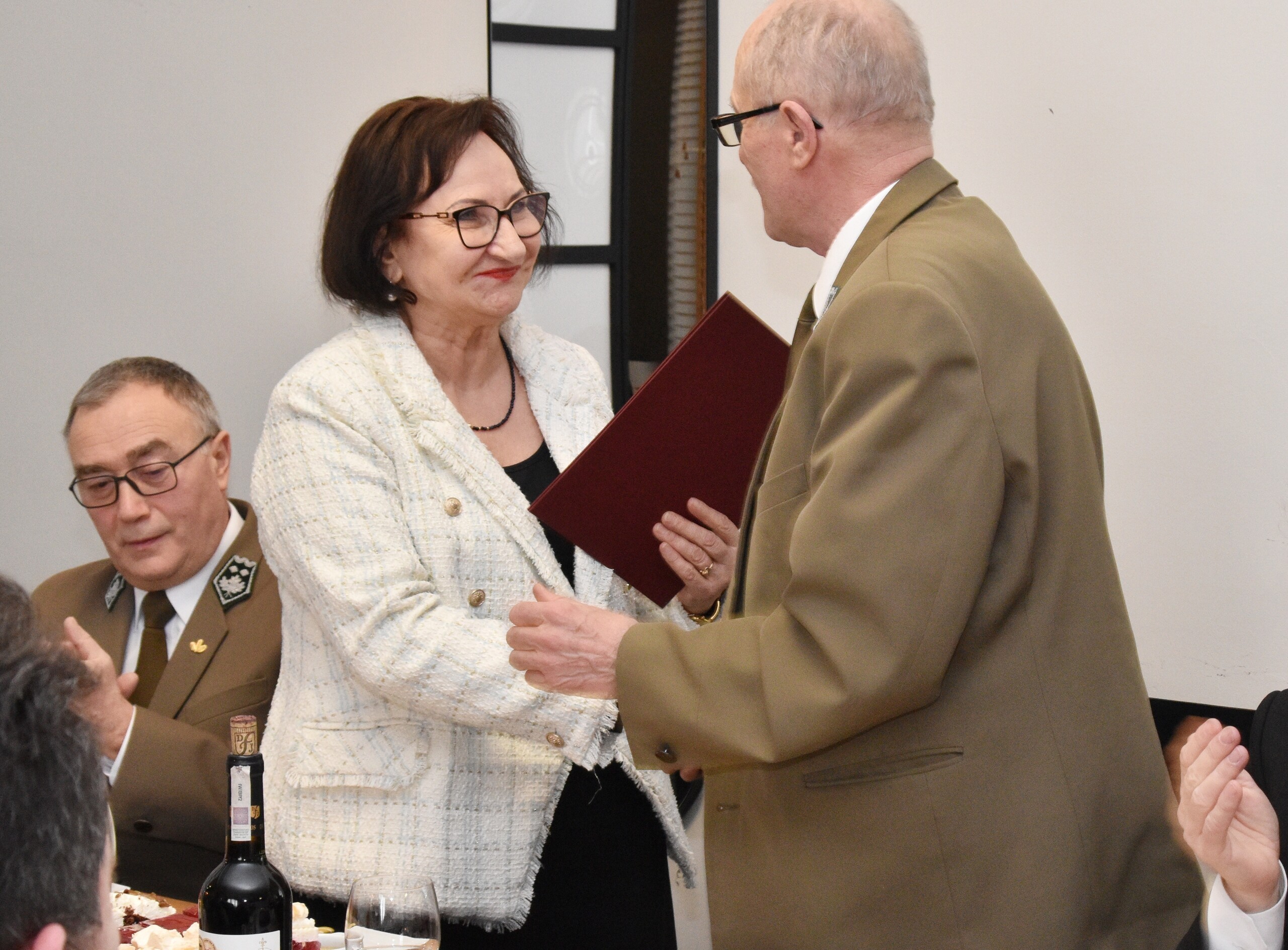 Stanowisko nadleśniczego pan Jan objął w 2009 roku, a więc minęło blisko 15 lat. To, jak napisała w liście okolicznościowym, starosta Alicja Zajączkowska, lata rozwoju i sukcesów w lęborskim nadleśnictwie. W czasach zarządzania przez pana Jana miejscowymi lasami, pojawił się w nich nowoczesny system monitoringu przy zastosowaniu kamer wysokiej rozdzielczości. Technologiczne nowości sprawiły, że zarówno pod względem pożarowym jak i skutków niewłaściwych zachowań użytkowników terenów leśnych, stały się one bezpieczniejsze. To również czas pozyskiwania środków zewnętrznych na działania służące ochronie przyrodniczych zasobów powiatu. Jan Dominiecki stał się również prekursorem wdrażania rozwiązań energetycznych wymiernie redukujących ślad węglowy. Urządzenia OZE pozwoliły również ograniczyć koszty funkcjonowania pomieszczeń zarządzanych przez nadleśnictwo. Życzenia odchodzącemu na emeryturę leśnikowi złożyli przedstawiciele samorządów, służb mundurowych i kapelan o. Robert Wołyniec – proboszcz parafii i kustosz Sanktuarium św. Jakuba Ap. w Lęborku. W uroczystym spotkaniu uczestniczyli: starosta Alicja Zajączkowska, wicestarosta Edmund Głombiewski, samorządowcy z gmin powiatu lęborskiego, a także Komendant Powiatowy Policji - insp. Tomasz Majkowski, dowódca I Lęborskiego Batalionu Zmechanizowanego im. gen. Jerzego Jastrzębskiego - ppłk Michał Pietrzak oraz st. kpt. Dawid Główczewski – zastępca Komendanta Powiatowego Państwowej Straży Pożarnej. Gratulacje, okolicznościowe upominki, okolicznościowe listy i grawertony oraz ogrom wspomnień łączących zebranych podczas minionych lat wspólnie realizowanych działań – to był przewodni motyw tego spotkania. Jak zaznaczyli starosta i wicestarosta, powiat na zawsze w pamięci zatrzyma doskonałą współpracę z nadleśniczym w zakresie wspólnych realizacji inwestycji drogowych, w których pan Jan osobiście wspierał inicjatywy powiatu w strukturach zarządczych Lasów Państwowych. Efektem tej części współpracy jest wzrost bezpieczeństwa na powiatowych drogach dla wszystkich ich użytkowników oraz wymierna poprawa wizerunku powiatu lęborskiego pod kątem atrakcyjności dla turystów i potencjalnych inwestorów. W uroczystości wziął również udział dotychczasowy zastępca, a obecnie następca Jana Dominieckiego – Jan Banacki, z pochodzenia tczewianin, który wiele lat przepracował w Starogardzie Gdańskim, a później zdecydował się związać przyszłość z Lęborkiem. Jak zadeklarował przyszły nadleśniczy, będzie kontynuował dobrą współpracę z samorządami, służbami i innymi podmiotami, z którymi relacje utrzymuje Nadleśnictwo Lębork.