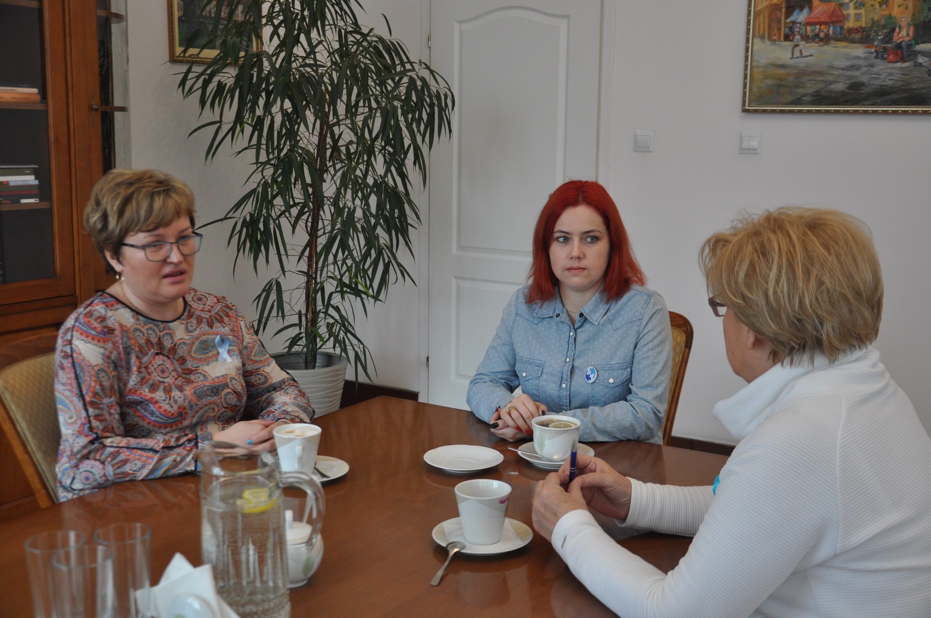 Starosta lęborski, Teresa Ossowska – Szara omawiała podczas spotkania bieżącą działalność stowarzyszenia i planowane przedsięwzięcia z Agnieszką Pujsza – Pomorską, prezesem stowarzyszenia oraz wiceprezesem, Emilią Wolską..
