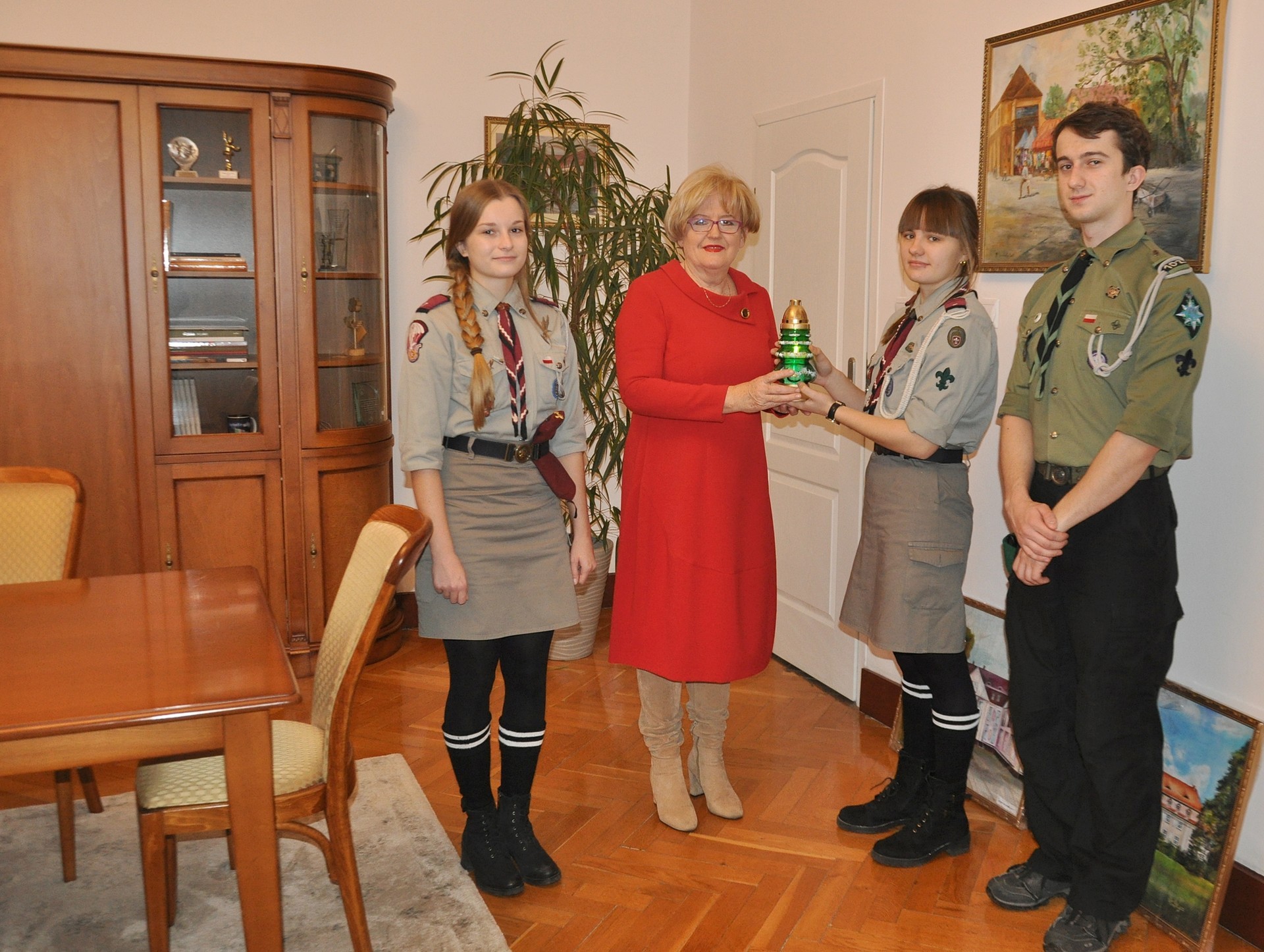 Starosta Teresa Ossowska – Szara gościła w czwartek harcerzy z lęborskiego hufca ZHP. Młodzi ludzie odwiedzili władze powiatu ze światełkiem pokoju.