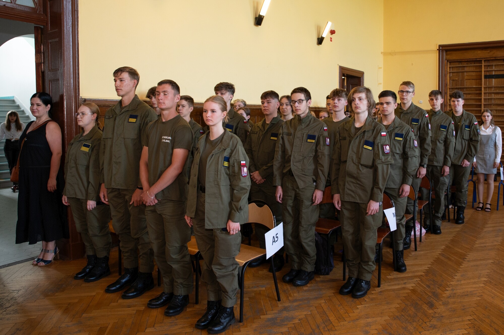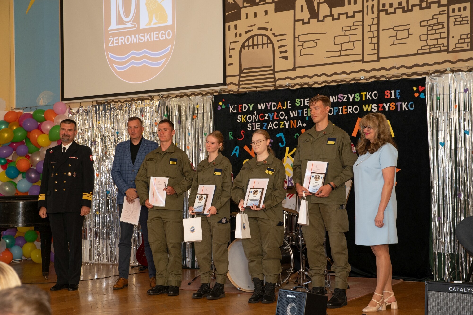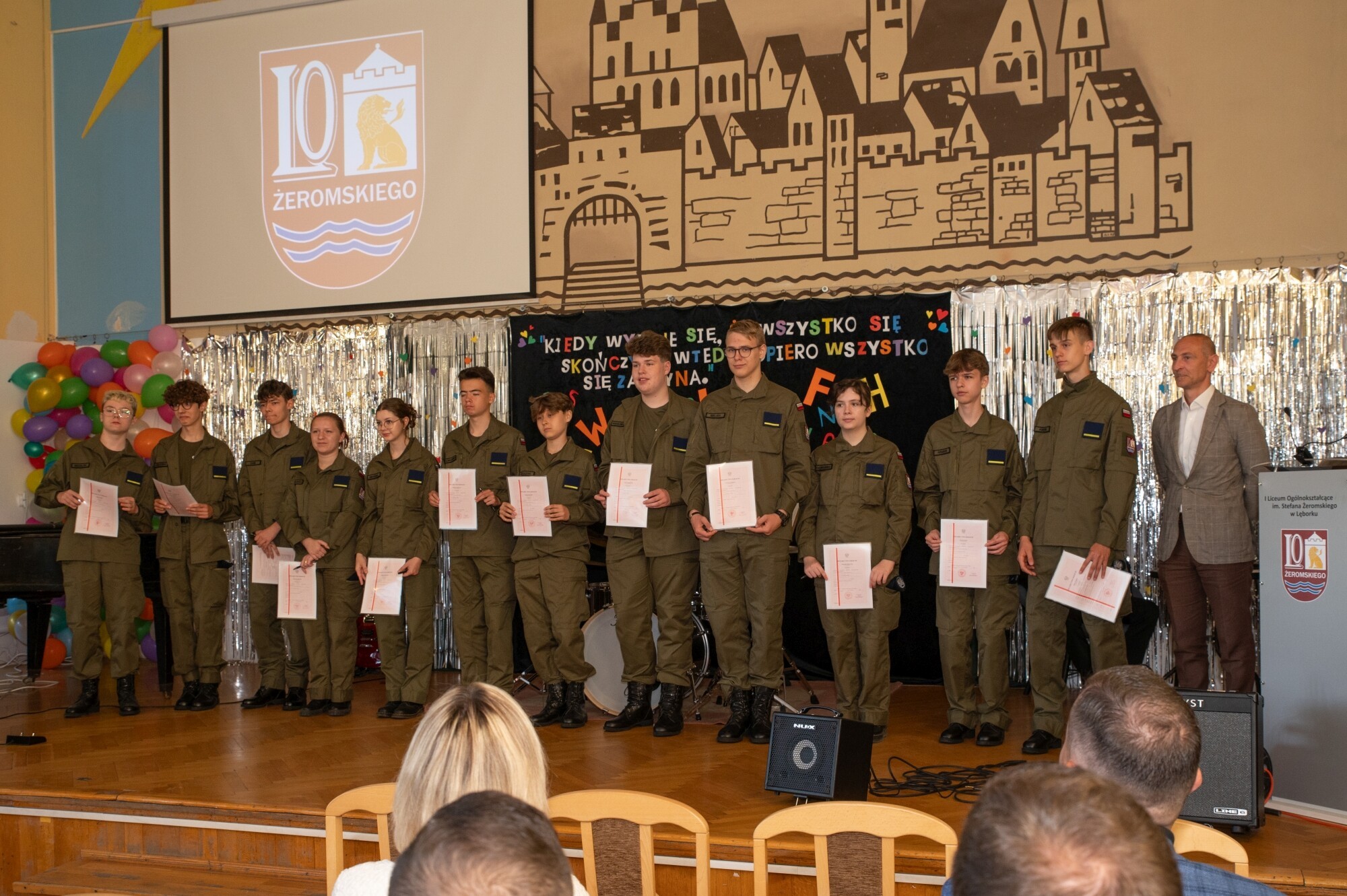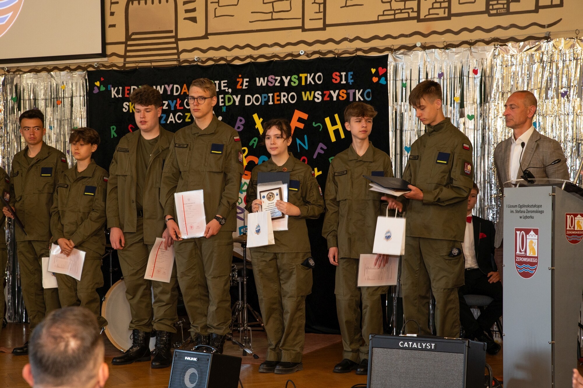 Grad wyróżnień spadł na uczniów wybitnych w Liceum Ogólnokształcącym nr 1. To w tej szkole aż 144 osoby otrzymały świadectwa z biało-czerwonymi paskami. 42 razy tylko w ciągu tego roku szkolnego uczniowie uczestniczyli w konkursach i olimpiadach, zdobywając znaczące miejsca. Kmdr por. Krzysztof Rochewicz z Regionalnego Centrum Informatyki w Gdyni wyróżnił najlepszych uczniów z klas CYBER.MIL.