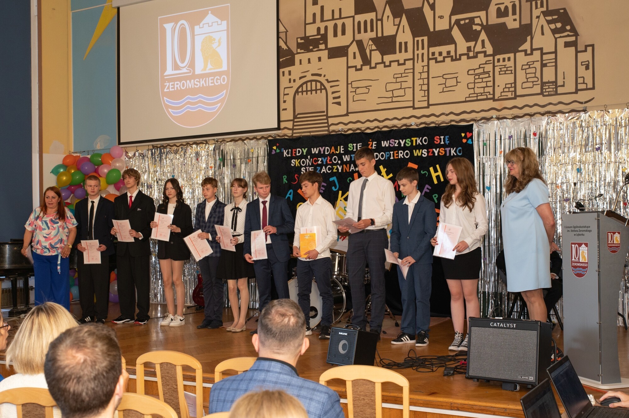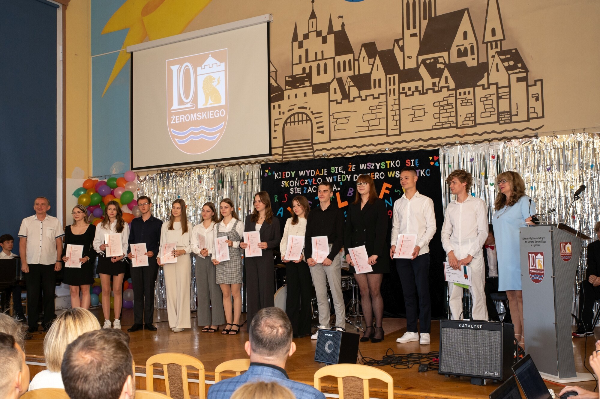 Niezliczoną ilość wyróżnień i nagród otrzymali także uczniowie w Powiatowym Centrum Edukacyjnym. Doceniono wyniki w nauce, reprezentowanie szkoły w zewnętrznych konkursach, a także wyniki sportowe i wybitne osiągnięcia w przedmiotach zawodowych. – Gratuluje osiągnięć i życzę wam radosnych i bezpiecznych wakacji. Z wakacyjnej swobody korzystajcie tak, by we wrześniu wrócić do szkoły w doskonałych humorach i z zapałem do nauki – mówił do zebranych Wicestarosta Lęborski Adrian Wenta.