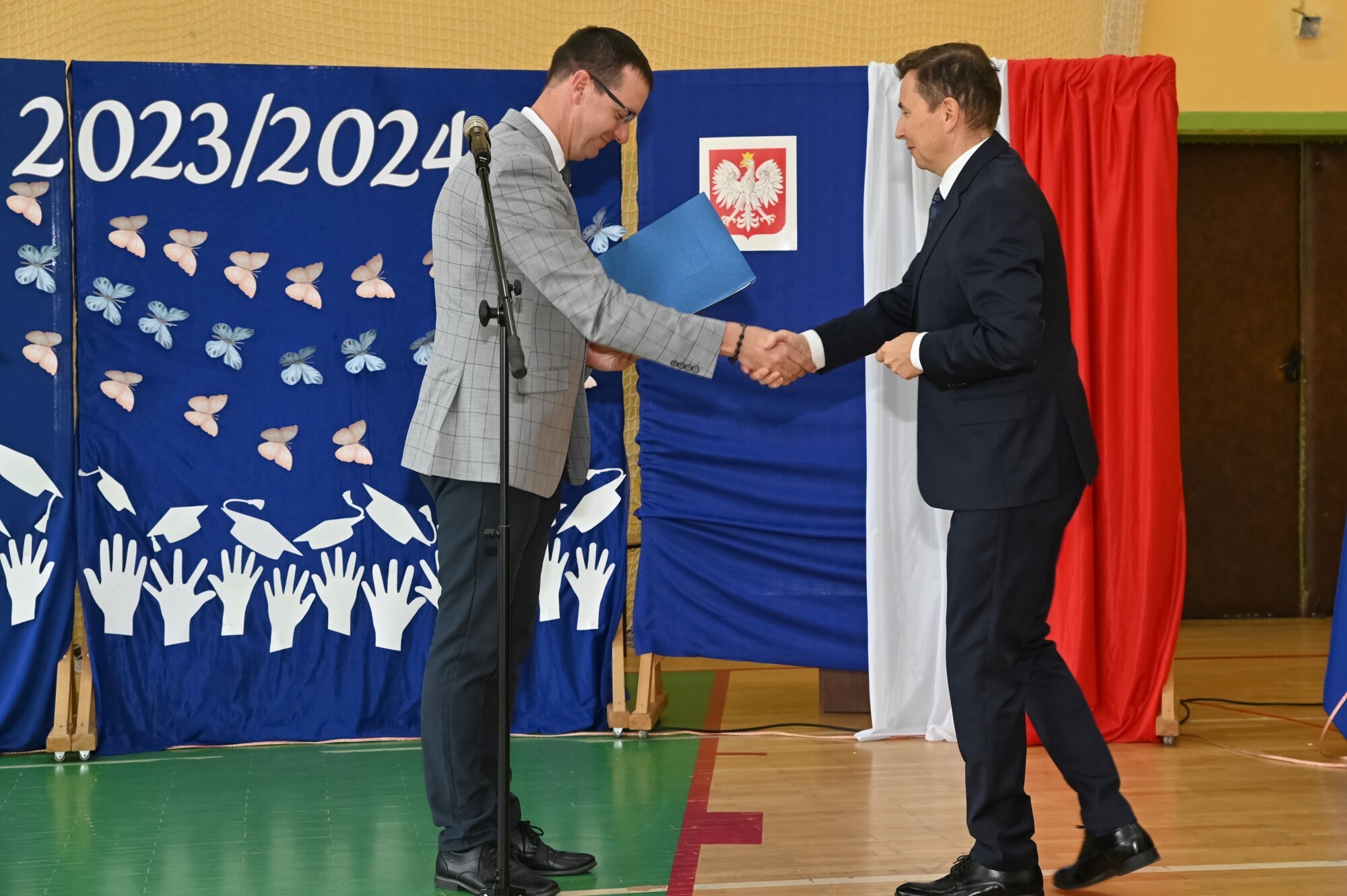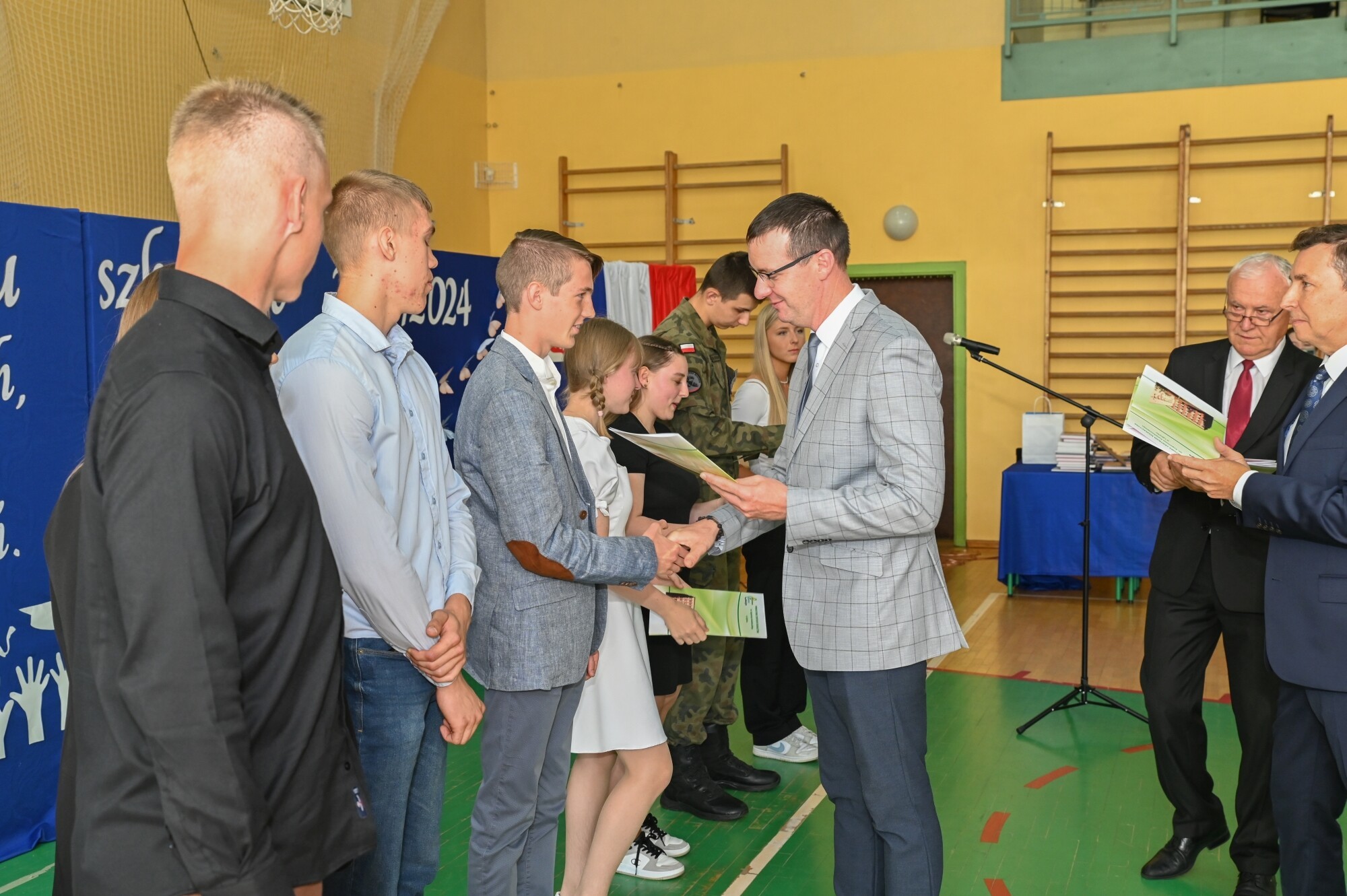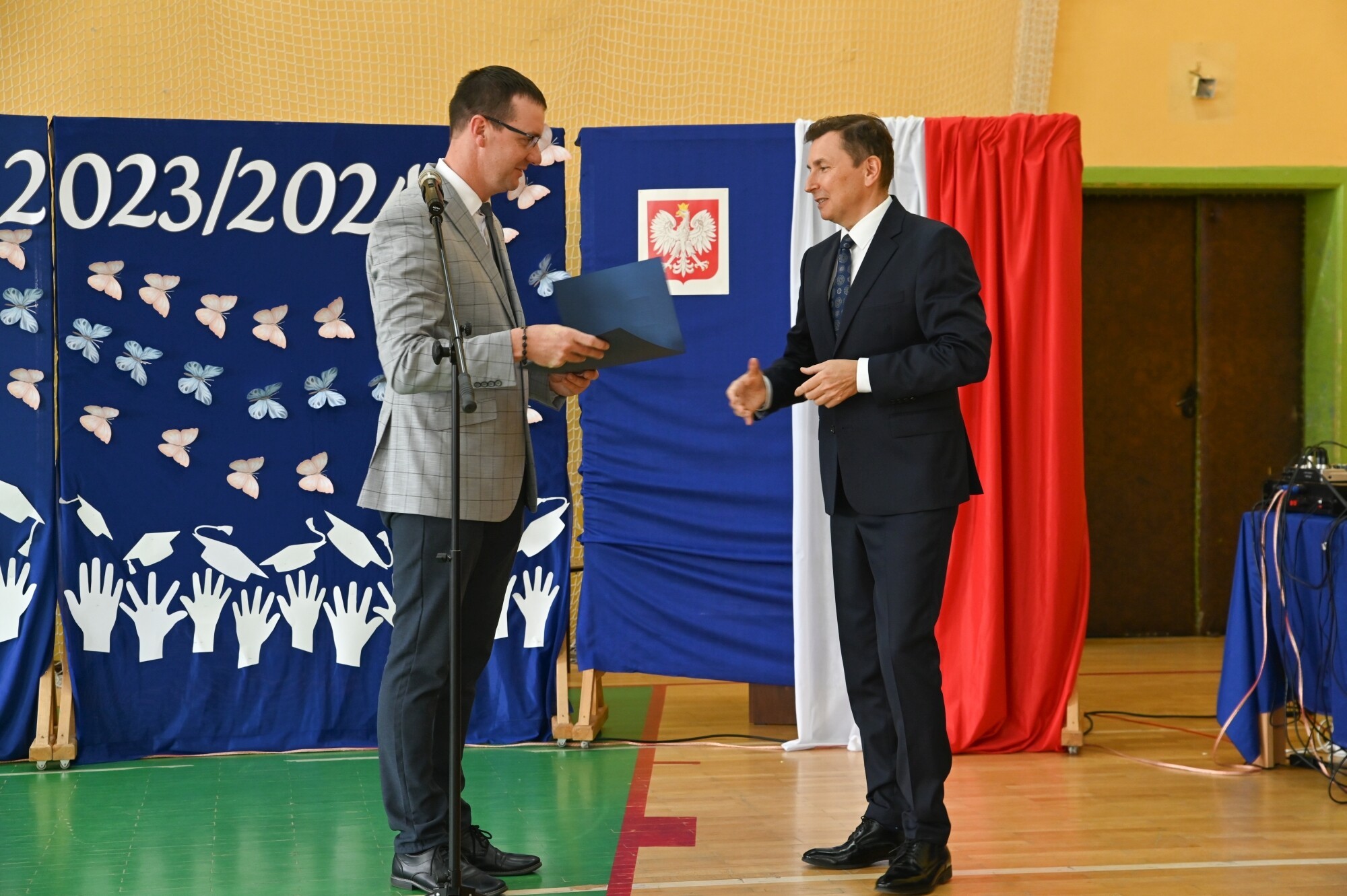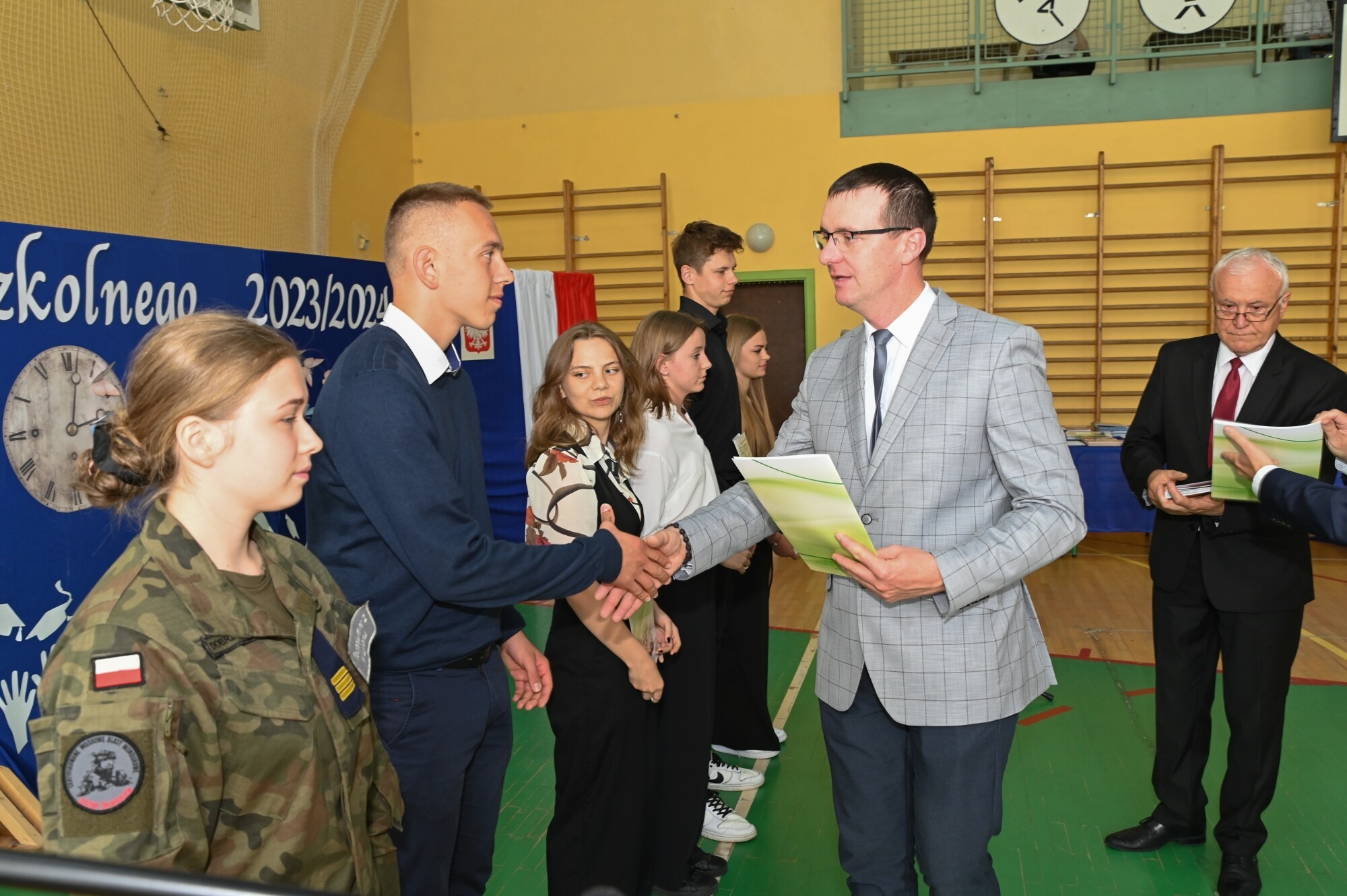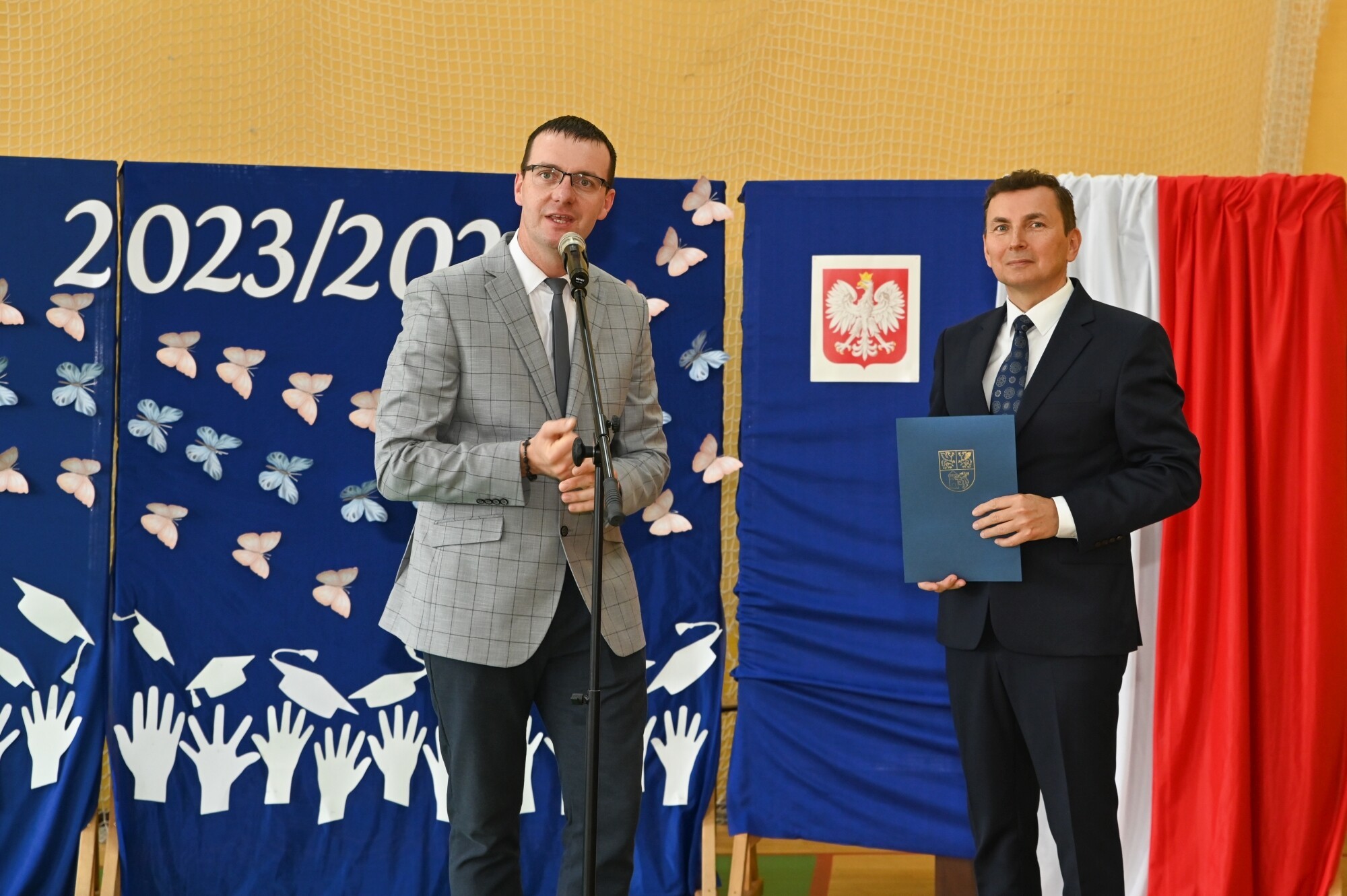 Podziękowania dla kadry nauczycielskiej, rodziców wspierających szkołę wychowawczo, ale często i organizacyjnie oraz uczniów osiągających nie tylko te najwyższe noty, ale przede wszystkim pracujących systematycznie na miarę swoich możliwości skierował starosta Tomasz Litwin w specjalnym liście do szkolnych społeczności. - Pamiętajcie, że każda inwestycja w rozwój osobisty prędzej czy później zaprocentuje korzyściami będącymi kolejnymi elementami konstrukcji trampoliny, która da wam pewne odbicie do realizacji waszych zamierzeń z sukcesem. Wszyscy bez wyjątku, uwierzcie w siebie, bo w bardzo niedalekiej przyszłości to wy właśnie będziecie kształtować naszą rzeczywistość – zaznaczył w liście Starosta Lęborski.