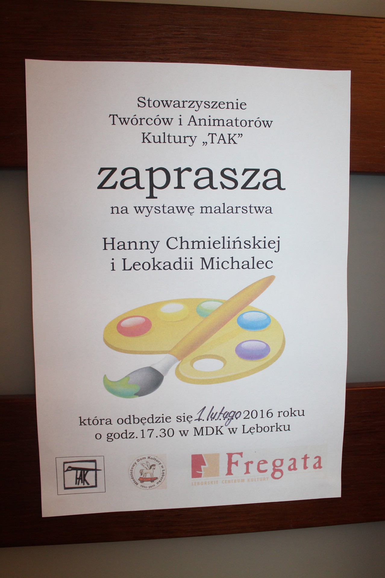 1 lutego br. Stowarzyszenie Twórców i Animatorów Kultury "TAK" zorganizowało wernisaż prac malarskich Hanny Chmielińskiej i Leokadii Michalec.