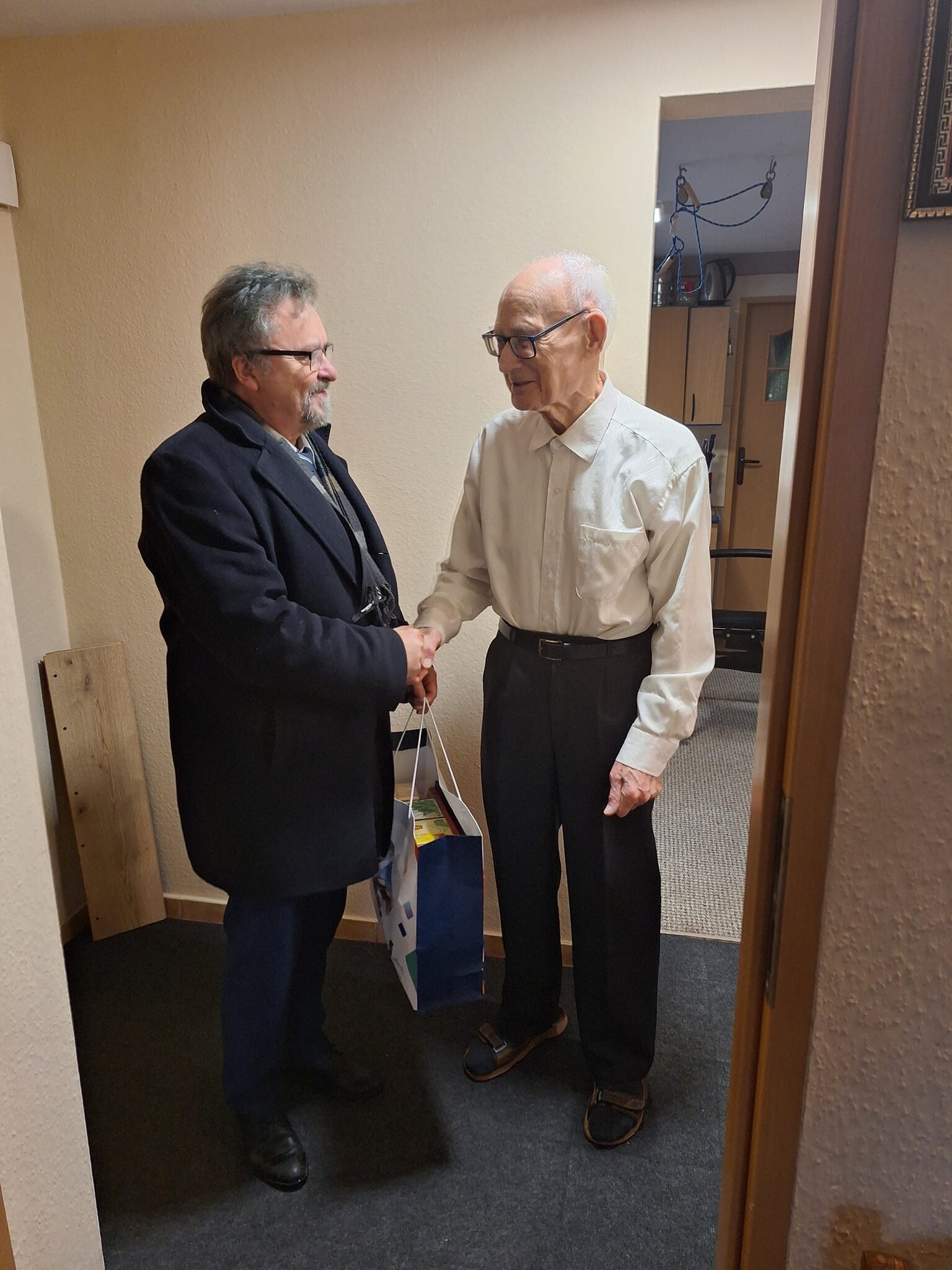 Wicestarosta Lęborski - Edmund Głombiewski udał się 22 grudnia 2023 r. z przedświąteczną wizytą, upominkiem i życzeniami do porucznika Stefana Dulko.