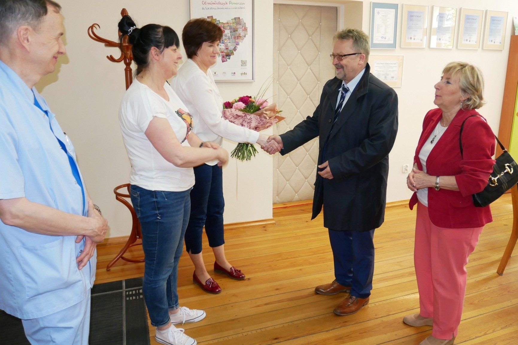 Z serdecznymi życzeniami i podziękowaniami za nieraz niezwykle trudną służbę dla obchodzących dzisiaj swoje święto pielęgniarek i położnych, w lęborskim SPS ZOZ złożyli wizytę: Edmund Głombiewski – Wicestarosta Lęborski i Danuta Mikołajczyk – sekretarz powiatu.