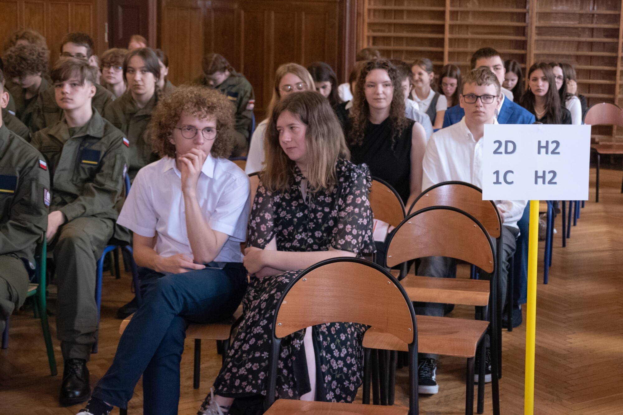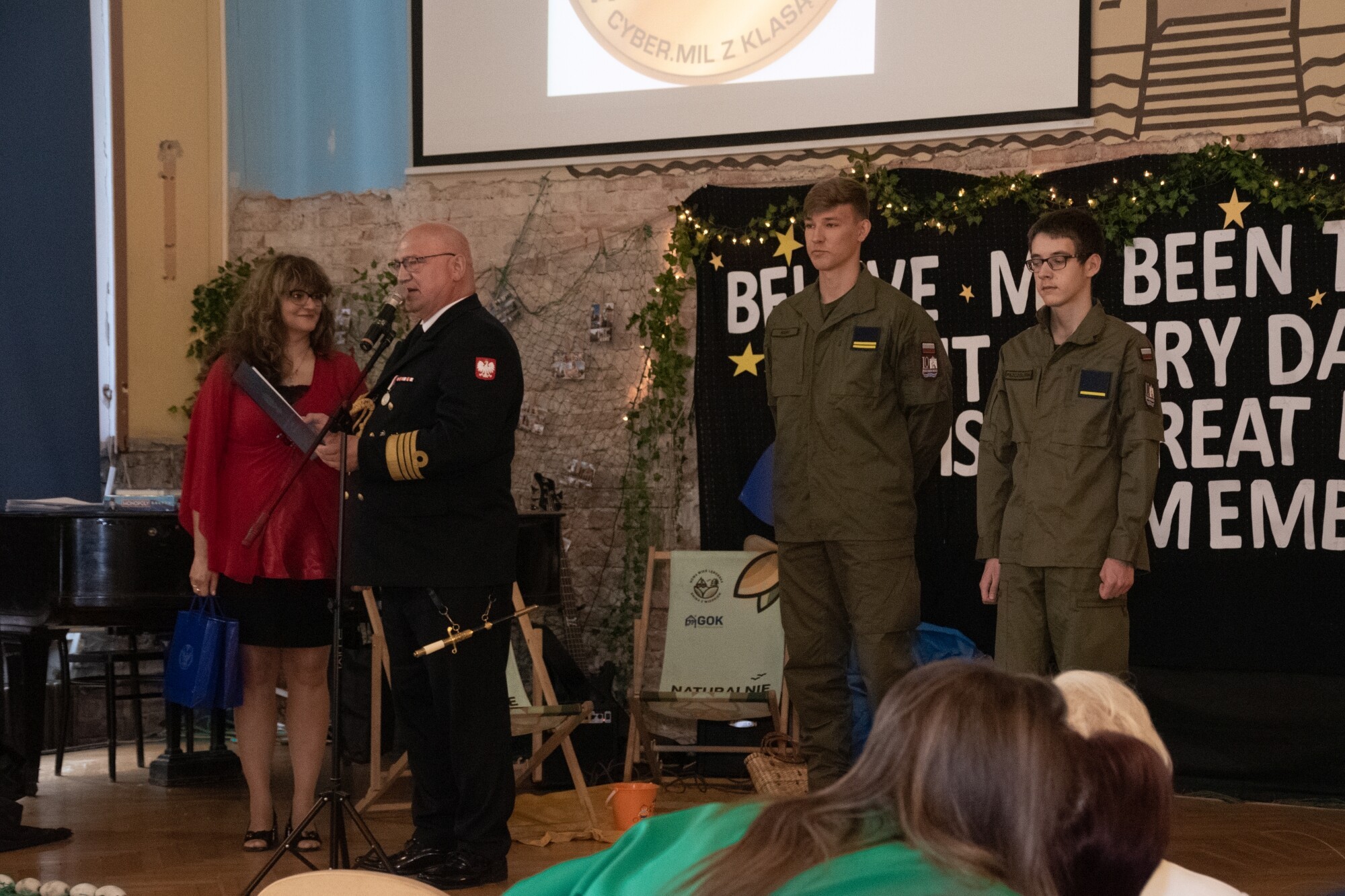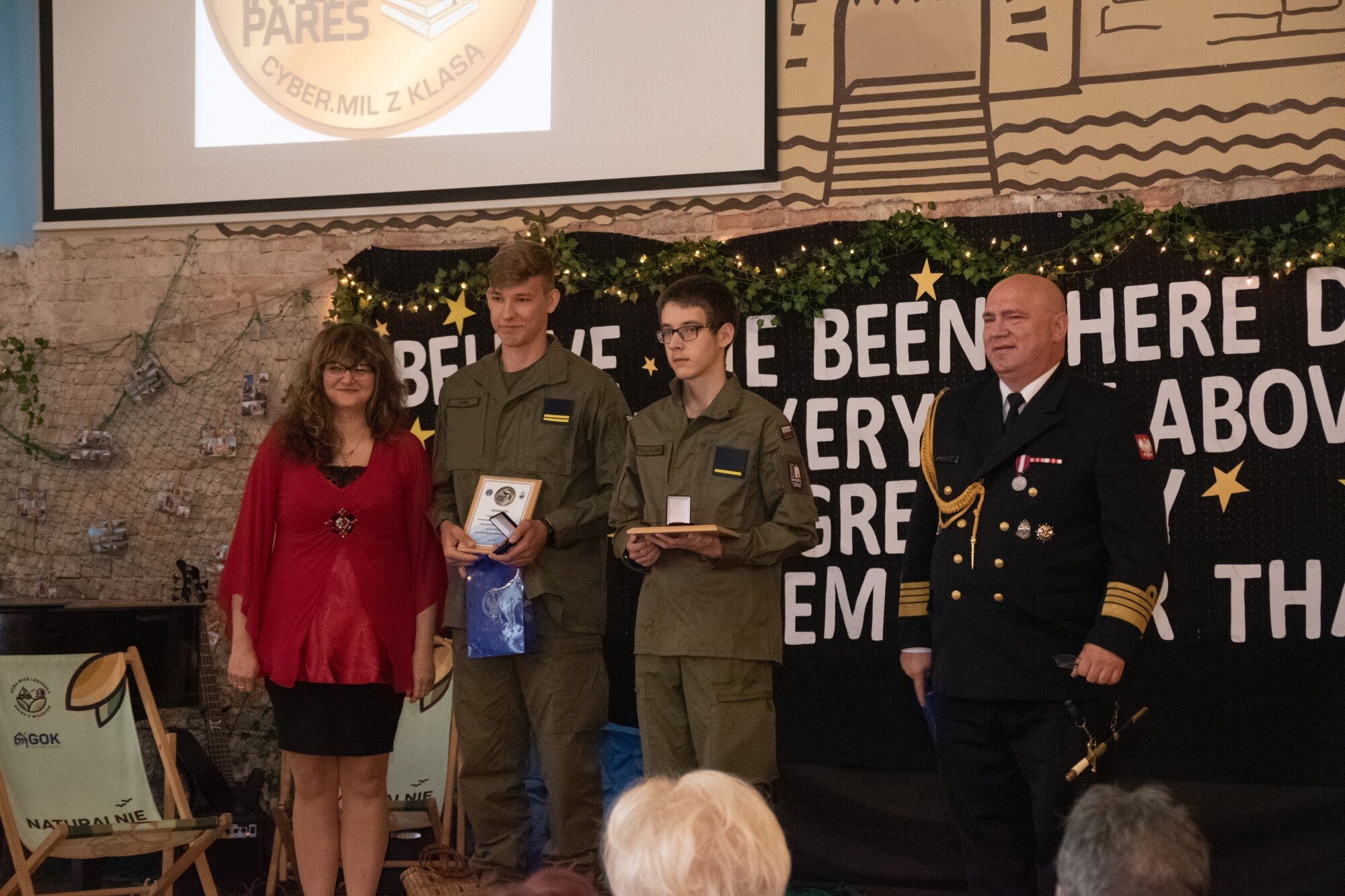 Oprócz wyróżnień, nagrody wręczali również obecni goście uroczystości. W imieniu gen. bryg. Karola Molendy, pełnomocnika Ministra Obrony Narodowej ds. utworzenia Wojsk Obrony Cyberprzestrzeni, kmdr Sławomir Woźniak wręczył najlepszym uczniom z klas CYBER.MIL medal "Primus Inter Pares". Nagrodę odebrali Krystian Pszczóliński z klasy I CM - 5,61 i Tomasz Radosław Kurs z klasy II CM - 5,44.