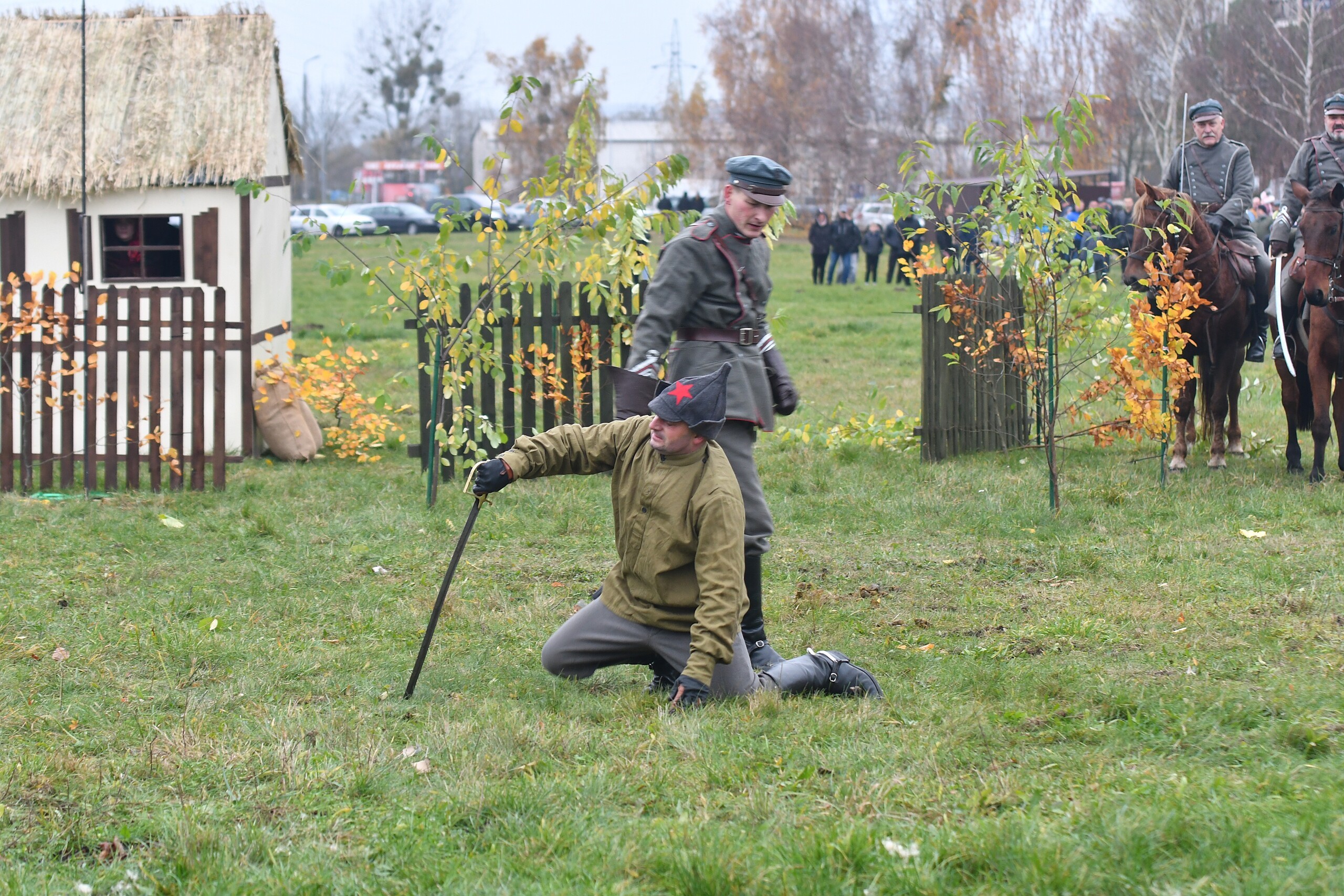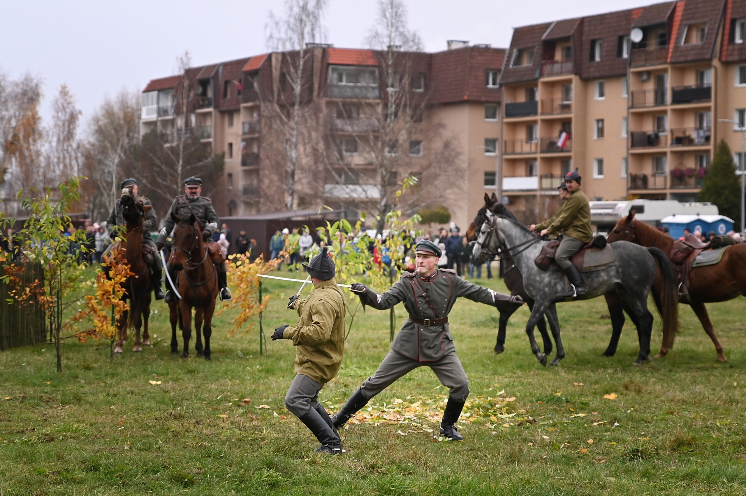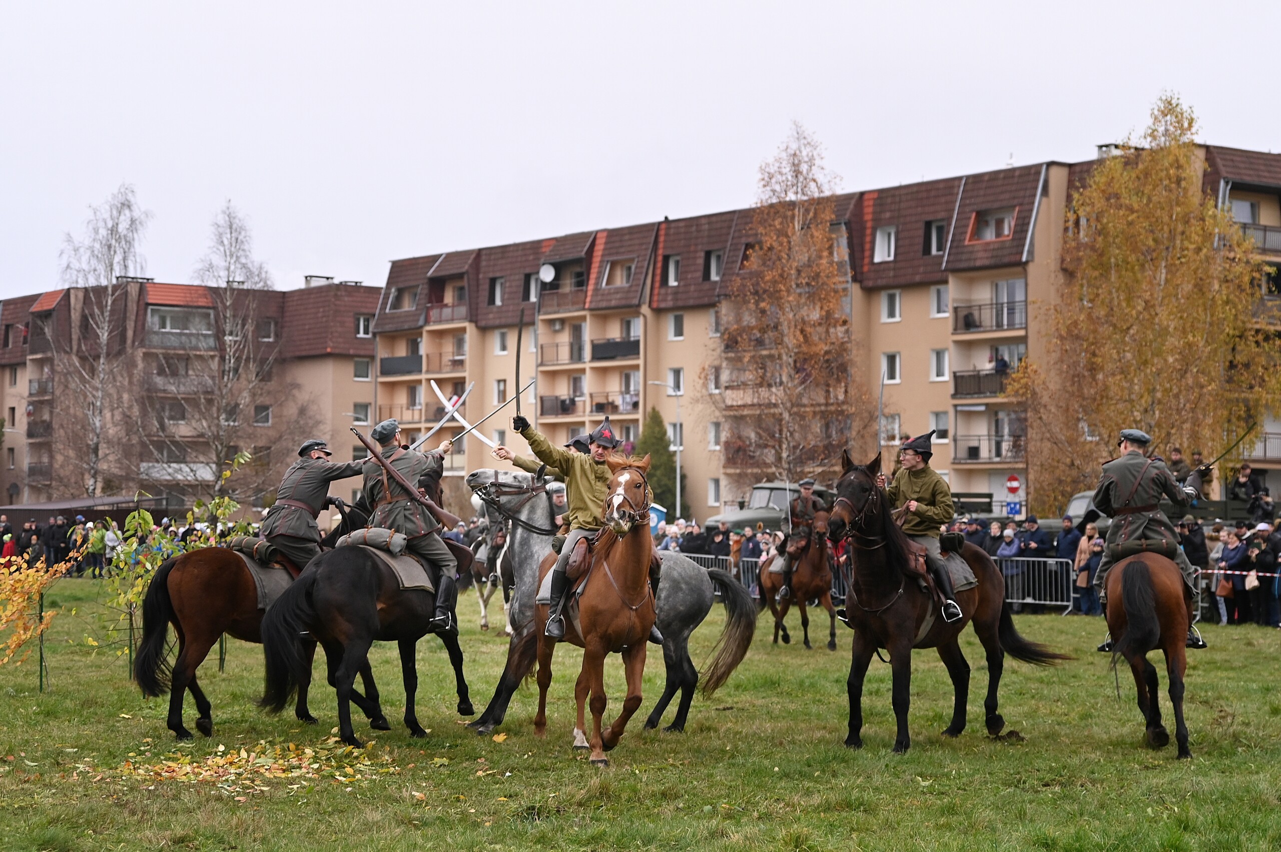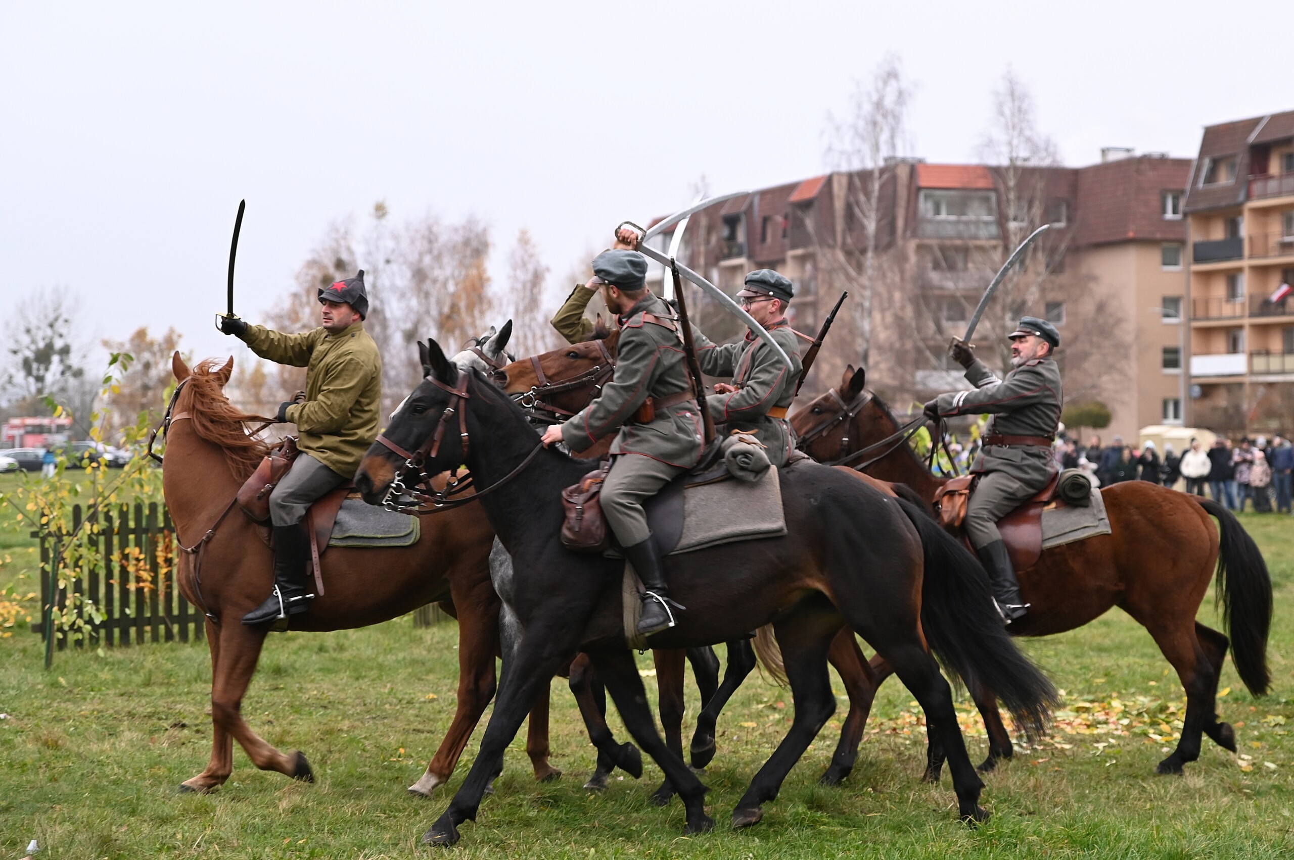 Odtwarzane wydarzenia zamknięte zostały w opowieści „Odzyskanie niepodległości i walki z bolszewikami o umacnianie polskich granic w 1920 roku”, której spinającą klamrą była rozmowa wnuczka z dziadkiem, który opowiadał dziecku o wydarzeniach tamtych dni. To były emocje towarzyszące zachwytowi nad dopiero co odzyskaną po 123 latach zaborów niepodległością, ale również czasy nowego zagrożenia ze strony bolszewickiej Rosji. W klimat wydarzeń wpisują się kawaleryjskie szarże, nadzieje wolnościowe rozbudzone przez powracającego do Polski marszałka Józefa Piłsudskiego, ale i krwawe wycieczki bolszewickich oddziałów pacyfikujących przygraniczne polskie wsie. Historia rozpoczęła się od listopadowego dnia 1918 roku, kiedy Józef Piłsudski przyjechał do Warszawy z więzienia w Magdeburgu. Opowieść stworzona i wyreżyserowana została przez Jerzego Hanisza – przez 20 lat tworzącego scenariusze kolejnych epizodów Bitwy pod Krojantami – ikonicznego wręcz wysiłku polskich kawalerzystów z czasów początku II wojny światowej. Autor i scenarzysta pełnił podczas niedzielnego spektaklu również rolę narratora umiejętnie wciągającego widza w nastrój i emocje szermierczych potyczek i ułańskich szarży. To była opowieść o cierpieniu, radości i smutku po stracie najbliższych, którzy oddali życie za Polskę. Historyczne drobiny związane z Bitwą Warszawską, ofensywą na Kijów i bolszewickim kontruderzeniem – to była faktograficzna baza misternie skonstruowanego scenariusza łączącego te fakty w jedną spójną opowieść. Jak mówił reżyser, w historii Polski jest wiele takich momentów, które w podręcznikach nie pełnią często roli pierwszoplanowych wydarzeń, ale stanowią o finalnym efekcie niepodległościowych dążeń Polaków. Podobne historie być może również zostaną odtworzone w Lęborku, tym bardziej, że frekwencja podczas niedzielnego pokazu potwierdziła zainteresowanie i potrzebę organizowania podobnych wydarzeń.