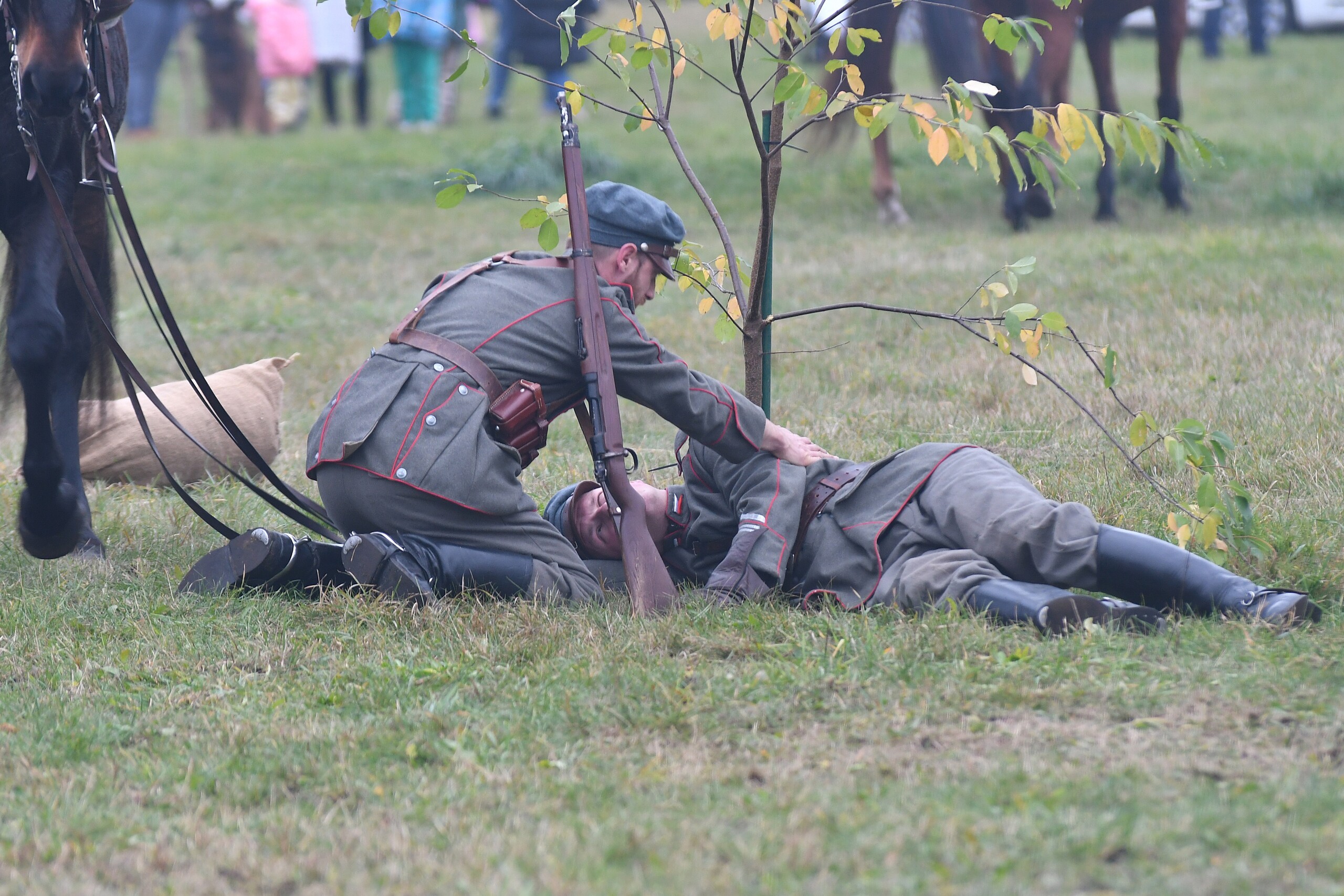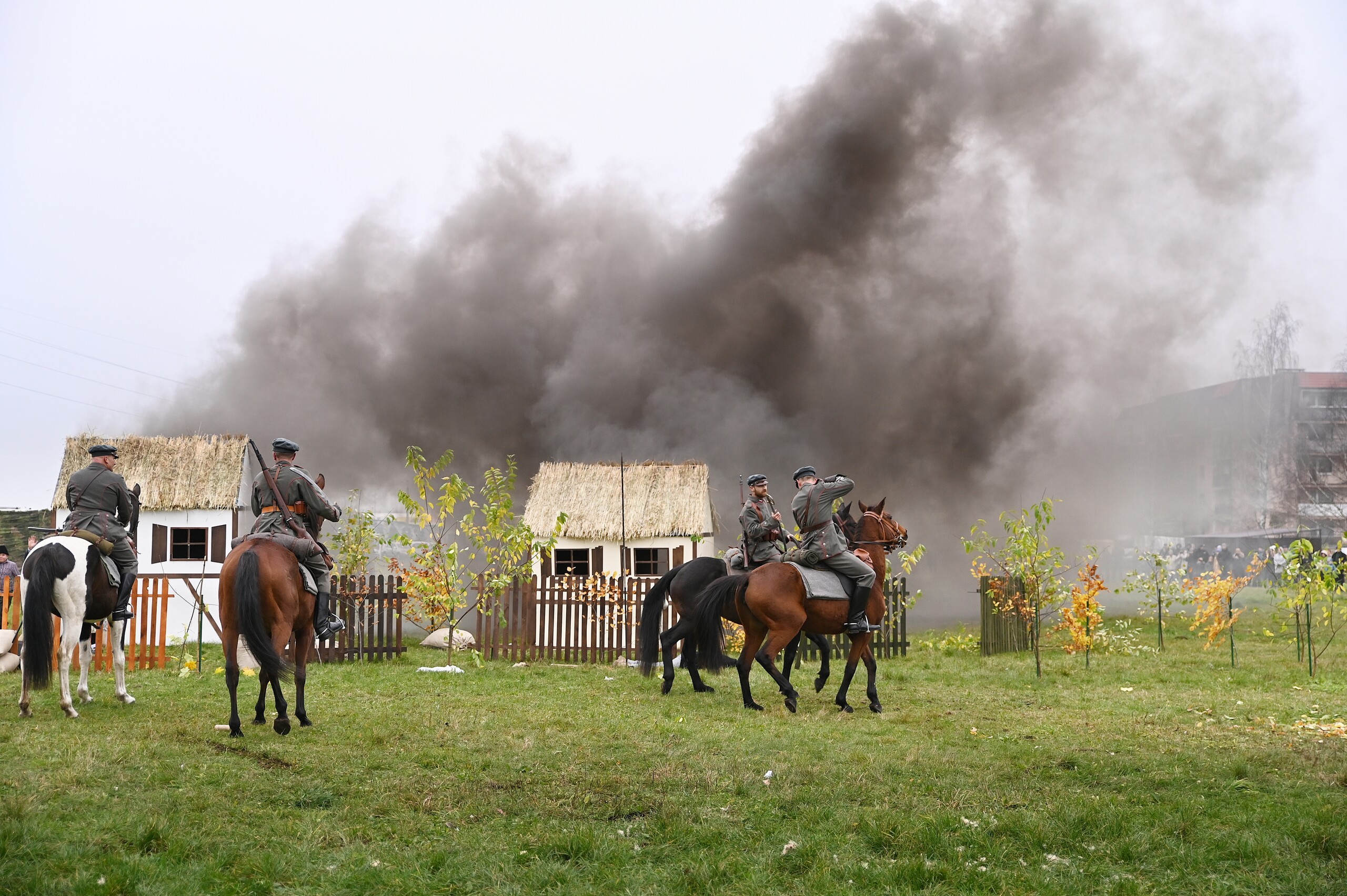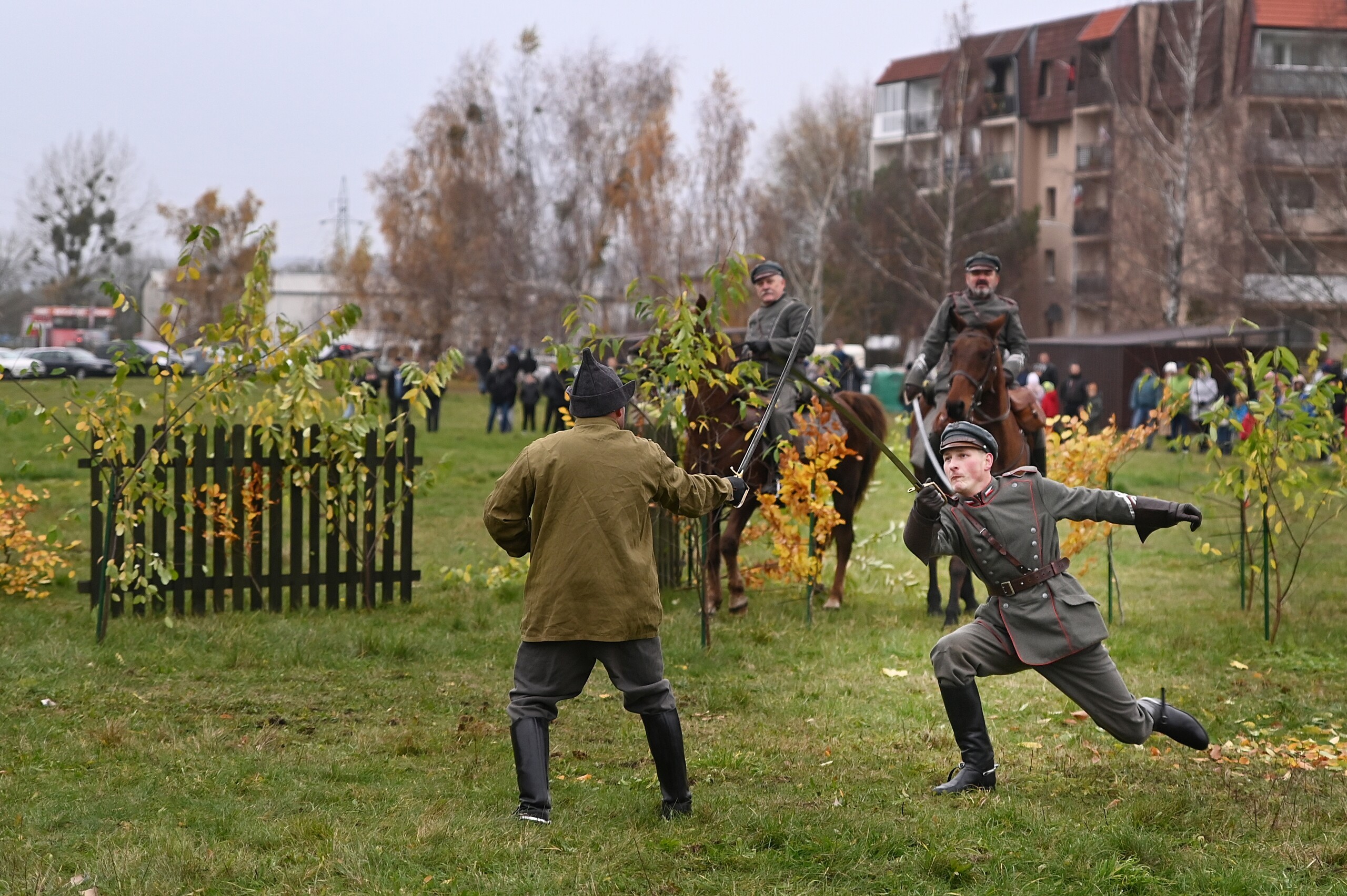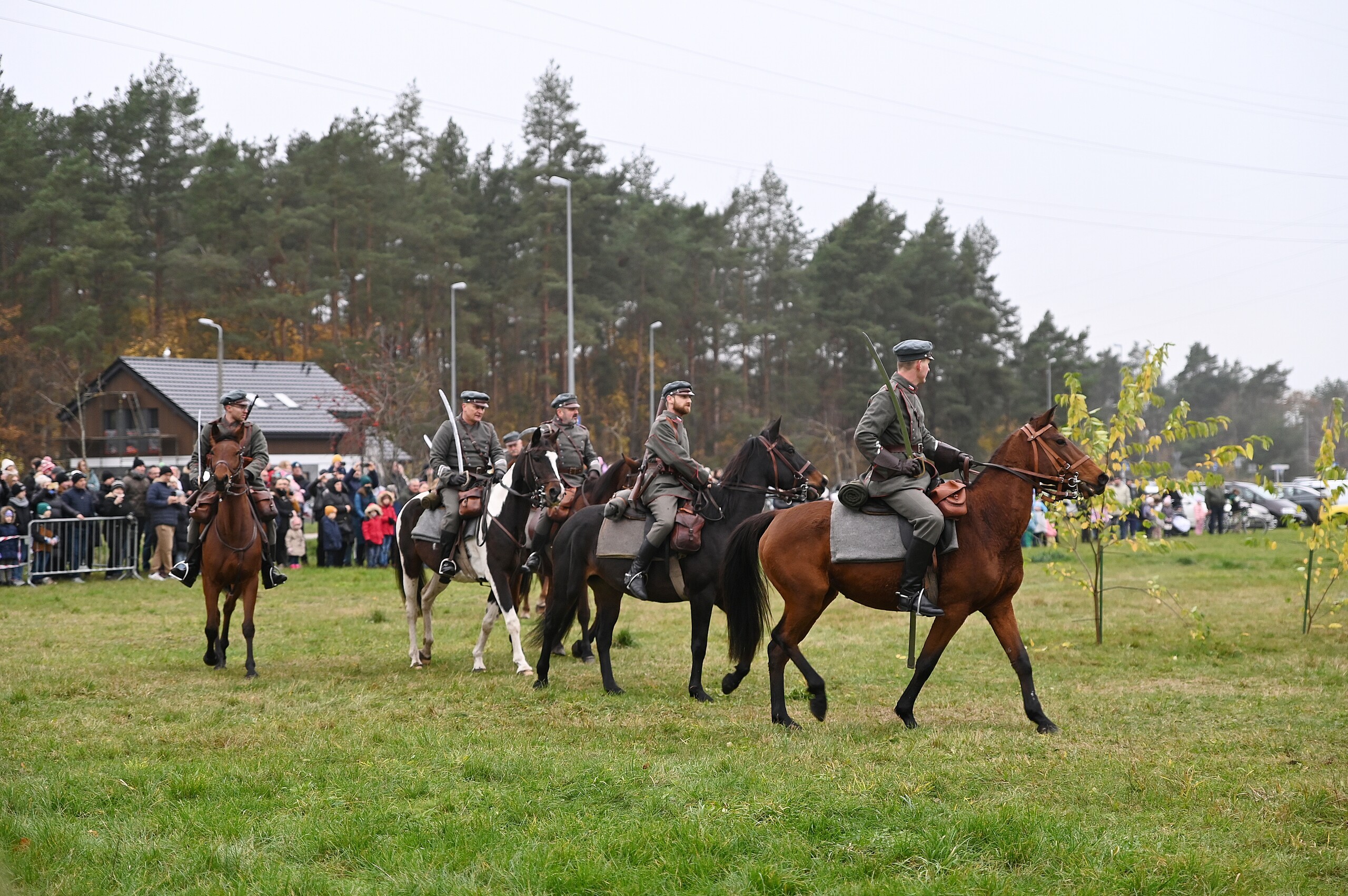 Odtwarzane wydarzenia zamknięte zostały w opowieści „Odzyskanie niepodległości i walki z bolszewikami o umacnianie polskich granic w 1920 roku”, której spinającą klamrą była rozmowa wnuczka z dziadkiem, który opowiadał dziecku o wydarzeniach tamtych dni. To były emocje towarzyszące zachwytowi nad dopiero co odzyskaną po 123 latach zaborów niepodległością, ale również czasy nowego zagrożenia ze strony bolszewickiej Rosji. W klimat wydarzeń wpisują się kawaleryjskie szarże, nadzieje wolnościowe rozbudzone przez powracającego do Polski marszałka Józefa Piłsudskiego, ale i krwawe wycieczki bolszewickich oddziałów pacyfikujących przygraniczne polskie wsie. Historia rozpoczęła się od listopadowego dnia 1918 roku, kiedy Józef Piłsudski przyjechał do Warszawy z więzienia w Magdeburgu. Opowieść stworzona i wyreżyserowana została przez Jerzego Hanisza – przez 20 lat tworzącego scenariusze kolejnych epizodów Bitwy pod Krojantami – ikonicznego wręcz wysiłku polskich kawalerzystów z czasów początku II wojny światowej. Autor i scenarzysta pełnił podczas niedzielnego spektaklu również rolę narratora umiejętnie wciągającego widza w nastrój i emocje szermierczych potyczek i ułańskich szarży. To była opowieść o cierpieniu, radości i smutku po stracie najbliższych, którzy oddali życie za Polskę. Historyczne drobiny związane z Bitwą Warszawską, ofensywą na Kijów i bolszewickim kontruderzeniem – to była faktograficzna baza misternie skonstruowanego scenariusza łączącego te fakty w jedną spójną opowieść. Jak mówił reżyser, w historii Polski jest wiele takich momentów, które w podręcznikach nie pełnią często roli pierwszoplanowych wydarzeń, ale stanowią o finalnym efekcie niepodległościowych dążeń Polaków. Podobne historie być może również zostaną odtworzone w Lęborku, tym bardziej, że frekwencja podczas niedzielnego pokazu potwierdziła zainteresowanie i potrzebę organizowania podobnych wydarzeń.