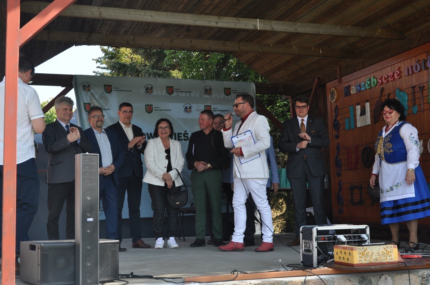 Wśród gości obecni byli również członkowie Zarządu Powiatu Adam Nowak i Ryszard Wenta. Wilkowska Majówka została zauważona przez władze województwa pomorskiego, o czym świadczyła obecność wicewojewody Aleksandra Jankowskiego. Nie zabrakło – rzecz jasna przedstawicieli władz Gminy Nowa Wieś Lęborska, a przede wszystkim dopisała publiczność, co potwierdza fakt, że na powrót ogólnodostępnych otwartych imprez plenerowych oczekiwano z niecierpliwością, po czasach pandemicznych ograniczeń. Jak na tradycję Wilkowskich Majówek przystało, również tym razem odbyła się próba bicia rekordu – i podobnie jak w poprzednich przypadkach – skuteczna. W tegorocznej rekordowej rywalizacji zbudowano największy na świecie burczybas. Do zbudowania największego kaszubskiego instrumentu ludowego posłużyła beczka. Tym samym wilkowski instrument pobił konkurenta z Somonina mierzącego 83 cm średnicy i 128 cm długości. Burczybas z Wilkowa ma 85,7 cm średnicy i 130 cm długości. To jedenasty rekord ustanowiony w Wilkowie, czyniący z tej miejscowości również osobliwość na skalę kraju, a z jej sołtysa – Leszka Września – najbardziej pomysłowego sołtysa z oryginalną wizją promocji swojego sołectwa.