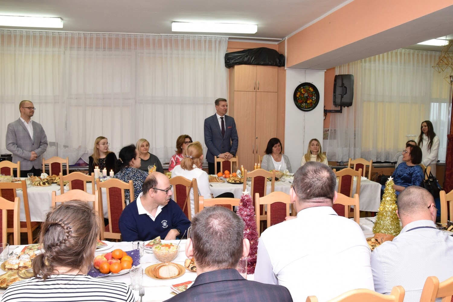 Sporym zaskoczeniem tegorocznego spotkania wigilijnego było przygotowanie i wystawienie przez uczestników warsztatów spektaklu obrazującego narodzenie Jezusa i towarzyszące temu faktowi okoliczności. Tekstowej narracji przyporządkowane były animacje kukiełkowe entuzjastycznie przyjęte przez widzów. Po spektaklu starosta wręczyła artystom i widzom czekoladowe upominki. W imieniu miasta Lęborka do życzeń dołączyli: Jarosław Litwin – przewodniczący Rady Miejskiej i Marian Kurzydło – sekretarz miasta. Starosta zachęcała, składając życzenia, do duchowego przeżywania świąt w gronie rodzinnym, zalecając w chwilach rozemocjonowania rzeczywistością – wsłuchanie się w muzyczne brzmienia, jako panaceum na codzienne troski. Samorządowcom towarzyszyli: reprezentanci Miejskiego Ośrodka Pomocy Społecznej, Powiatowego Centrum Pomocy Rodzinie i zaprzyjaźniona z WTZ dyrektorka Przedszkola Integracyjnego „Jesteśmy Razem” – Liliana Gałaman. Przygotowaniem wigilijnego spotkania w WTZ zajęła się Maria Machola – prezes Stowarzyszenia „Jesteśmy Razem” wraz ze współpracownikami, którzy sprawili, że ten dzień był zupełnie inny od pozostałych i wyjątkowy.