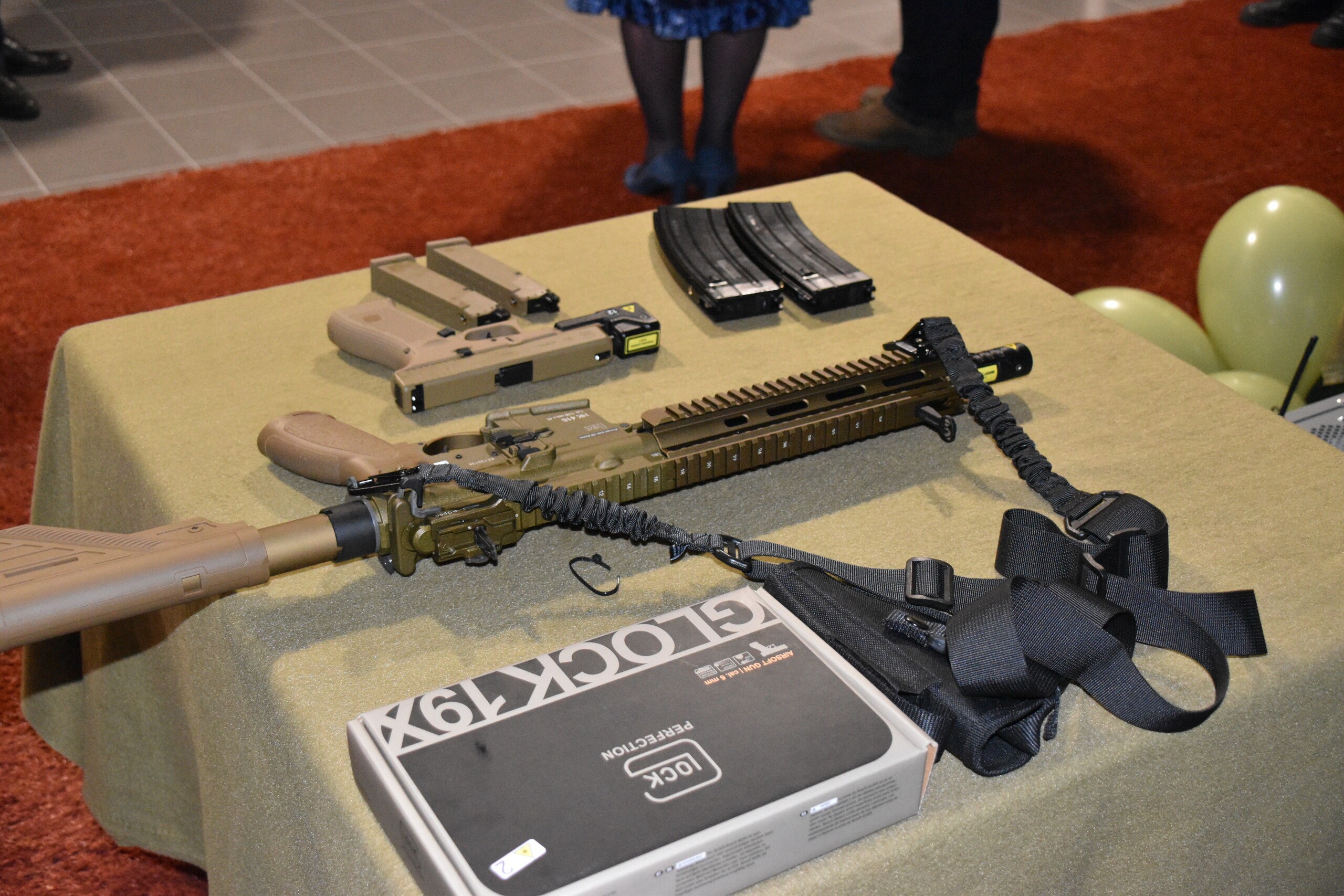W ramach 4 torów strzelniczych wykorzystywane są repliki broni długiej – karabinek HK 416 oraz broni krótkiej – pistolet Glock 19. Oba rodzaje symulatorów broni ze względu na realizm działania oraz obsługi manualnej, działają w systemie blow-black i wyposażone są w magazynki napełniane gazem. Umożliwia to przy strzale symulację odrzutu broni. Na wylocie luf zamontowane są zintegrowane moduły laserowe. Tak przygotowana broń treningowa zachowuje walory repliki, tj. działa mechanicznie i przeładowuje się pod wpływem gazu uwalnianego ze zbiornika w magazynie.