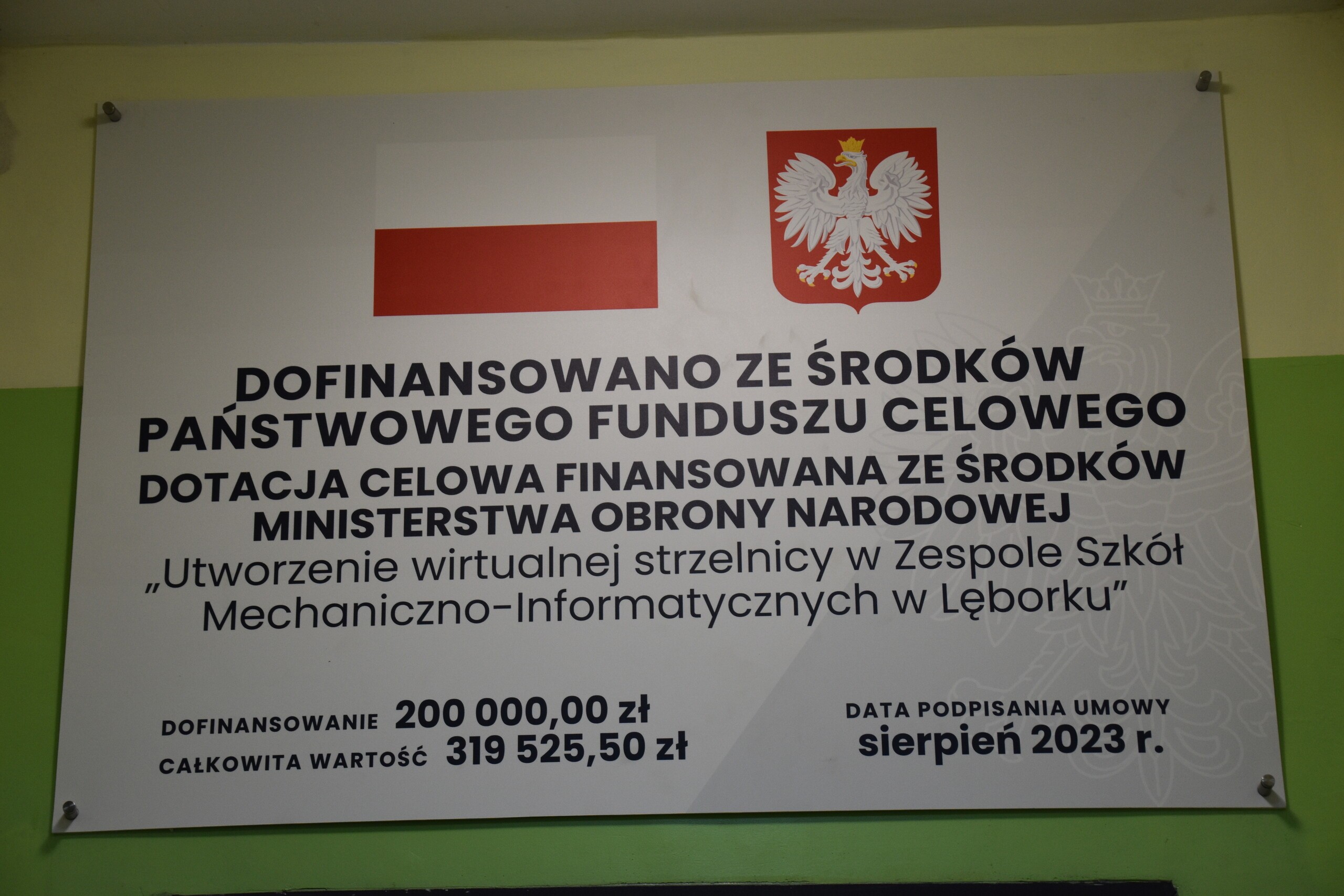 21 grudnia 2023 r. Starosta Lęborski Alicja Zajączkowska, wraz z wicestarostą Edmundem Głombiewskim w obecności przedstawiciela Wojskowego Centrum Rekrutacji w Słupsku, inspektora nadzoru, wykonawcy robót budowlanych, dyrektorów lęborskich placówek oświatowych, pracowników Referatu Realizacji Inwestycji starostwa oraz Grzegorza Popina – dyrektora Zespołu Szkół Mechaniczno-Informatycznych i jednoczenie gospodarza pomieszczeń, dokonali oficjalnego odbioru wirtualnej strzelnicy.