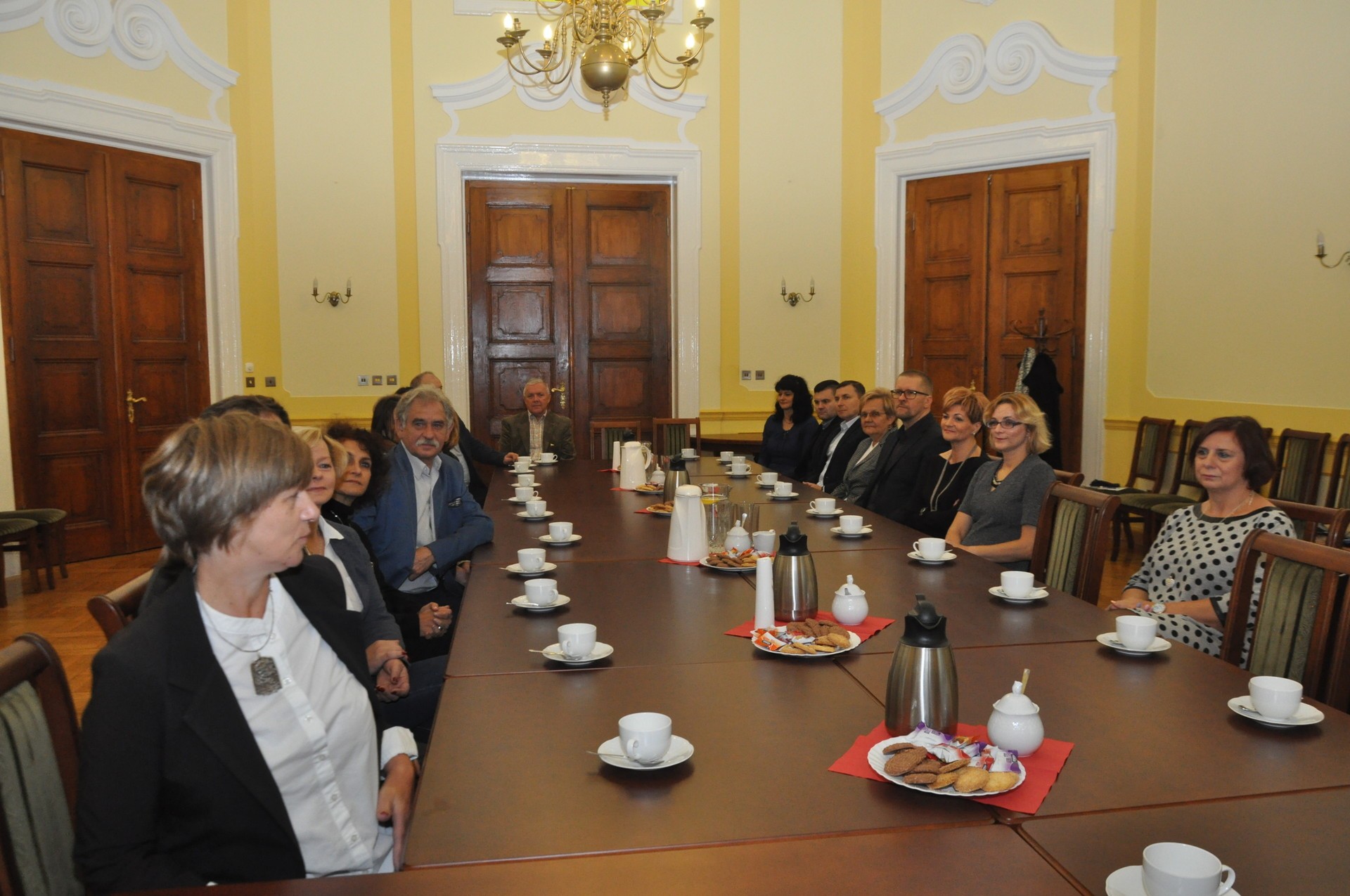 W ramach współpracy między Powiatami: Lęborskim i Giżyckim , w dniach 5-6 października br. Powiat Lęborski gościł przedstawicieli szkół i placówek oświatowych Powiatu Giżyckiego. W Starostwie Powiatowym w Lęborku dyrektorów giżyckich szkół przywitała Pani Teresa Ossowska-Szara, Starostą Lęborski. Podczas spotkania przybliżono profil działalności naszych jednostek oraz projekty unijne obecnie realizowane na ich terenie. Nie zabrakło również części artystycznej, w wykonaniu Klaudii Juchniewicz, uczestniczki Młodzieżowego Domu Kultury w Lęborku, jak również krótkiego zwiedzania miasta Lęborka w oprawie krzyżackiej.