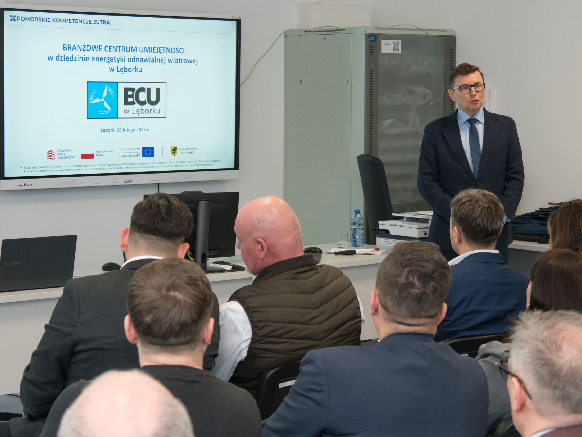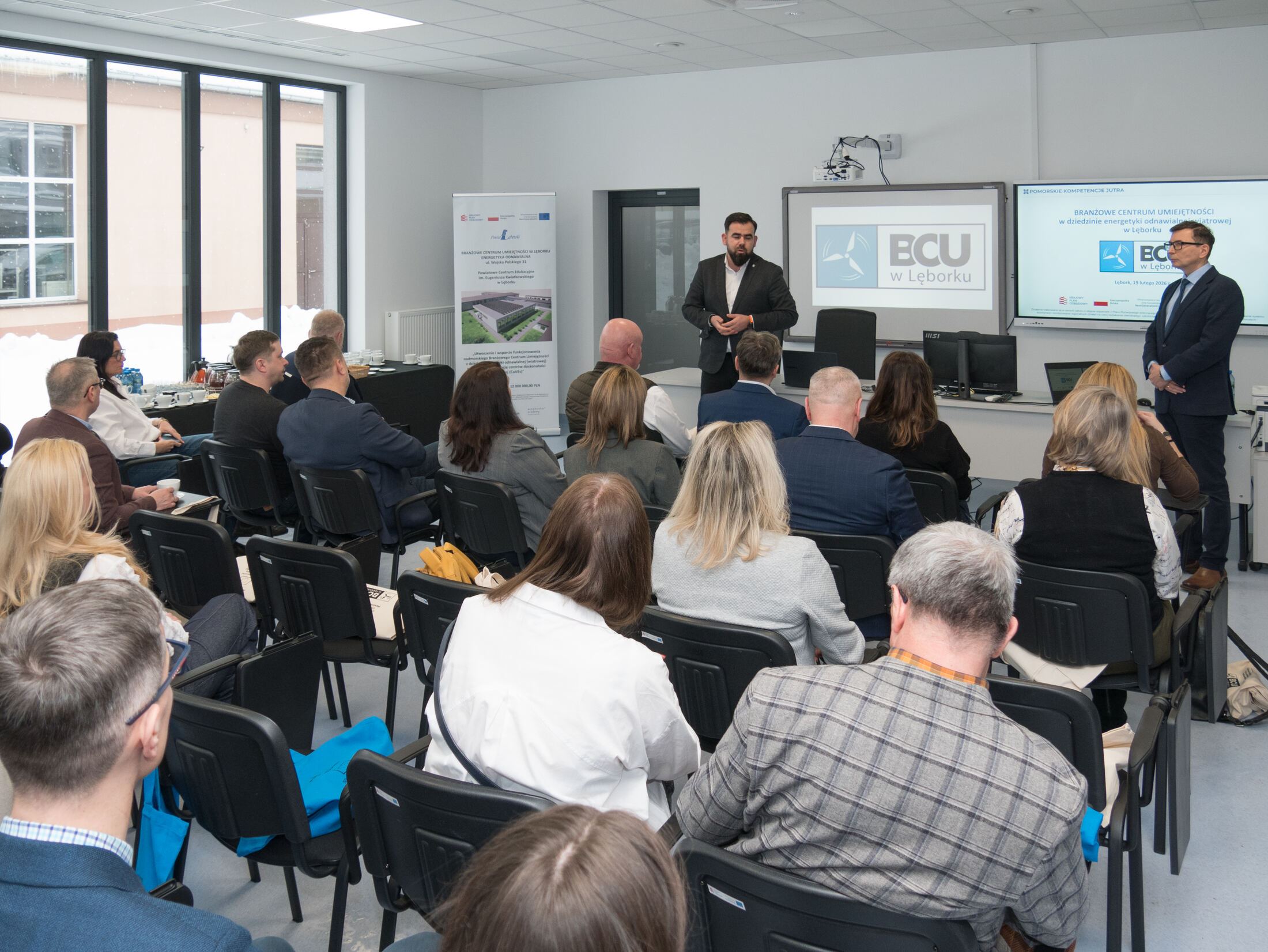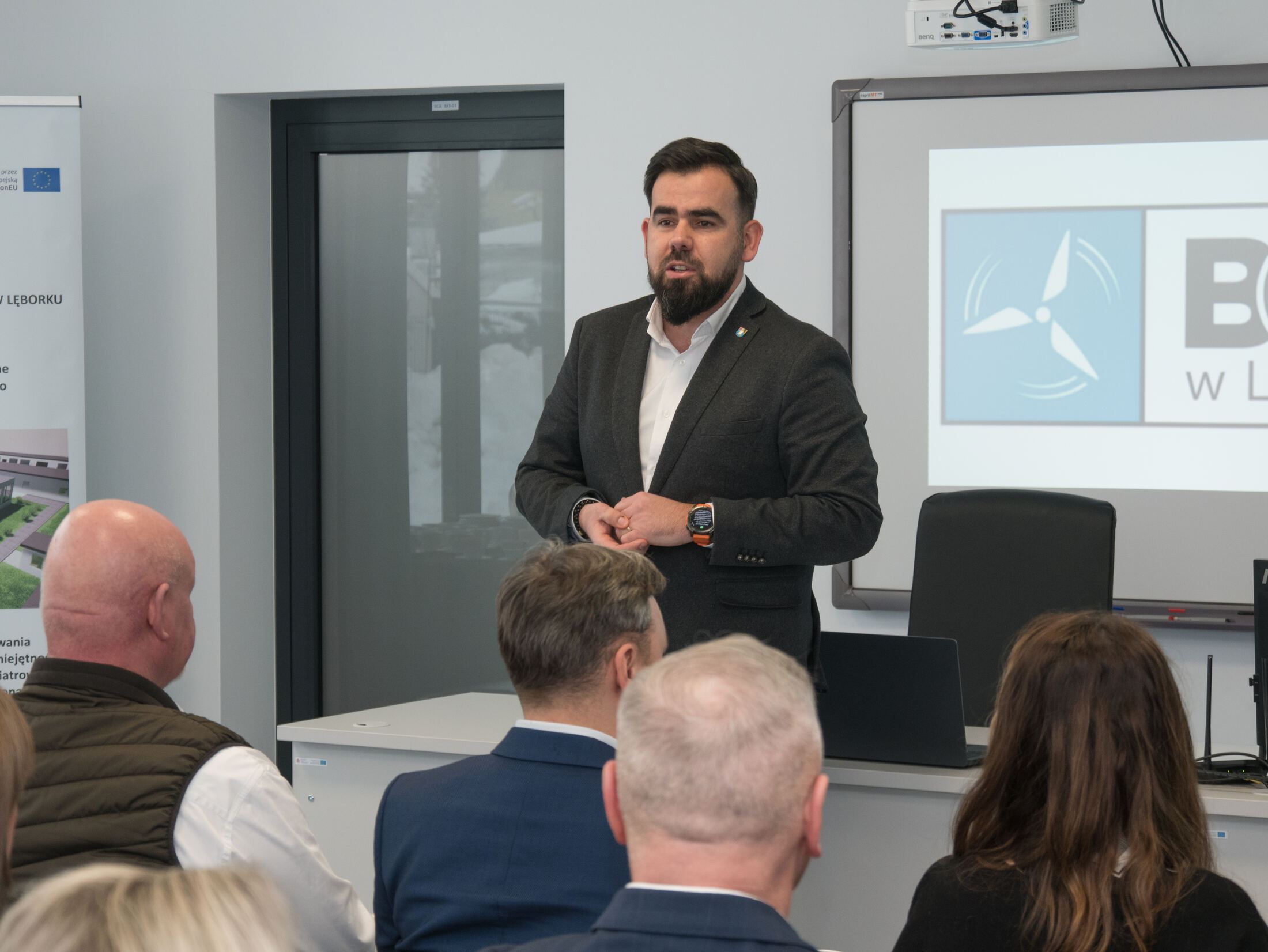 O kształceniu kadr na potrzeby rozwijającej się branży OZE, łączeniu edukacji z potrzebami rynku i osiągnięciach edukacyjnych Nadmorskiego BCU w tym zakresie rozmawiali uczestnicy wizyty studyjnej. Gości przywitał Starosta Lęborski Tomasz Litwin.