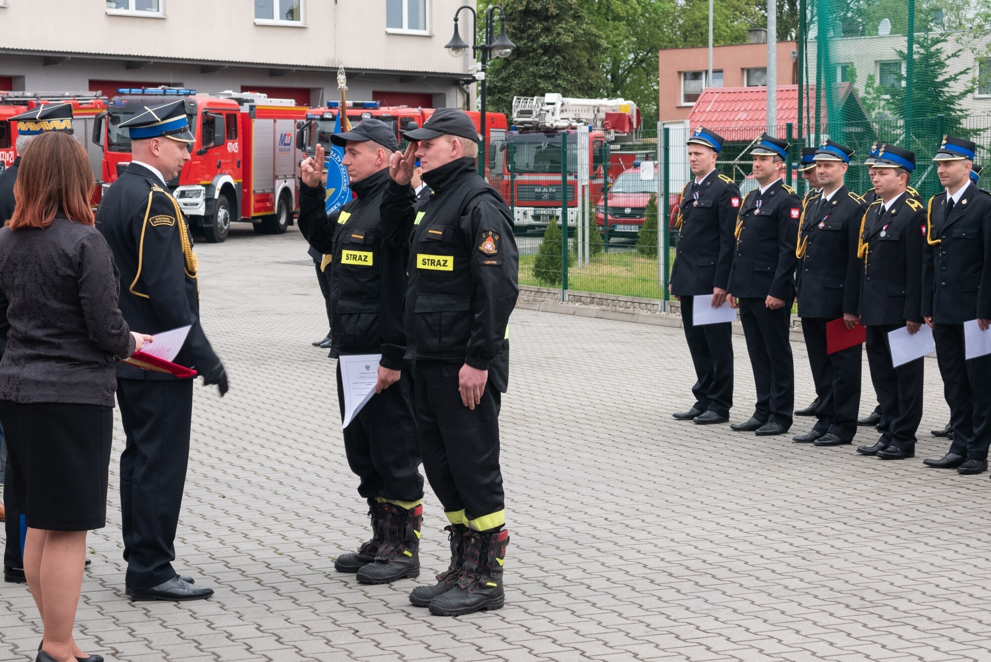 Prezydent RP odznaczył Brązowym Krzyżem Zasługi bryg. Piotra Krzemińskiego, komendanta KP PSP w Lęborku. Odznaczenie zostanie wręczone 31 maja podczas Wojewódzkich Obchodów Dnia Strażaka w Gdańsku. Szef resortu Spraw Wewnętrznych i Administracji przyznał Brązowe Odznaki „Zasłużony dla Ochrony Przeciwpożarowej” - ogn. Michałowi Baranowskiemu i mł. asp. Arkadiuszowi Chołce. Wyróżnienia Pomorskiego Komendanta Wojewódzkiego PSP za wzorowe wykonywanie obowiązków służbowych otrzymali: asp. Adam Boguń i asp. Rafał Mielewczyk. Oprócz odznaczeń przyznane zostały również awanse. Minister Spraw Wewnętrznych i Administracji nadał stopień młodszego brygadiera st. kpt. Dawidowi Główczewskiemu i st. kpt. Mariuszowi Grzenkowiczowi. Awanse zostaną wręczone podczas Wojewódzkich Obchodów Dnia Strażaka w Gdańsku w ostatnim dniu maja. Na stopień młodszego kapitana awansowany został asp. Przemysław Żmuda - Trzebiatowski. Awans otrzymał 4 maja podczas Centralnych Obchodów Dnia Strażaka w Warszawie. Pomorski Komendant Wojewódzki PSP nadał stopień starszego ogniomistrza ogn. Emilowi Stence. Na stopień ogniomistrza awans otrzymał mł. ogn. Michał Baranowski. Stopień sekcyjnego otrzymali st. str. Dawid Gałązka, st. str. Mateusz Sikorski i st. str. Leszek Zaborowski. Komendant Powiatowy PSP w Lęborku str. Dawidowa Szczepańskiego i str. Piotra Trybę mianował na stopień starszego strażaka.