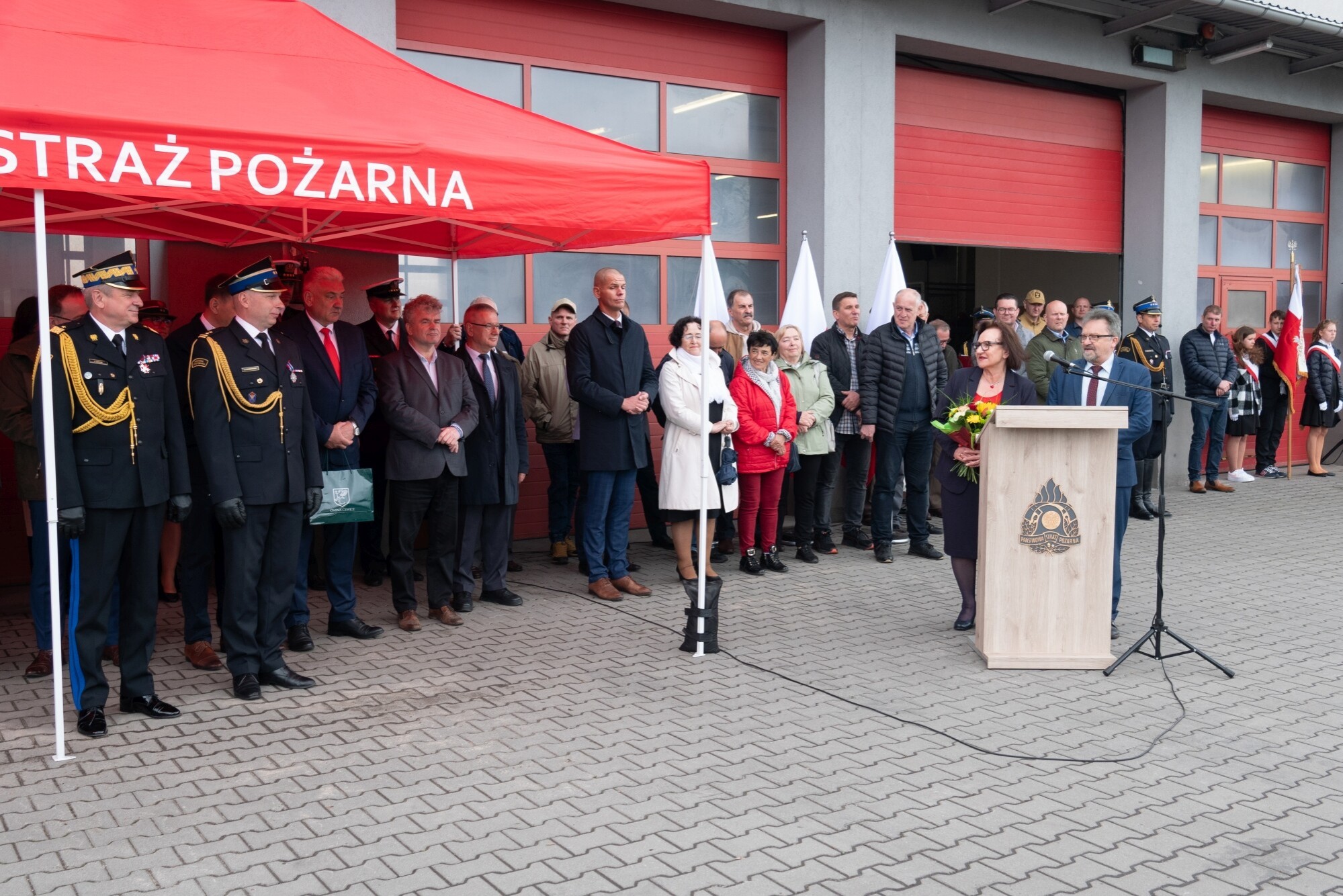 Życzenia w formie wiersza autorstwa poetki i nauczycielki Małgorzaty Borzeszkowskiej odczytała Grażyna Wójcik - dyrektor szkoły w Nowej Wsi Lęborskiej im. Strażaków Polskich.