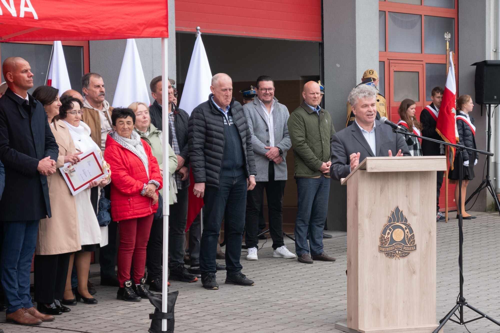 O zawodzie strażaka, cieszącego się najwyższym zaufaniem społecznym mówił wicestarosta Edmund Głombiewski: - Zawód strażaka to synonim odwagi i poświęcenia dla ratowania życia i mienia. Wielu młodych ludzi marzy o tym, by w przyszłości zostać strażakami, ludźmi wartymi naśladowania – mówił wicestarosta dołączając do gratulacji i życzeń – Cieszę się, że potrzebę wspierania straży, oprócz samorządu, widzi również rząd, przeznaczając środki na zakupy sprzętu i wozów bojowych.