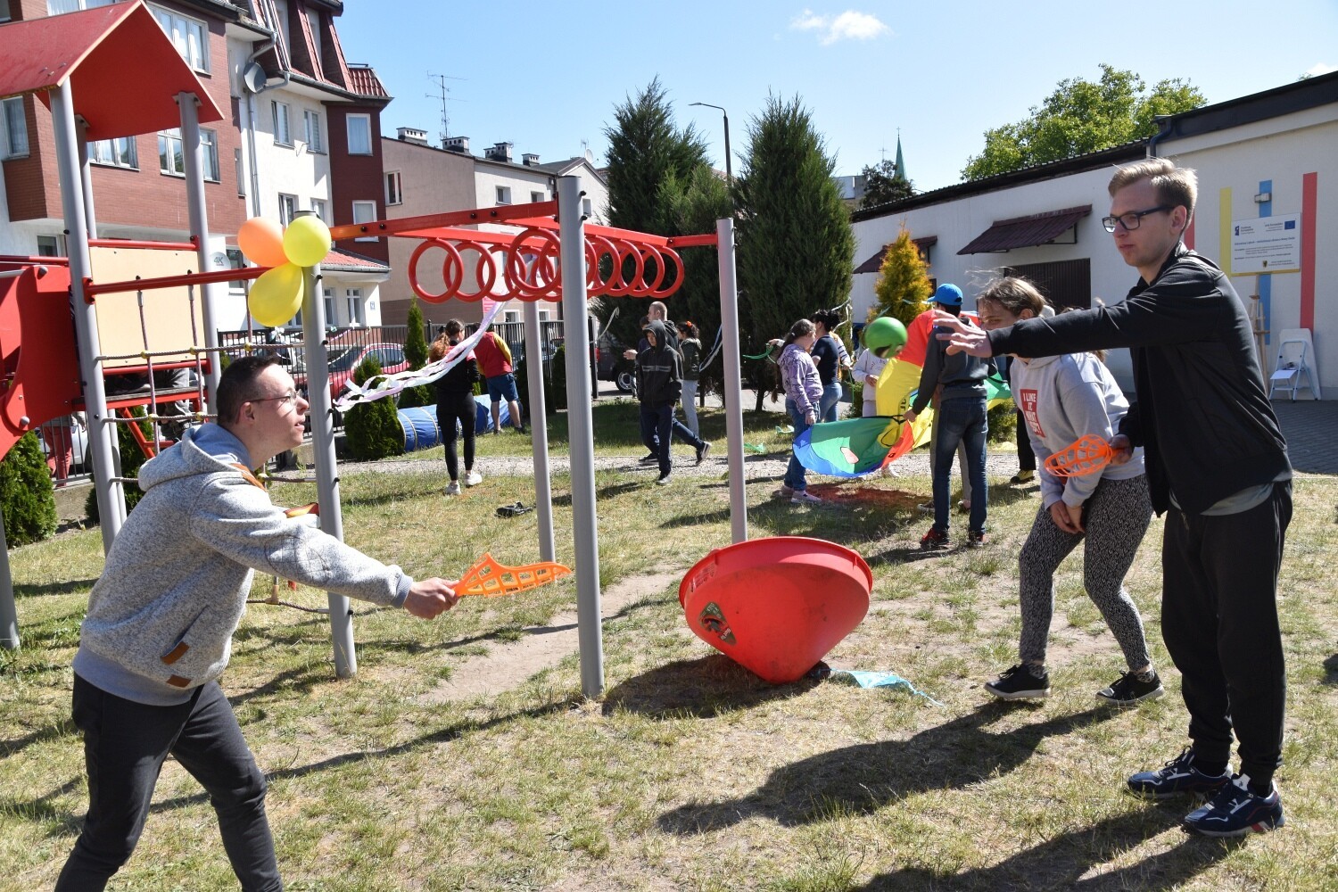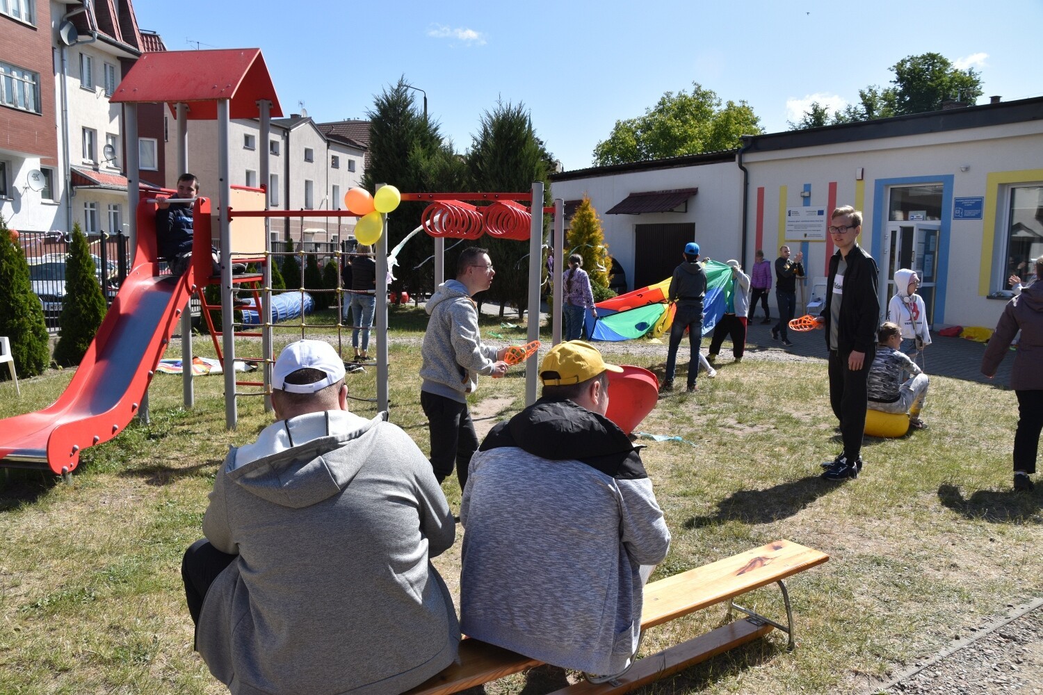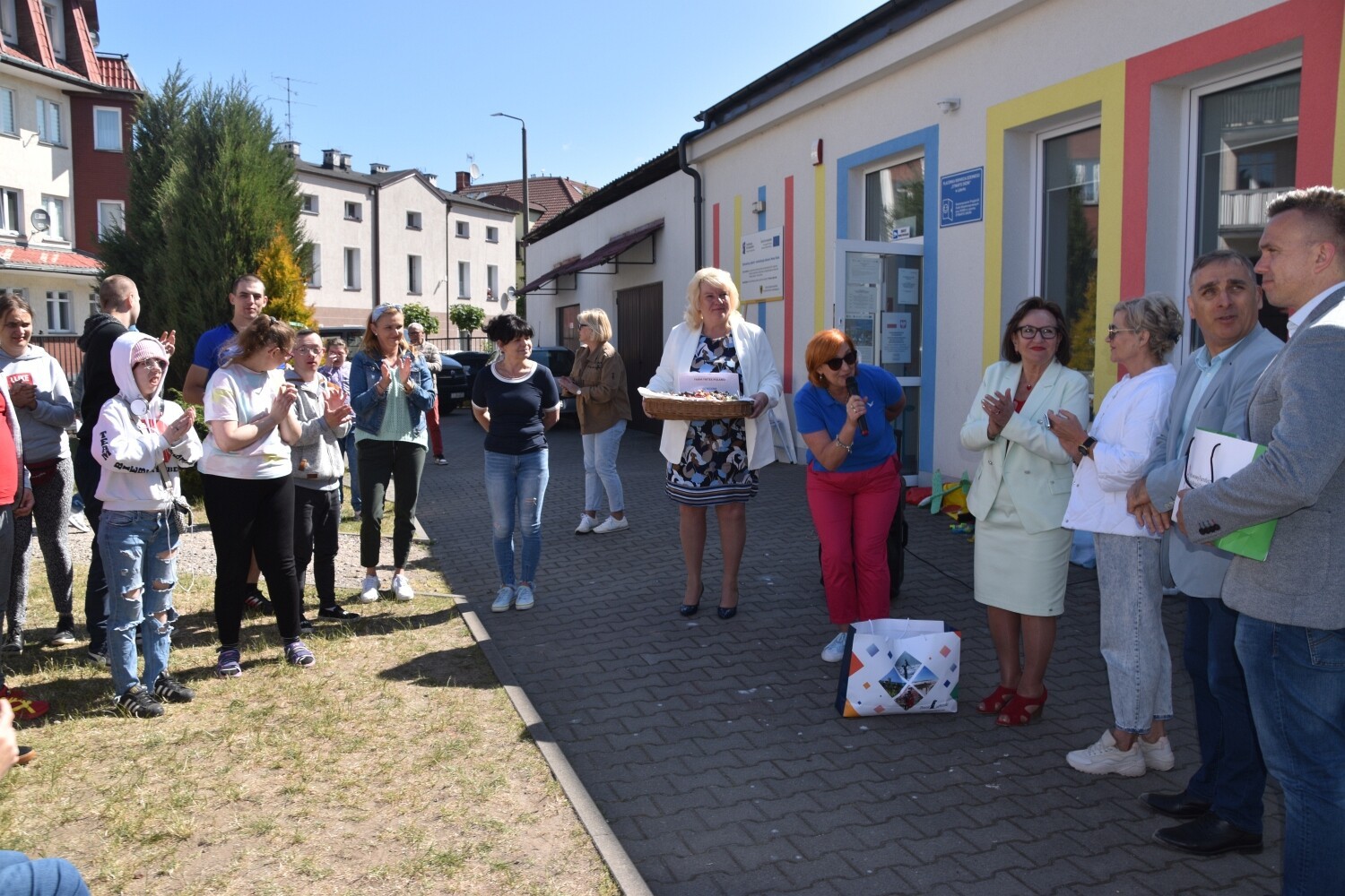 W gronie gości pojawili się ci, na których zawsze można liczyć, reprezentanci instytucji wspierających funkcjonowanie ośrodka – przedstawicielka firmy Farm Frites Poland S.A. oraz reprezentujący Państwowy Fundusz Rehabilitacji osób Niepełnosprawnych – Dariusz Majorek – dyrektor Oddziału PFRON w Gdańsku. Były życzenia, słodkości i cała masa doskonałej zabawy – zarówno animacyjnej, jak i tej zupełnie spontanicznej. Starosta przekazała wychowankom ośrodka słodki poczęstunek. Przy świetlicy środowiskowej koło SOSW doskonale bawili się wszyscy – młodsi, starsi, bo w końcu w każdym z nas tkwi odrobina dziecka. Nad sprawnością i bezpieczeństwem czuwali pracownicy ośrodka i jego dyrektorka Danuta Rybak.