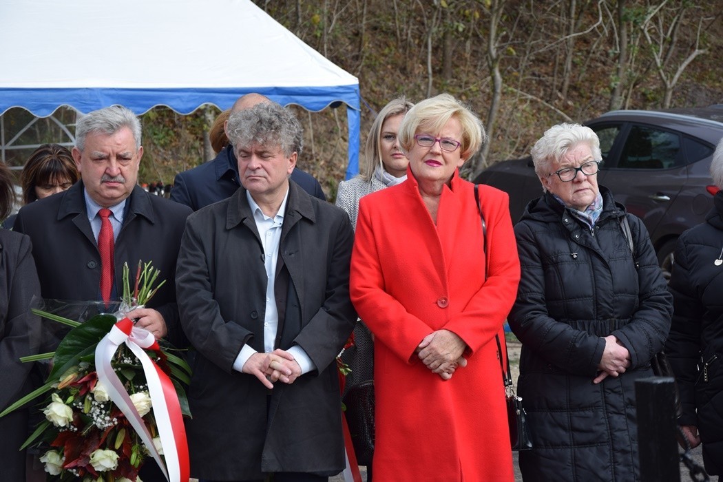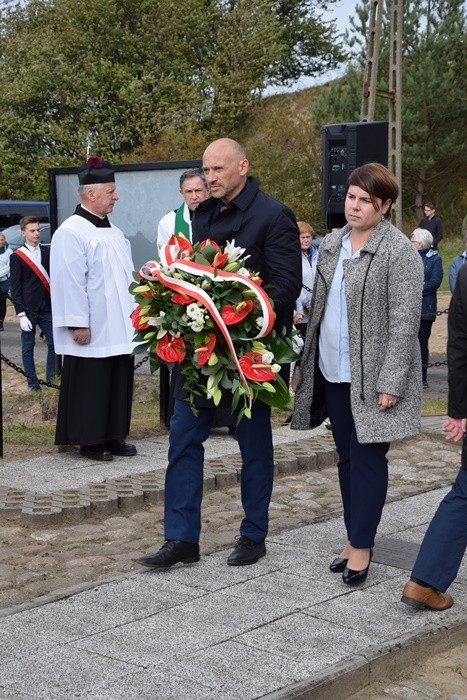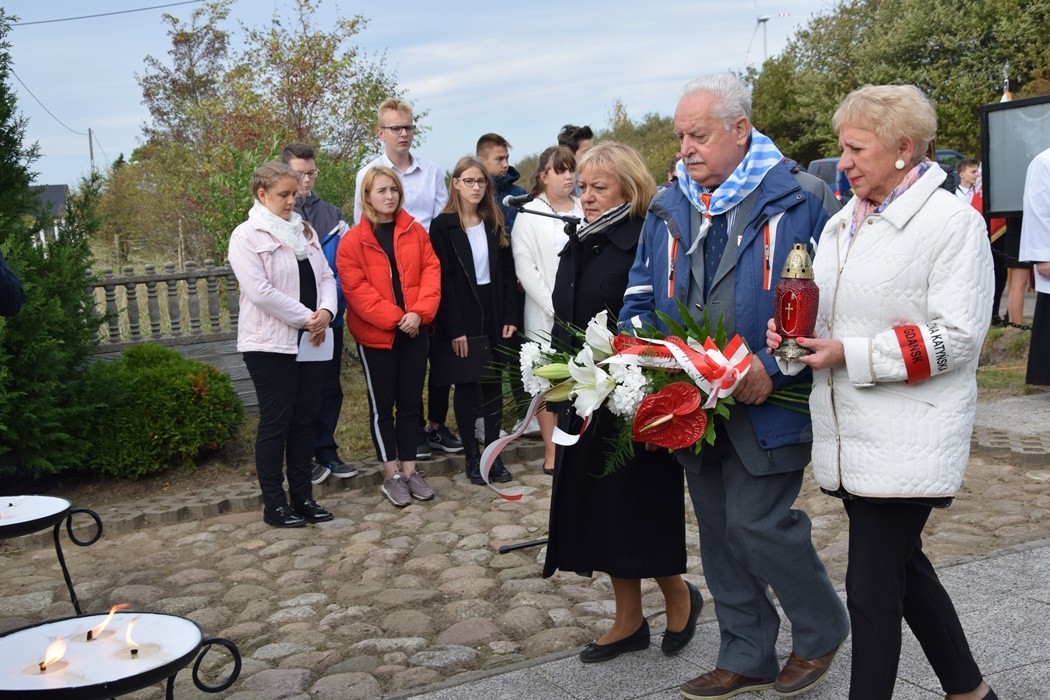 Uroczystości upamiętniające tych, którzy zginęli zamęczeni w nieludzkich warunkach lądowej ewakuacji obozu zagłady w Sztutowie odbywają się co roku w ostatnią niedzielę września. Przypomnijmy, że w styczniu 1945 roku z obozu KL Stutthof pędzono w katorżniczym marszu prawie 11 tys. więźniów. Uformowani w 9 kolumn więźniowie w ciągu 10 dni mieli przebyć od 120 do 170 km do ośmiu obozów ewakuacyjnych w okolicach Lęborka i Wejherowa, w miejscowościach: Krępa Kaszubska, Gęś, Tawęcino, Gniewino, Toliszczek, Rybno, Nawcz i Łówcz. Warunki ostrej śnieżnej zimy z temperaturą spadającą do – 20 st. C przetrwało zaledwie 7 tys. Pozostali zostali zamordowani przez eskortę, lub też zbiegli podczas postojów, korzystając z pomocy mieszkających w okolicy Kaszubów. Pomimo srogiej zimy, więźniowie dostali na drogę zaledwie po pół bochenka chleba. Kto choć na chwilę ustawał w marszu, był natychmiast rozstrzeliwany. Po wojnie na całej trasie Marszu Śmierci przeprowadzono prace ekshumacyjne w celu przeniesienia rozsianych po całym Pomorzu ciał do zbiorowych mogił. Jedna z takich mogił znajduje się w Krępie Kaszubskiej, gdzie zgromadzono prochy prawie 900 osób. Wg szacunków badaczy historii, w Gęsi straciło życie prawie 500 więźniów. Ich upamiętnia obelisk wzniesiony w 2001 roku w formie prostokątnej ściany obłożonej metalowymi płytami stylizowanymi na karty obozowej kartoteki. To w połączeniu z rzędami nazwisk i urzędowych formularzy zapewnia przy minimum zastosowanych środków artystycznych, nieprzeciętny klimat sprzyjający zadumie nad losem ludzi, którzy zginęli na kilkanaście, bądź kilka dni przed wyzwoleniem.