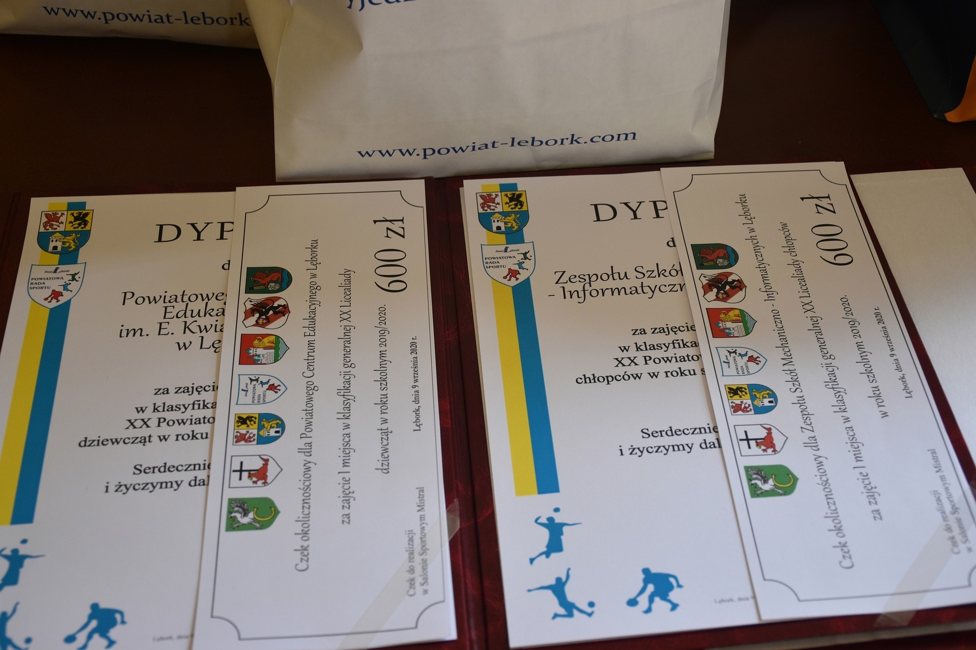 w ramach Igrzysk Dzieci, Igrzysk Młodzieży Szkolnej oraz Licealiady w roku szkolnym 2019/2020. Dyrektorom szkół, sportowych osiągnięć ich wychowanków gratulowali: Alicja Zajączkowska – Starosta Lęborski, Jacek Perłak – Członek Zarządu Powiatu Lęborskiego, Marian Borek – Przewodniczący Powiatowej Rady Sportu i Maciej Barański – Radny Powiatu Lęborskiego.