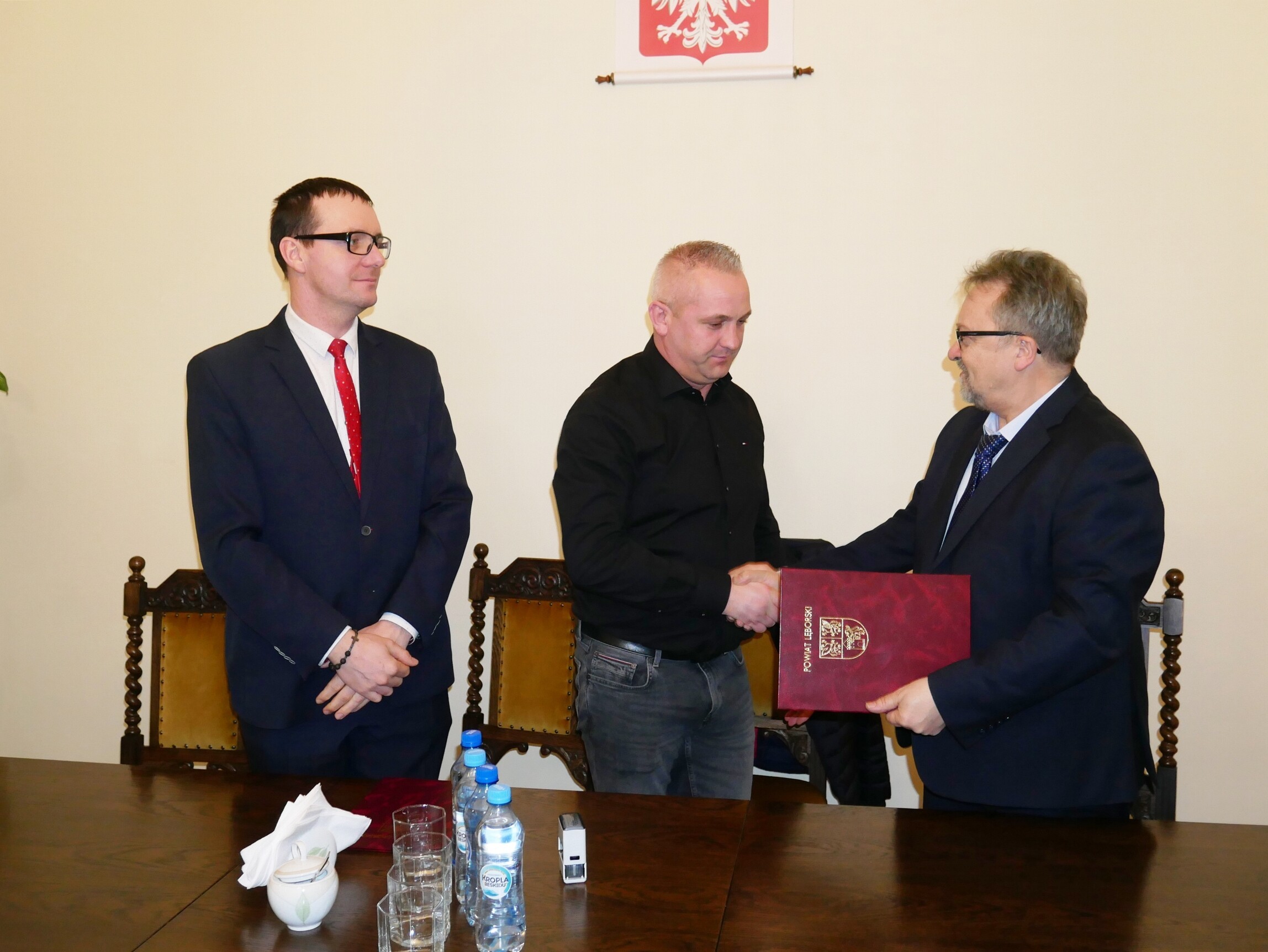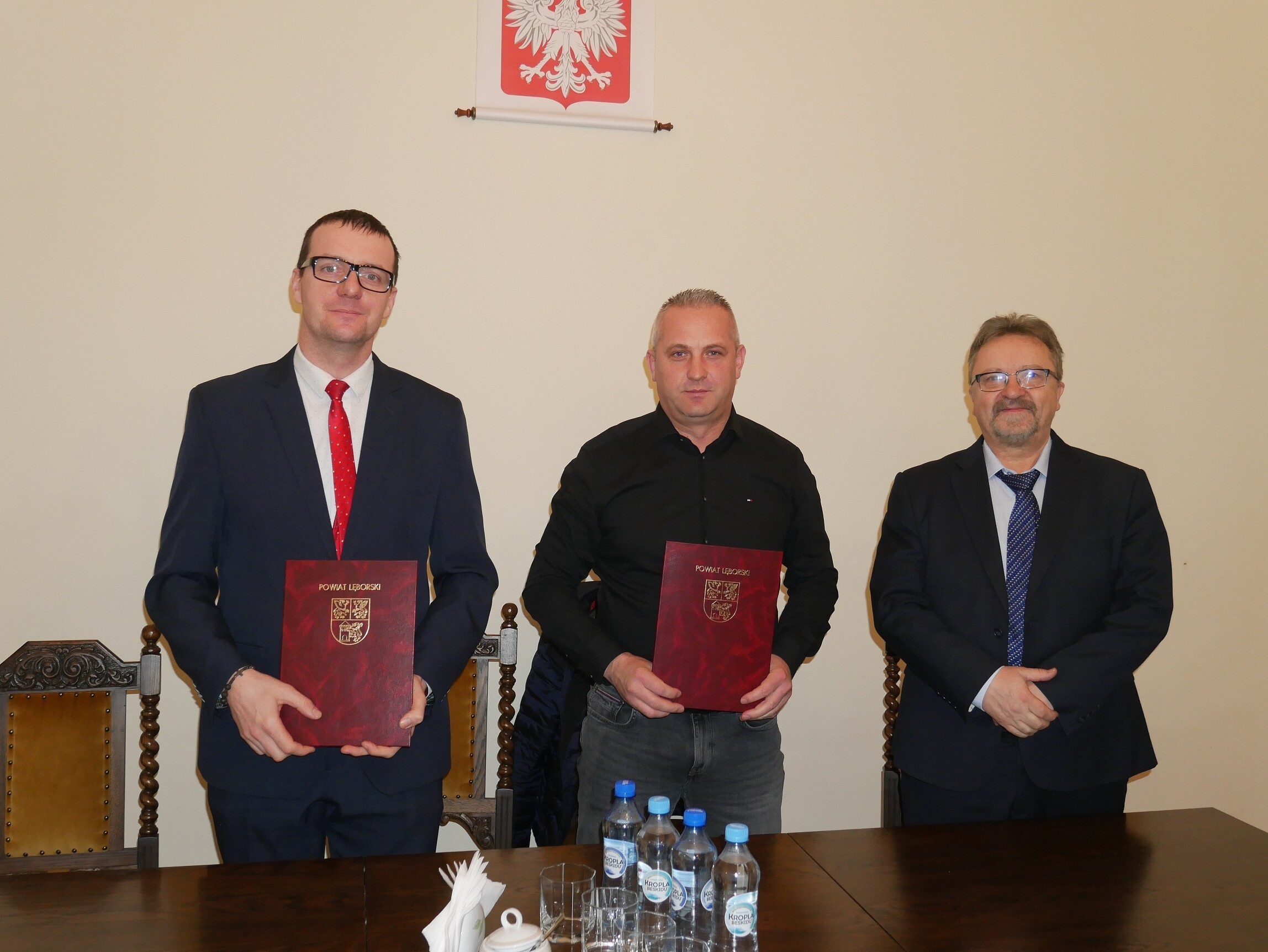 W podpisaniu umowy z wykonawcą – Mariuszem Formellą z firmy Produkcja i Eksploatacja Kruszywa Formella s.c. z Niepoczołowic podpisali: Edmund Głombiewski – Wicestarosta Lęborski i Adrian Wenta – dyrektor Zarządu Dróg Powiatowych w Lęborku. Wartość całości przedsięwzięcia skalkulowana została na 1.848.126,29 zł. Połowę wartości inwestycji pokryją środki z Rządowego Funduszu Rozwoju Dróg. Drugą połowę solidarnie sfinansują Powiat Lęborski i Gmina Cewice. To kolejną wspólna realizacja inwestycji drogowej w partnerstwie Powiatu z gminami. W poprzednich latach podobnego rodzaju montaże finansowe również były z powodzeniem praktykowane, umożliwiając realizacje większej liczby drogowych przedsięwzięć, niż gdyby były one finansowane samodzielnie przez poszczególne samorządy. Rozpoczęcia prac można spodziewać się już wkrótce. Termin zakończenia zaplanowany został na sierpień bieżącego roku.