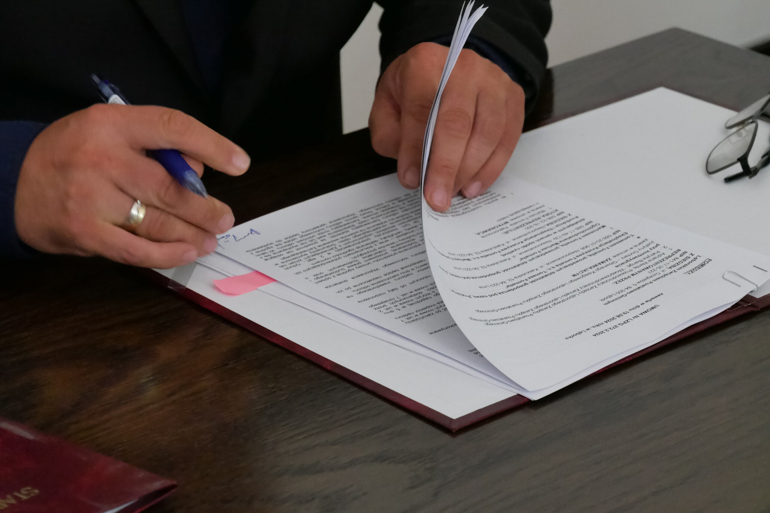 W podpisaniu dokumentów uczestniczyli: Adrian Wenta – przewodniczący Lęborskiego Związku Powiatowo-Gminnego, wiceprzewodniczący związku – Patryk Bianga, Tomasz Formella – wykonawca, prowadzący działalność pod nazwą „Produkcja i Eksploatacja Kruszywa Formella s.c. Tomasz Formella”, Marek Baranowski – członek Zarządu LZPG oraz Łukasz Mertowski – specjalista ds. realizacji inwestycji i Tomasz Gałka – inspektor nadzoru.