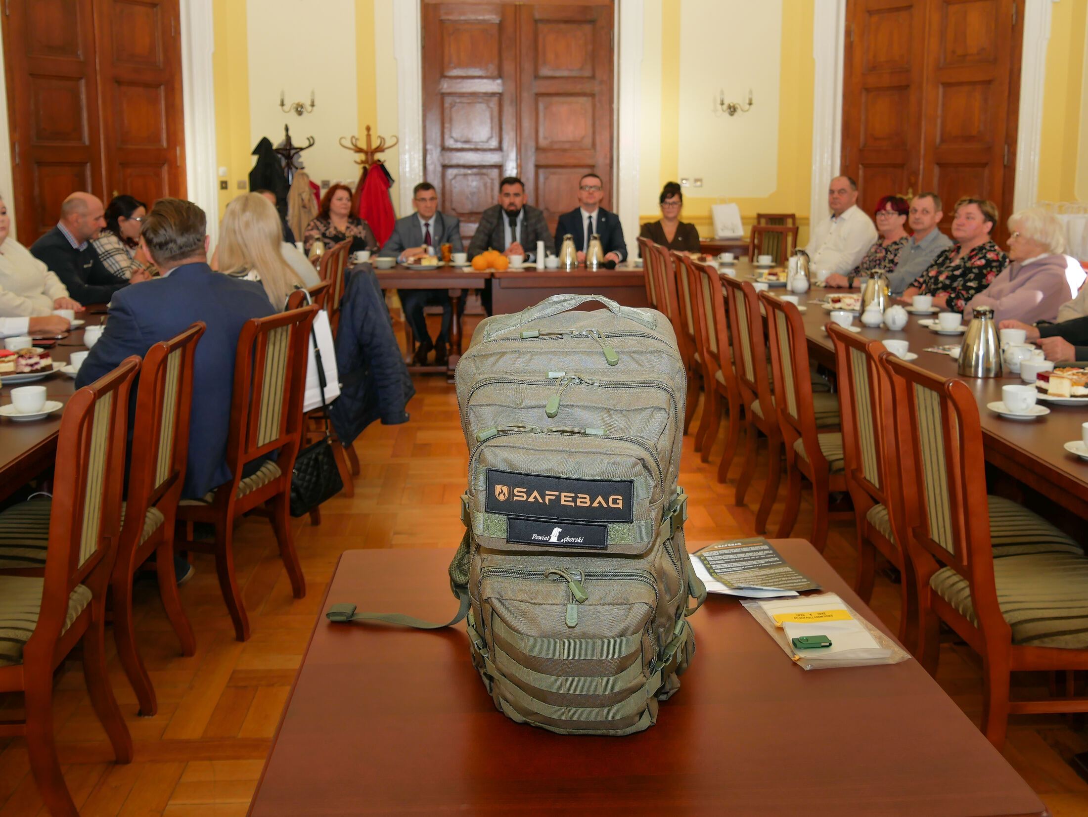 Tematyka bezpieczeństwa dotyczyła głównie prezentacji plecaku przetrwania – sprzętu, który każdy mieszkaniec powinien posiadać w domu na wypadek nieprzewidzianych zdarzeń wynikających choćby z zagrożeń spowodowanych siłami natury. Zawartość plecaka umożliwia przetrwanie przez 72 godziny w warunkach odcięcia od dostępu do środków komunikacji, elektryczności, zasobów wody zdatnej do picia, czy jedzenia. Pakiety zestawu zawierają również elementy zapewniające komfort termiczny i podstawowy sprzęt ochrony osobistej. Zastosowanie poszczególnych modułów omówiła Weronika Labuda z Referatu Bezpieczeństwa Starostwa Powiatowego. Podczas prezentacji, oprócz omówienia zastosowania poszczególnych elementów wyposażenia, omówiła także pożądane wzorce zachowań w przypadku, gdyby konieczne stało się opuszczenie miejsca zamieszkania. W takiej sytuacji na pewno warto zabezpieczyć się w odpowiednią gotówkę w niewielkich nominałach i zabezpieczyć najważniejsze dokumenty: dowody osobiste, paszporty, uprawnienia do prowadzenia pojazdów, poświadczenia posiadanego wykształcenia, czy akty notarialne dokumentujące posiadane nieruchomości. Co ważne, warto zadbać o ich wersje elektroniczne – czy to w formie skanów czy zdjęć umieszczonych na dołączonej do plecaka pamięci przenośnej. Edukacja w zakresie przetrwania to jeden z elementów ustawy z 5 grudnia 2024 r. o ochronie ludności i obronie cywilnej określającej m.in. zespół działań zapobiegawczych i reagowania mających na celu ochronę życia, zdrowia i mienia ludzi przed skutkami klęsk żywiołowych, katastrof, a także zagrożeń militarnych i innych. To nie są nowe tematy, ani nie wynikają z żadnego aktualnego stanu zagrożenia. Niemniej ważne jest, by mieszkańcy naszego kraju przygotowani byli na reagowanie w różnego rodzaju sytuacjach kryzysowych, tym bardziej, że promocja wiedzy w tym zakresie na przestrzeni wielu lat nie była traktowana jako ważny element codziennego życia.
