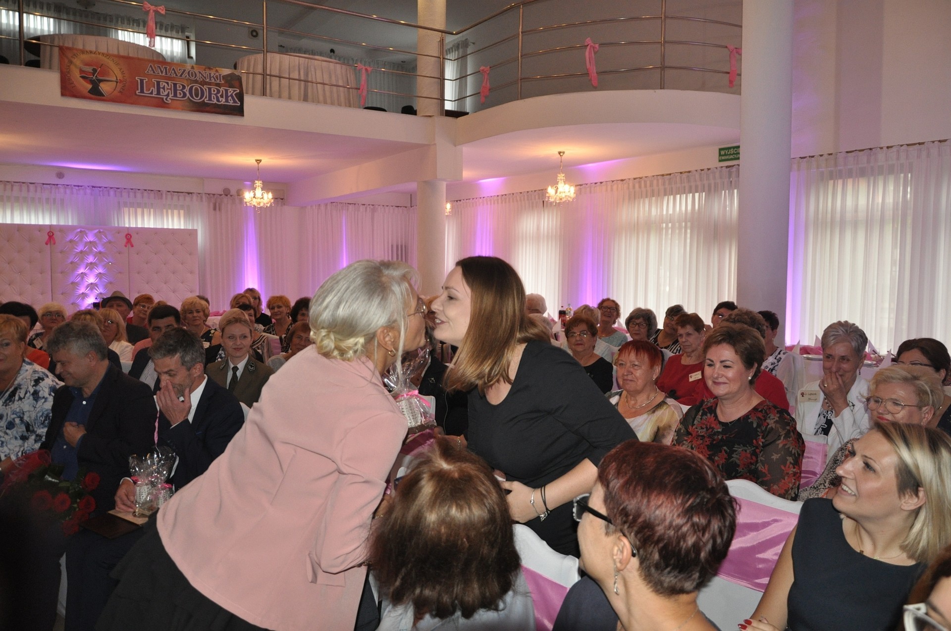 Życzenia przekazał również burmistrz Lęborka Witold Namyślak oraz w imieniu władz Łeby wiceburmistrz tego miasta, Ewa Kapłan. Serdeczności i deklarację wspierania działań stowarzyszenia przekazali także w imieniu nadleśniczego, pracownicy Nadleśnictwa Lębork, reprezentanci szkół, organizacji pozarządowych, przedstawiciele instytucji opieki społecznej. Wśród rocznicowych serdeczności znalazł się czas na wspomnienia jakie były początki stowarzyszenia. Głównym celem stowarzyszenia jest wszechstronna rehabilitacja psycho-fizyczna podczas pobytu oraz po wyjściu pacjentki ze szpitala po leczeniu onkologicznym raka piersi. Nowotwór piersi, atrybutu kobiecości to nie tylko cierpienie fizyczne, ale również trauma psychiczna. Uczestnictwo w działalności stowarzyszenia może pomóc przeciwdziałać spadkowi poczucia własnej wartości, lękowi, stanom depresyjnym, poczuciu społecznego wykluczenia. Amazonki przede wszystkim leczą „duszę”, stając się drugim filarem terapii, oprócz leczenia somatycznego, świetnie je uzupełniając. Tu nikt nie unika problemu, o chorobie rozmawia się szczerze i bezpośrednio. Działające grupy wsparcia, zajęcia rehabilitacyjne, spotkania informacyjne oraz różnego rodzaju formy aktywności towarzyskiej to część z zakresu działalności stowarzyszenia. Amazonkom – jubilatkom życzymy zdrowia, pogody ducha i sukcesów w społecznej działalności.