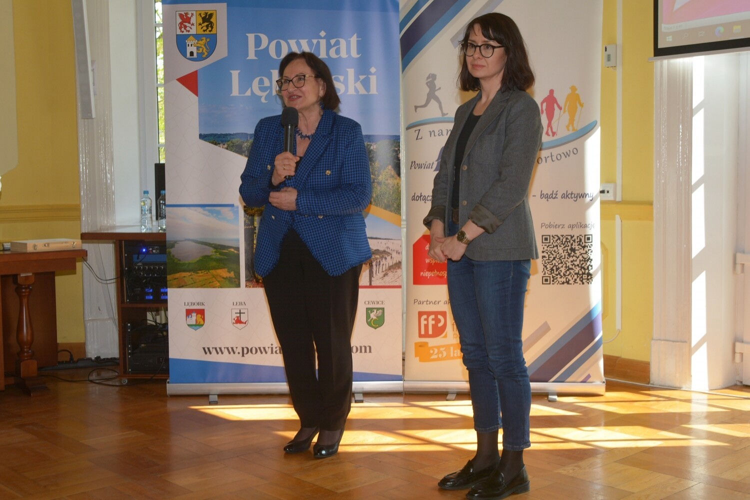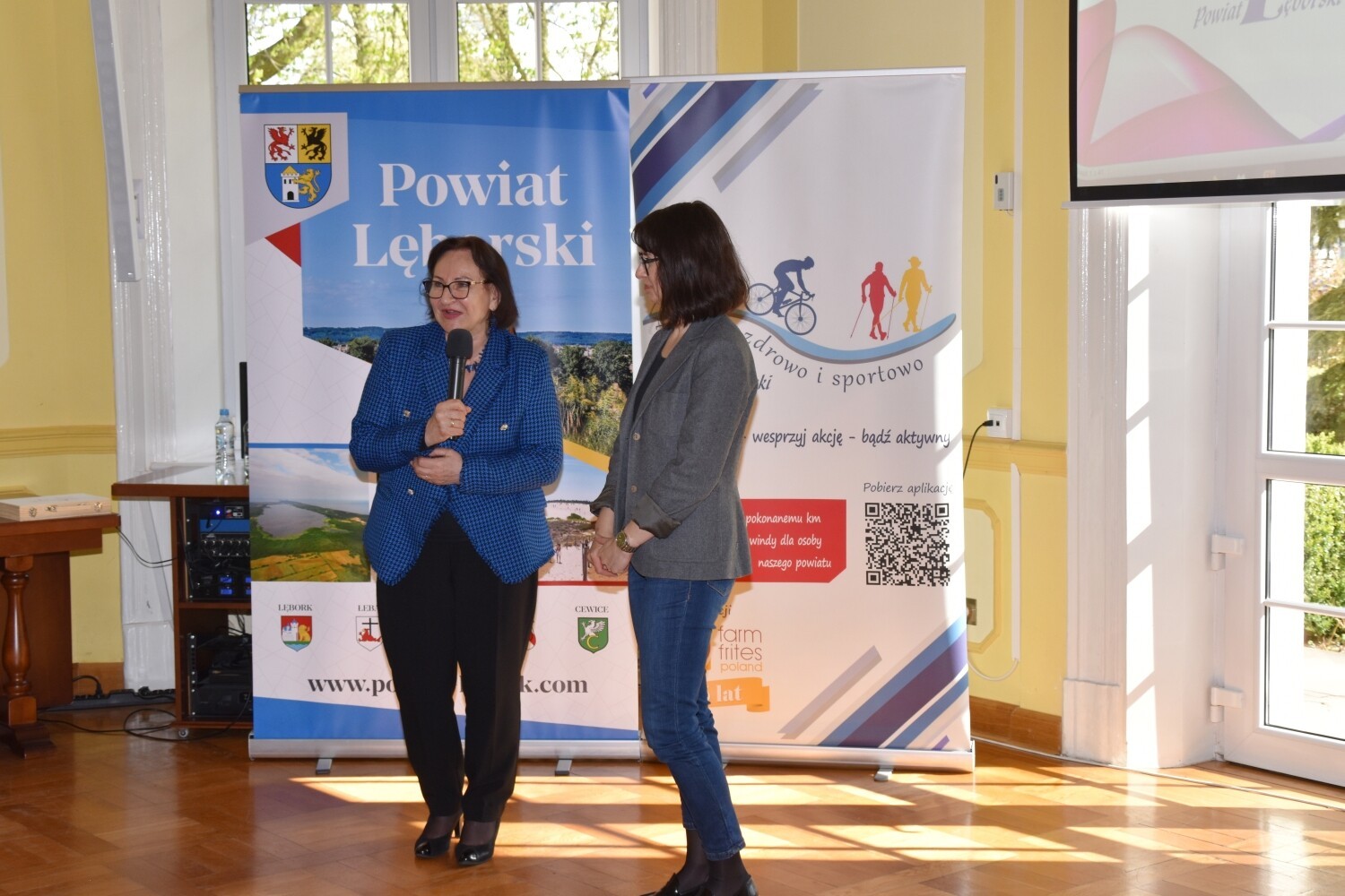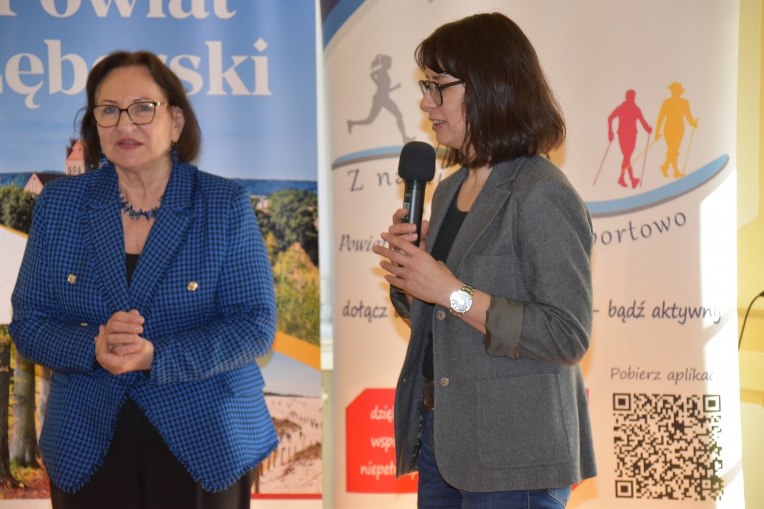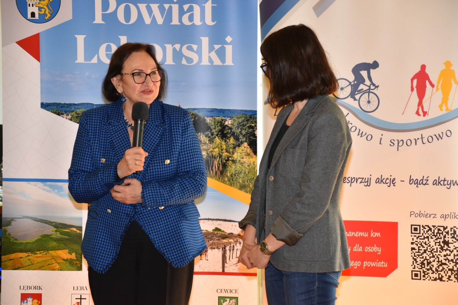 Wśród gości inauguracji pojawili się: Mirosław Tandek – przewodniczący Rady Powiatu Lęborskiego wraz z dwoma wiceprzewodniczącymi – Witoldem Krużyckim i Marianem Borkiem, który oprócz funkcji w radzie przewodniczy Powiatowej Radzie Sportu. Obecny był również Krzysztof Pruszak – wieloletni dyrektor Maratonu Ekologicznego im. Tomasza Hopfera, obecnie organizator wielu imprez sportowo-rekreacyjnych, odbywających się na terenie Enklawy Ekologiczno-Sportowej w Obliwicach. W sali obrad Rady Powiatu Lęborskiego, gdzie odbywała się inauguracja, pojawili się zarówno ci, którzy już wielokrotnie uczestniczyli w sportowo-charytatywnym przedsięwzięciu Powiatu Lęborskiego, jak i ci, którzy zdecydowali o uczestnictwie po raz pierwszy. Obecni byli również przedstawiciele klubów i stowarzyszeń sportowych, którzy wspierają organizację akcji od samego początku. Iwona Witke – kierownik Referatu Rozwoju i Promocji Starostwa Powiatowego w Lęborku przypomniała co działo się w minionych sezonach, w tym w roku ograniczeń pandemicznych, który wymusił zmianę formuły imprezy na treningi prowadzone zdalnie przez trenerkę personalną. O celu przedsięwzięcia w wymiarze charytatywnym mówiła Bogusława Lis-Zielińska – dyrektor Powiatowego Centrum Pomocy Rodzinie w Lęborku. A właśnie wymiar charytatywny z akcją współgra od pierwszej edycji. Organizatorów – Powiat Lęborski, wspiera w tym finansowo Partner akcji – Farm Frites Poland S.A., którzy zebrane kilometry „zamienia na złotówki”, umożliwiając dofinansowanie zakupów sprzętu rehabilitacyjnego osobom niepełnosprawnym z terenu powiatu lęborskiego. W minionych edycjach zbieraliśmy wspólnie na wózki inwalidzkie, w tym specjalistyczne, asystor kaszlu, urządzenia ułatwiające codzienne funkcjonowanie osobom mającym z tym problemy. Tym razem zbieramy kilometry, by pomóc w zakupie „platformy pionowej „Jura” w wersji kątowej 90 stopni”, umożliwiającej osobie niepełnosprawnej samodzielne przemieszczanie się wraz z wózkiem na piętro. Koszt takiego sprzętu to ok. 48 tys. zł. W ramach środków z PFRON PCPR może dofinansować zakup kwotą ok. 25 tys. zł. Środki przekazane przez Farm Frites Poland ułatwią ten zakup. Warunkiem koniecznym jest jednak zebranie przez wszystkich uczestników akcji, w czasie od 1 maja do 31 lipca, minimum 50 tys. km poprzez formy aktywności polegające na chodzeniu, bieganiu i jeździe na rowerze. O słuszności samej idei akcji i stałej gotowości wspierania przez FFP mówiła Katarzyna Majchrzak - szefowa ds. Komunikacji i Zaangażowania Społecznego w Farm Frites Poland S.A., która corocznie uczestniczy w inauguracjach i finałach akcji. Podobnie jak w poprzednich sezonach, tegoroczną edycję pani Katarzyna otworzyła wspólnie ze starostą Alicją Zajączkowską.