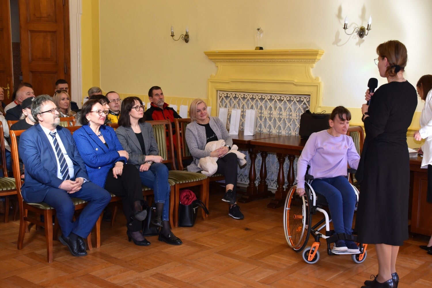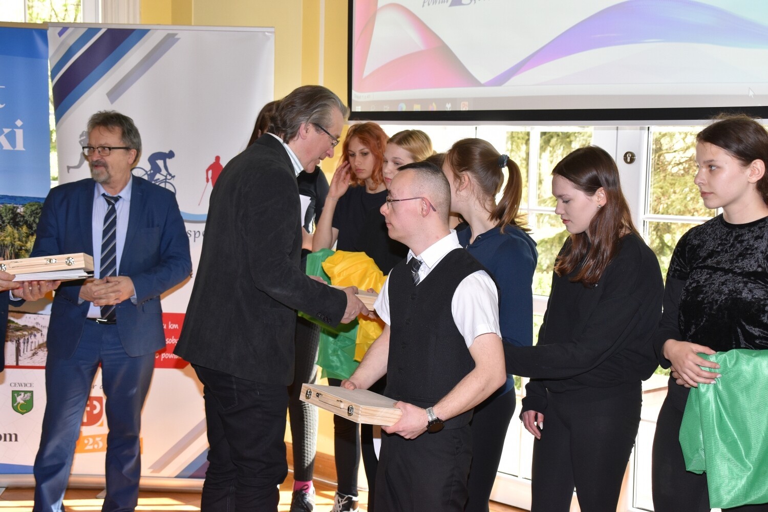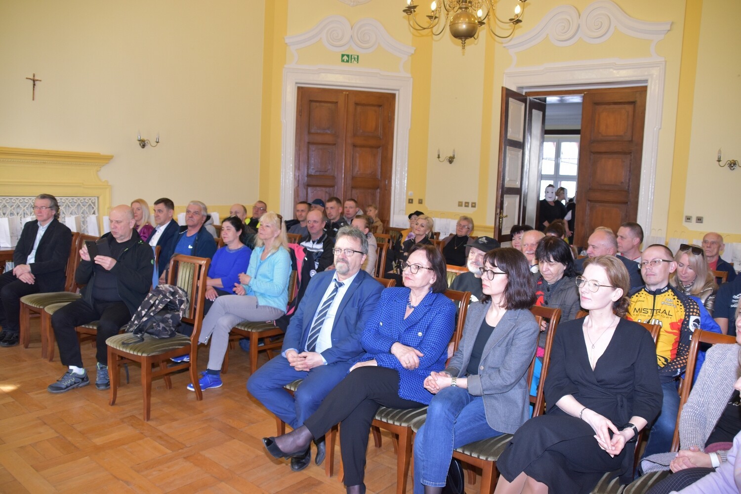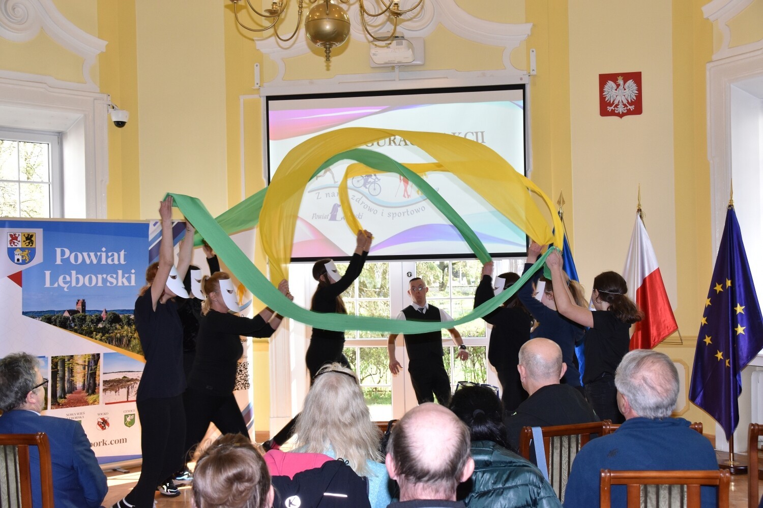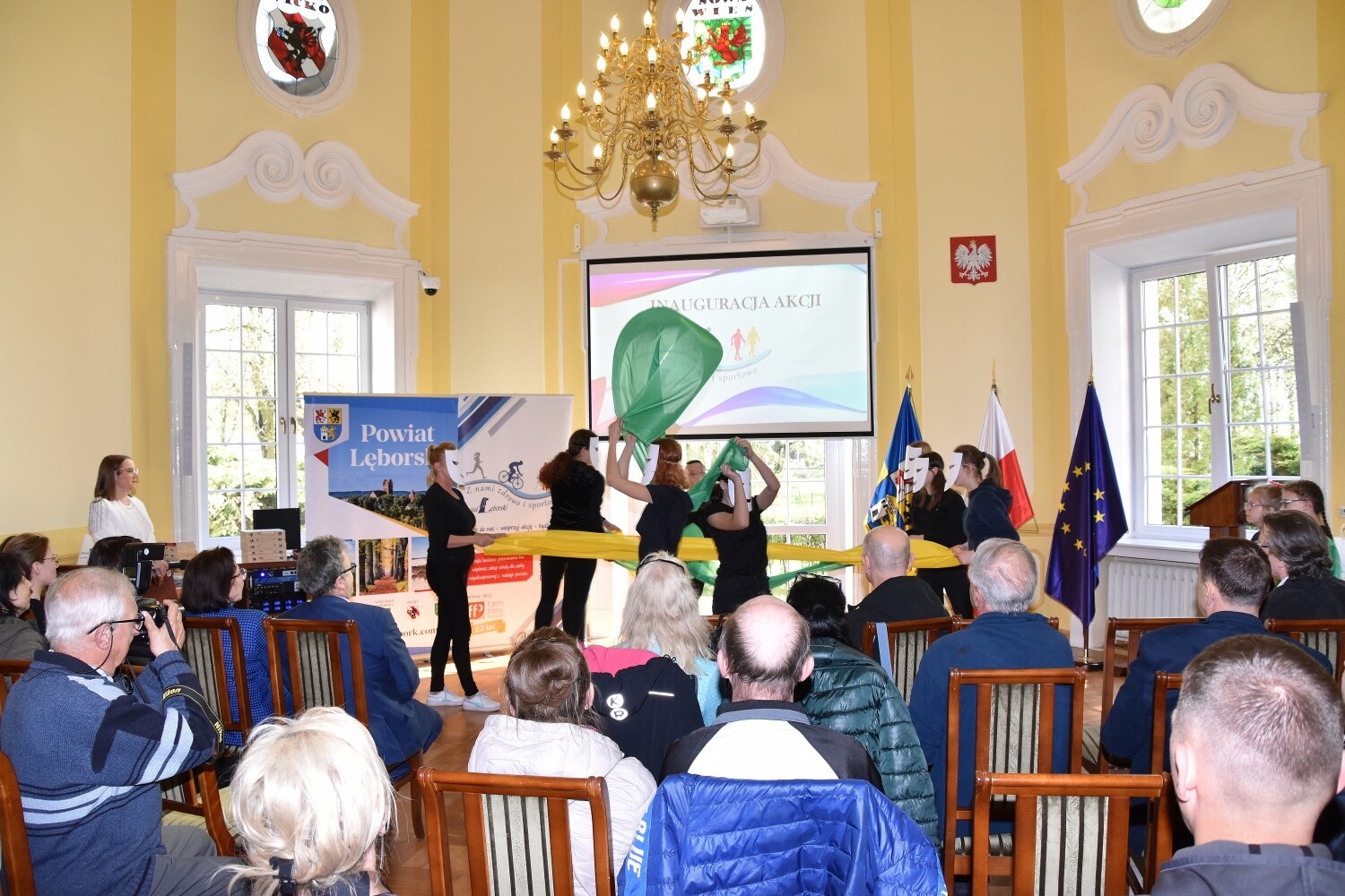 Wśród gości inauguracji pojawili się: Mirosław Tandek – przewodniczący Rady Powiatu Lęborskiego wraz z dwoma wiceprzewodniczącymi – Witoldem Krużyckim i Marianem Borkiem, który oprócz funkcji w radzie przewodniczy Powiatowej Radzie Sportu. Obecny był również Krzysztof Pruszak – wieloletni dyrektor Maratonu Ekologicznego im. Tomasza Hopfera, obecnie organizator wielu imprez sportowo-rekreacyjnych, odbywających się na terenie Enklawy Ekologiczno-Sportowej w Obliwicach. W sali obrad Rady Powiatu Lęborskiego, gdzie odbywała się inauguracja, pojawili się zarówno ci, którzy już wielokrotnie uczestniczyli w sportowo-charytatywnym przedsięwzięciu Powiatu Lęborskiego, jak i ci, którzy zdecydowali o uczestnictwie po raz pierwszy. Obecni byli również przedstawiciele klubów i stowarzyszeń sportowych, którzy wspierają organizację akcji od samego początku. Iwona Witke – kierownik Referatu Rozwoju i Promocji Starostwa Powiatowego w Lęborku przypomniała co działo się w minionych sezonach, w tym w roku ograniczeń pandemicznych, który wymusił zmianę formuły imprezy na treningi prowadzone zdalnie przez trenerkę personalną. O celu przedsięwzięcia w wymiarze charytatywnym mówiła Bogusława Lis-Zielińska – dyrektor Powiatowego Centrum Pomocy Rodzinie w Lęborku. A właśnie wymiar charytatywny z akcją współgra od pierwszej edycji. Organizatorów – Powiat Lęborski, wspiera w tym finansowo Partner akcji – Farm Frites Poland S.A., którzy zebrane kilometry „zamienia na złotówki”, umożliwiając dofinansowanie zakupów sprzętu rehabilitacyjnego osobom niepełnosprawnym z terenu powiatu lęborskiego. W minionych edycjach zbieraliśmy wspólnie na wózki inwalidzkie, w tym specjalistyczne, asystor kaszlu, urządzenia ułatwiające codzienne funkcjonowanie osobom mającym z tym problemy. Tym razem zbieramy kilometry, by pomóc w zakupie „platformy pionowej „Jura” w wersji kątowej 90 stopni”, umożliwiającej osobie niepełnosprawnej samodzielne przemieszczanie się wraz z wózkiem na piętro. Koszt takiego sprzętu to ok. 48 tys. zł. W ramach środków z PFRON PCPR może dofinansować zakup kwotą ok. 25 tys. zł. Środki przekazane przez Farm Frites Poland ułatwią ten zakup. Warunkiem koniecznym jest jednak zebranie przez wszystkich uczestników akcji, w czasie od 1 maja do 31 lipca, minimum 50 tys. km poprzez formy aktywności polegające na chodzeniu, bieganiu i jeździe na rowerze. O słuszności samej idei akcji i stałej gotowości wspierania przez FFP mówiła Katarzyna Majchrzak - szefowa ds. Komunikacji i Zaangażowania Społecznego w Farm Frites Poland S.A., która corocznie uczestniczy w inauguracjach i finałach akcji. Podobnie jak w poprzednich sezonach, tegoroczną edycję pani Katarzyna otworzyła wspólnie ze starostą Alicją Zajączkowską.