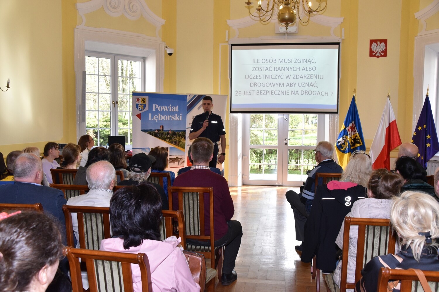 Ponieważ uczestnicy aktywności, uprawiający ruch w przestrzeni publicznej, będą korzystali w części przynajmniej z ogólnodostępnych dróg, warto było przypomnieć o zasadach bezpiecznego poruszania się tak pieszo, jak rowerem. O tym mówił asp. sztab. Arkadiusz Loda, naczelnik Wydziału Ruchu Drogowego Komendy Powiatowej Policji w Lęborku, obrazując wypowiedzi bogatym materiałem fotograficznym ukazującym skutki nieostrożności, brawury, czy nadużywania używek.