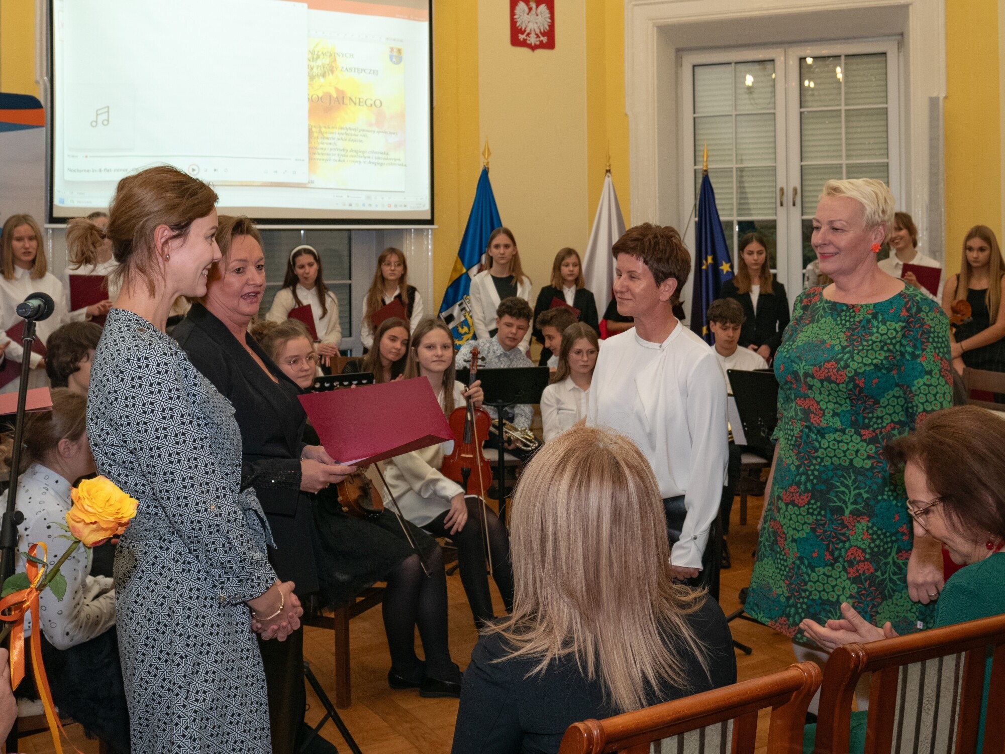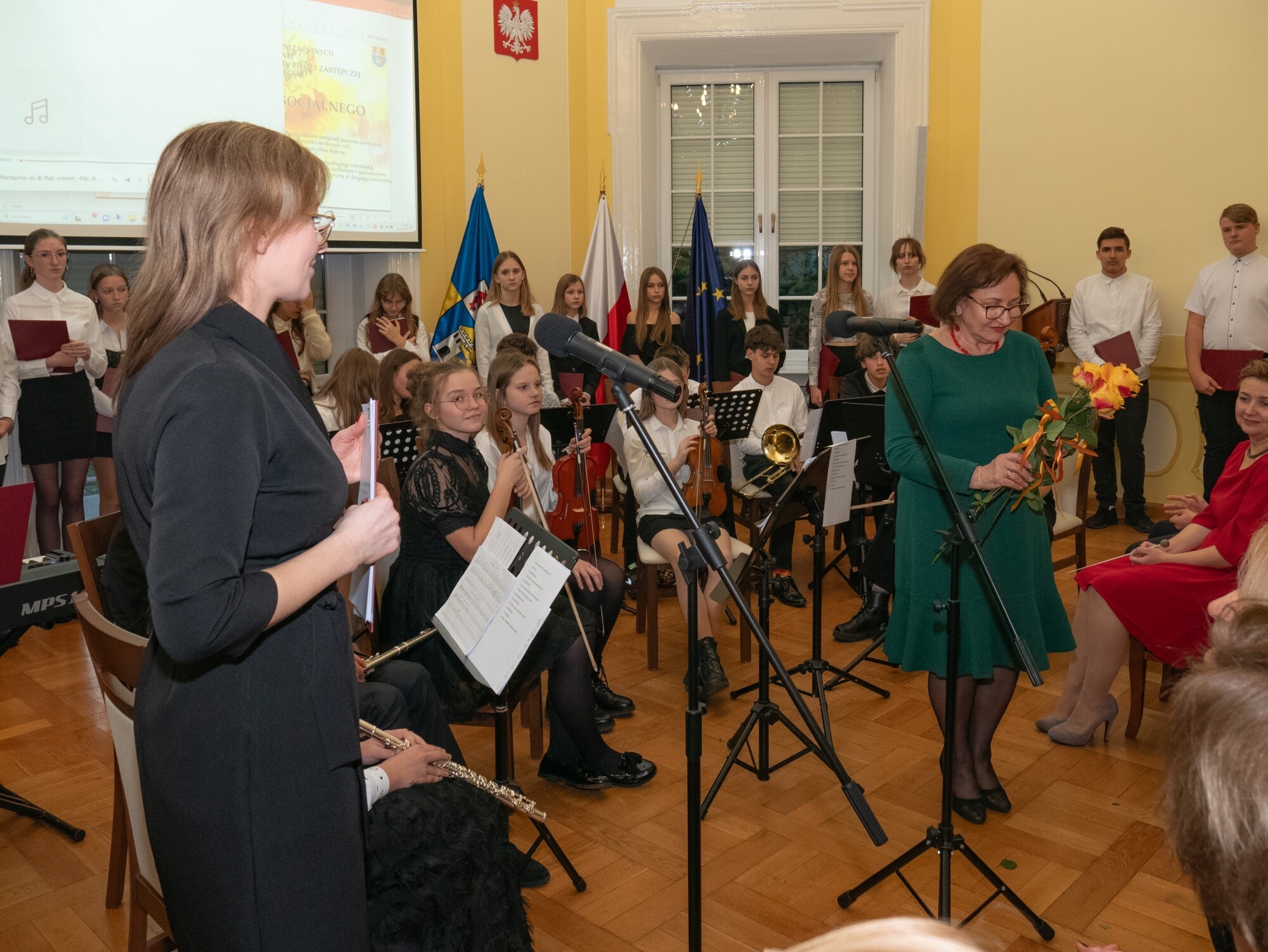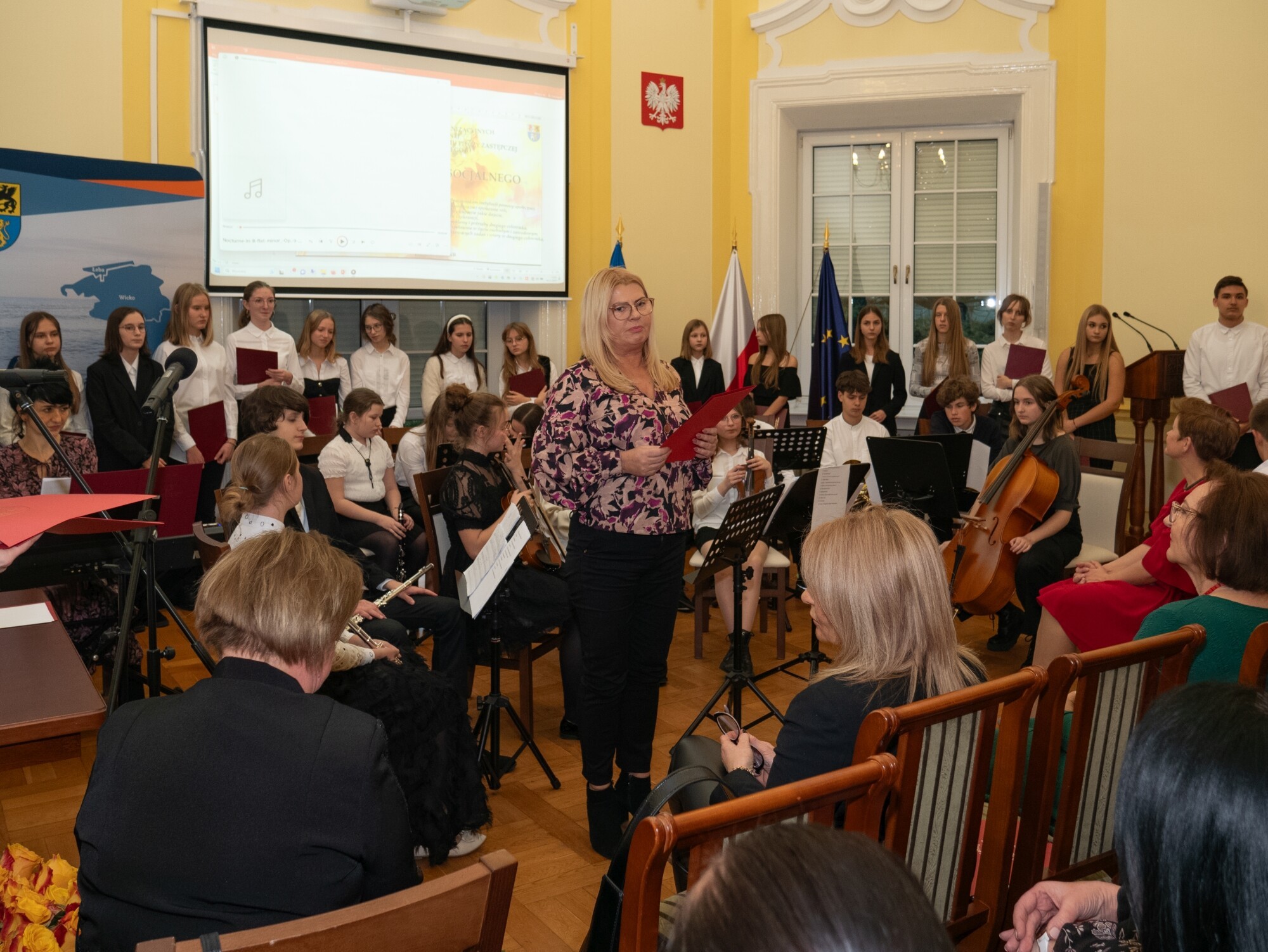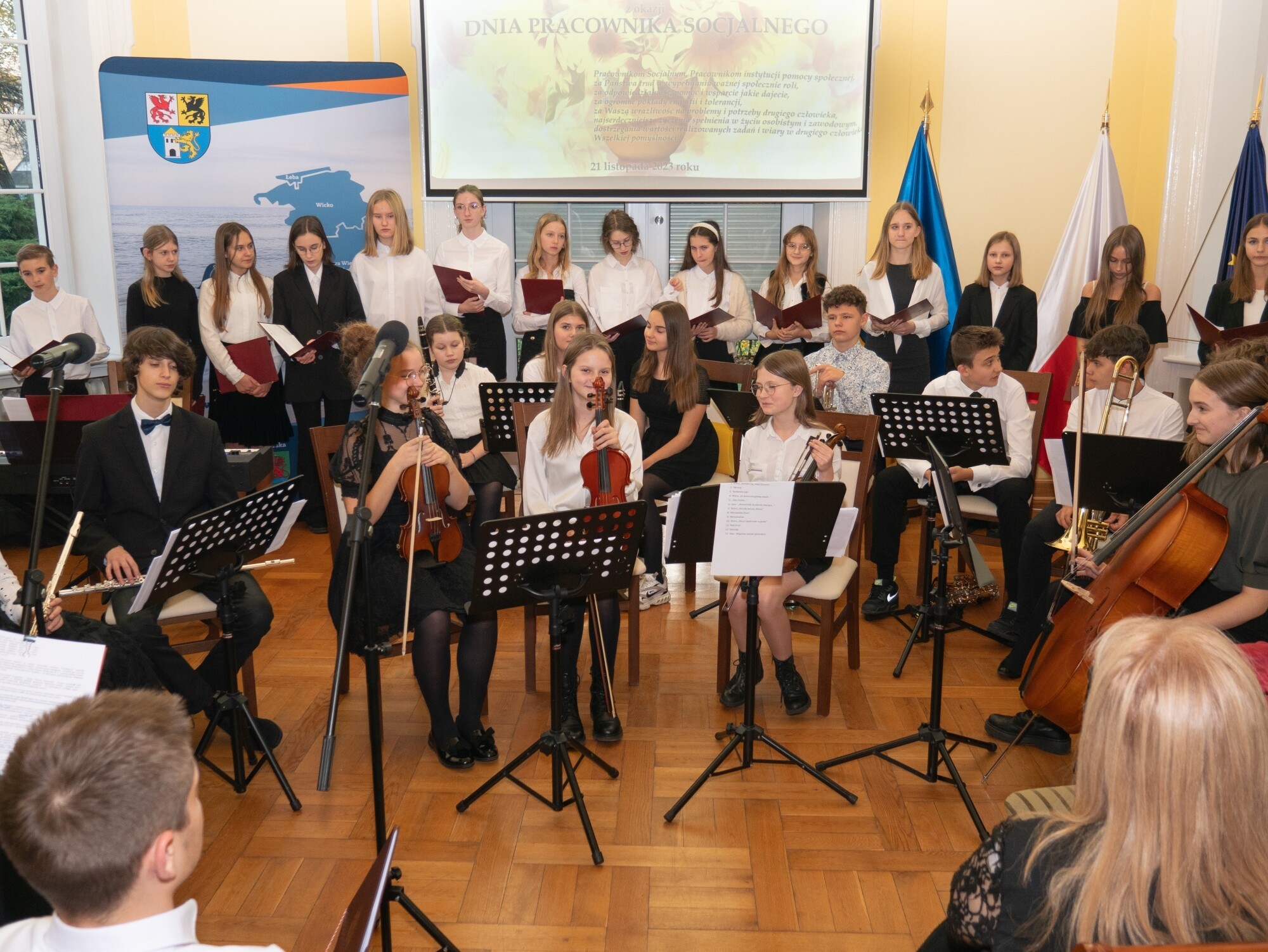 W słowno-muzycznej części spotkania zaprezentowały się: chór i orkiestra kameralna pod dyrekcją Magdaleny Kreft z Państwowej Szkoły Muzycznej I st. im. Mieczysława Michalskiego w Lęborku.