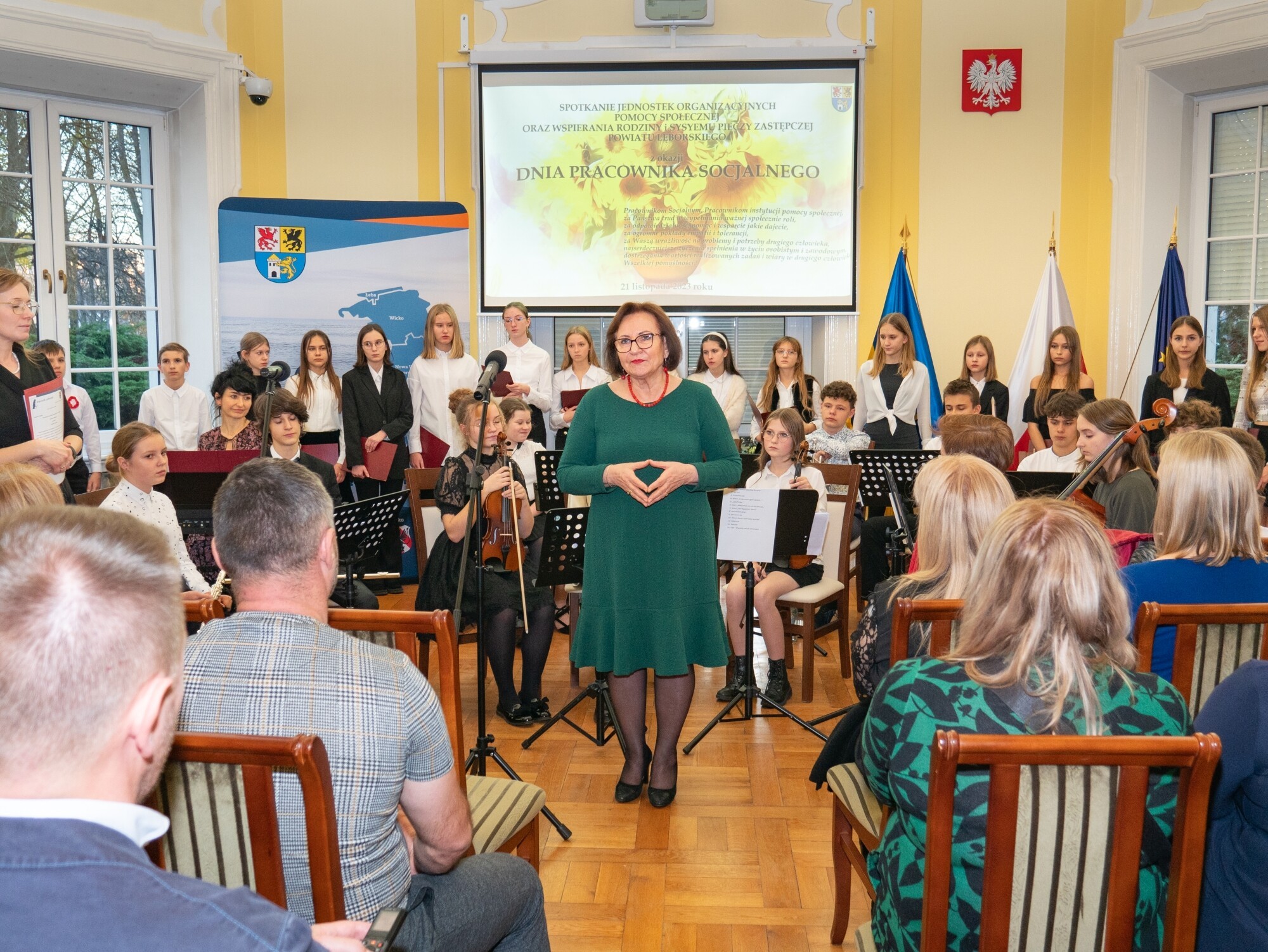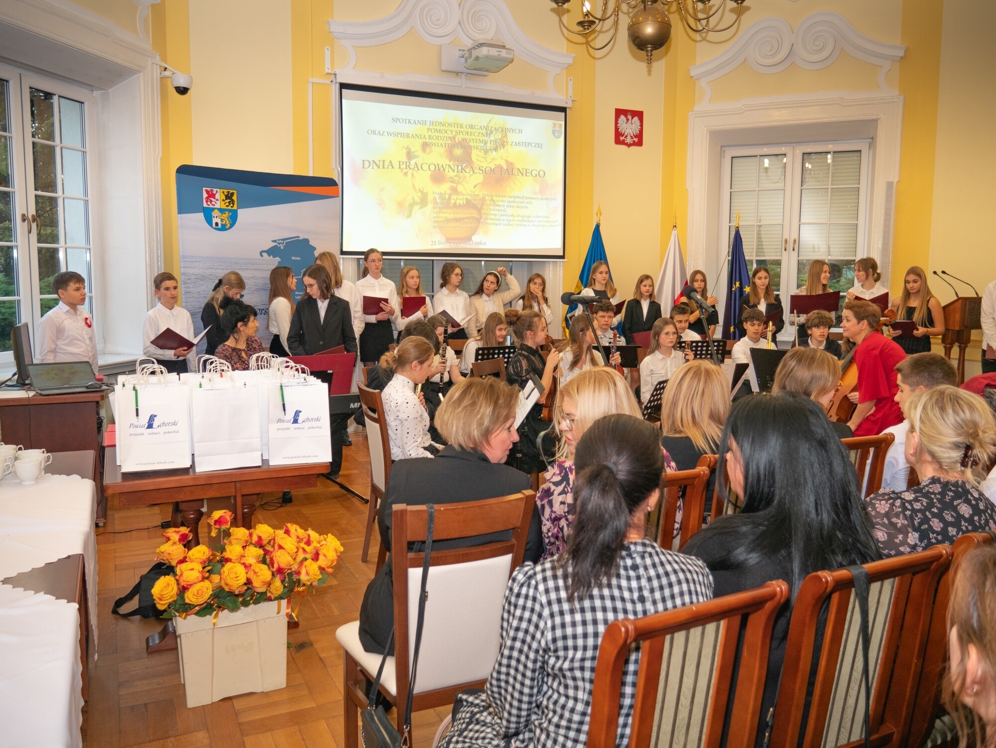 Przedstawiciele instytucji realizujących zadania z zakresu pomocy socjalnej – przedstawiciele domów pomocy społecznej, domów dla dzieci i Powiatowego Centrum Pomocy Społecznej obchodzili wczoraj (21.11) Dzień Pracownika Socjalnego. Uroczyste spotkanie, podczas którego z pracownikami spotkała się Starosta Lęborski, zorganizowane zostało w sali obrad Rady Powiatu Lęborskiego.