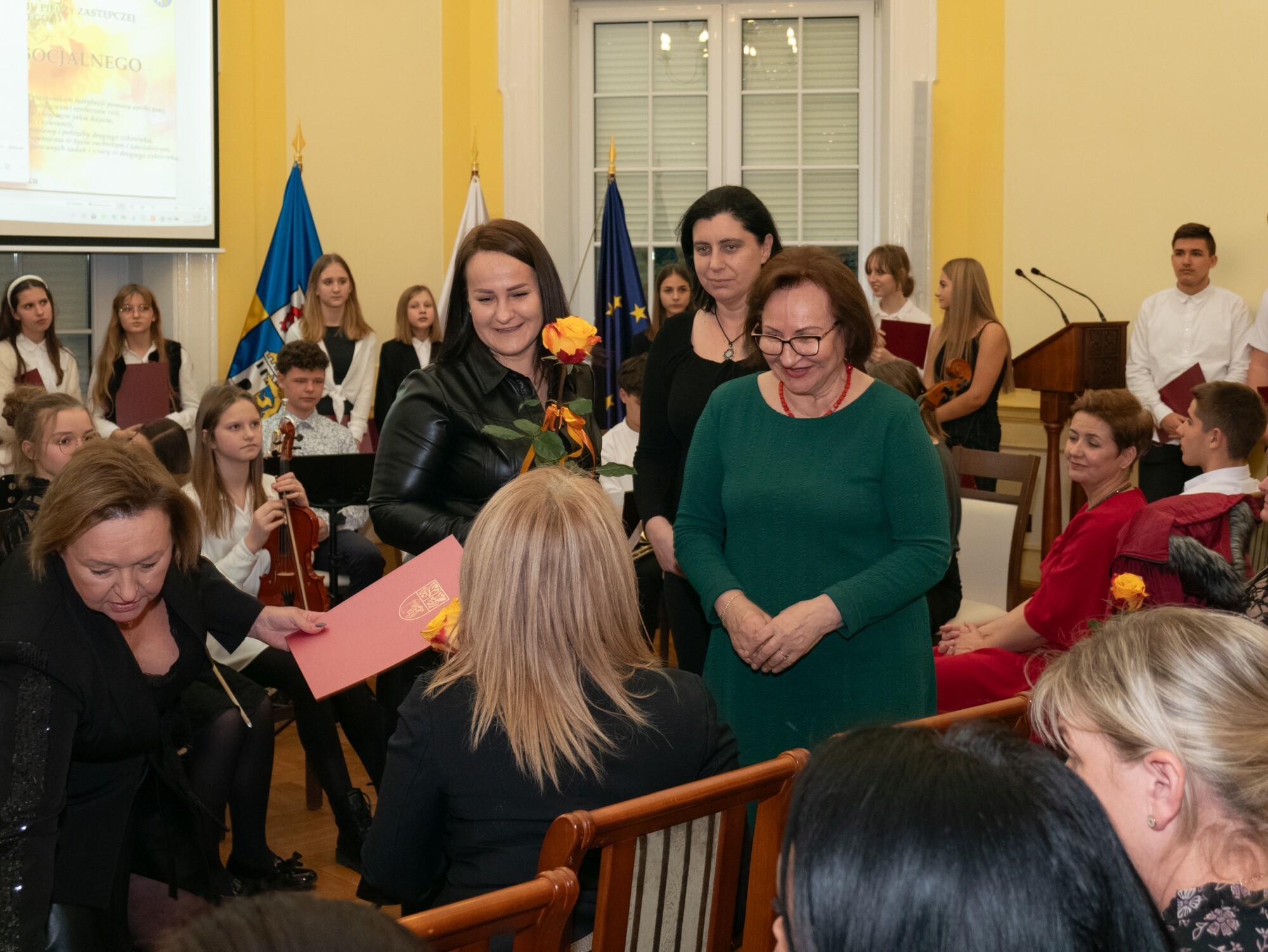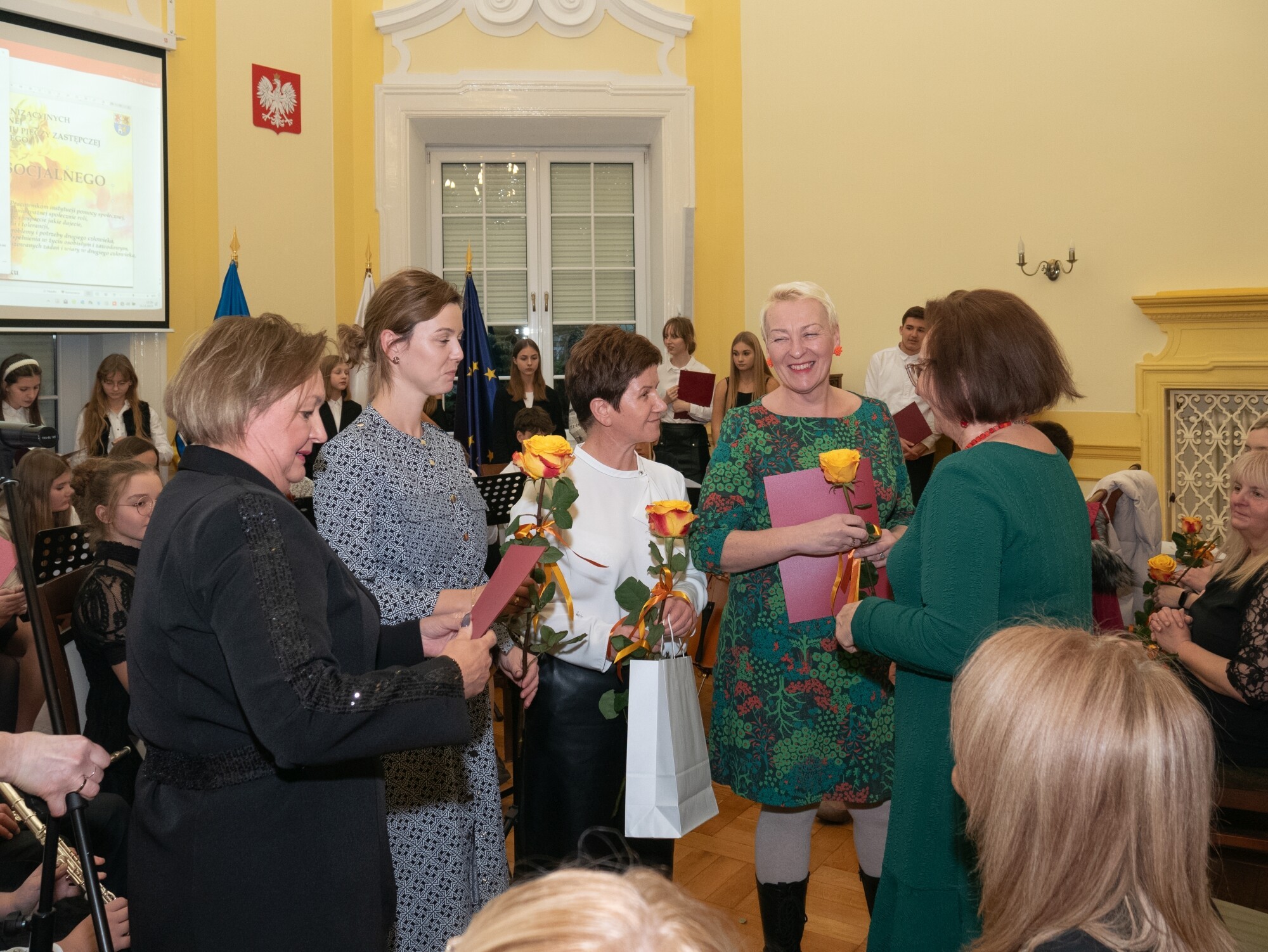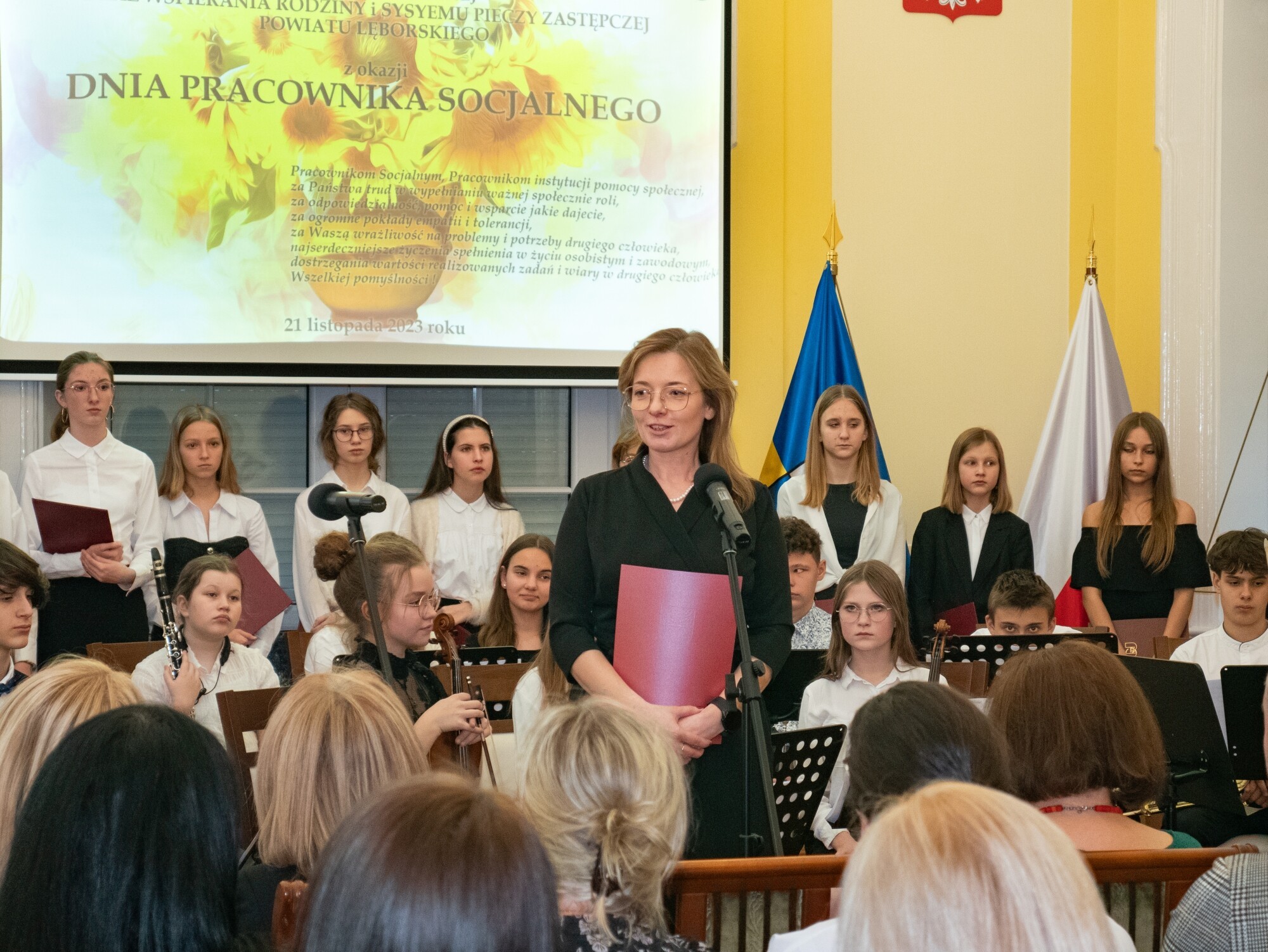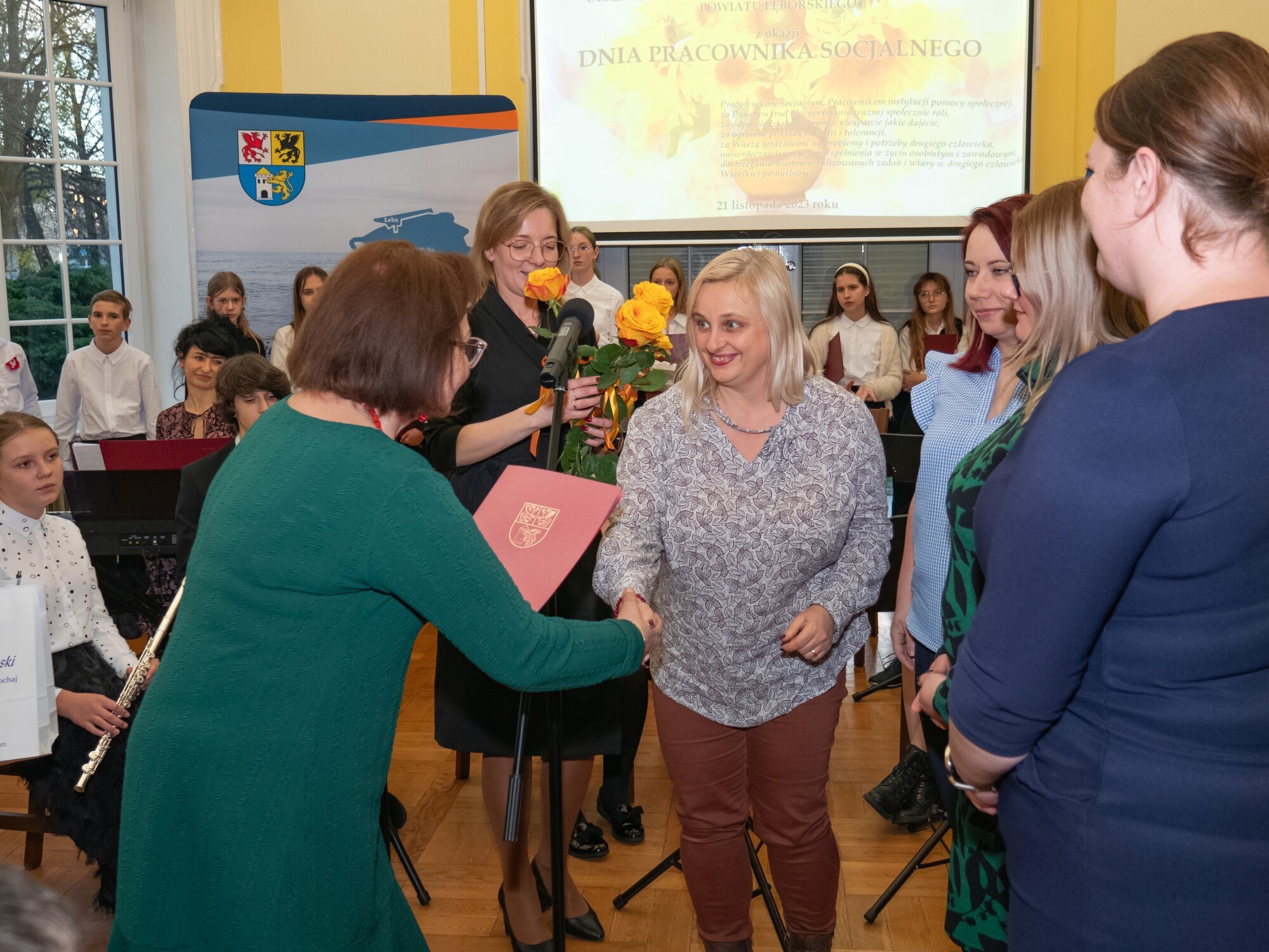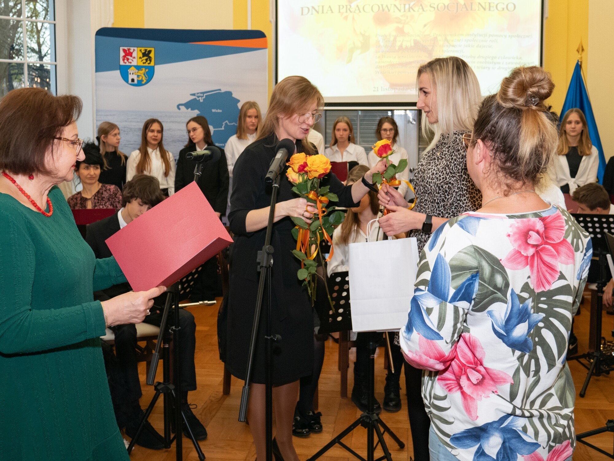 Całość spotkanie poprowadziła Bogusława Lis-Zielińska – dyrektor Powiatowego Centrum Pomocy Rodzinie, ale przyjęta konwencja uroczystości umożliwiła każdemu z dyrektorów jednostek złożenie życzeń swoim pracownikom i wręczenie im wyróżnień. Oprócz dyrektorki PCPR, podziękowania pracownikom złożyły również: Jolanta Wilkiel – dyrektor Domu Pomocy Społecznej nr 1, Agnieszka Szumańska – dyrektor DPS nr 2 i Brygida Polaszek, dyrektor Centrum Obsługi Domów dla Dzieci w Nowej Wsi Lęborskiej, zarządzającego funkcjonowaniem domów „Zakątek” i „Siedlisko”.