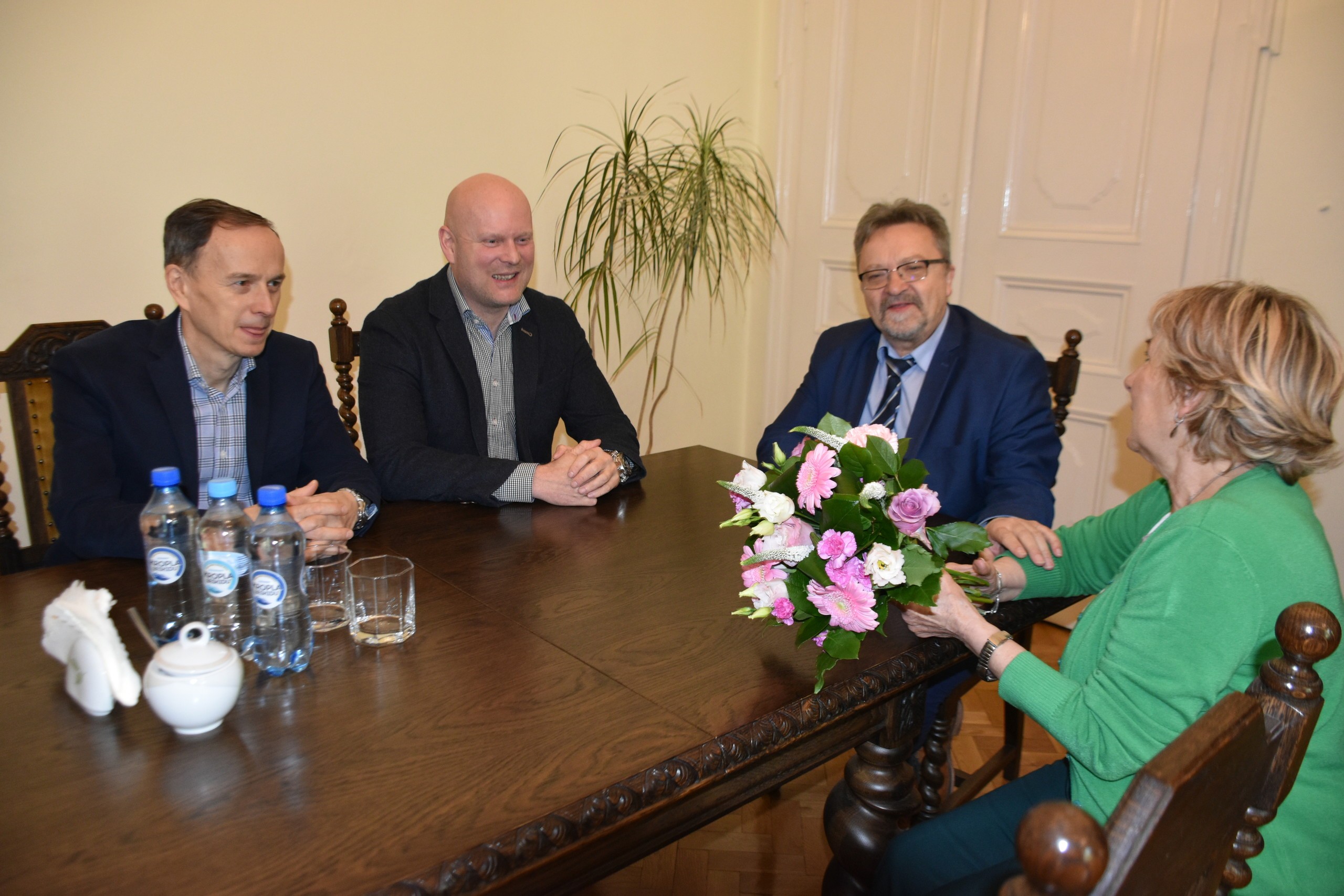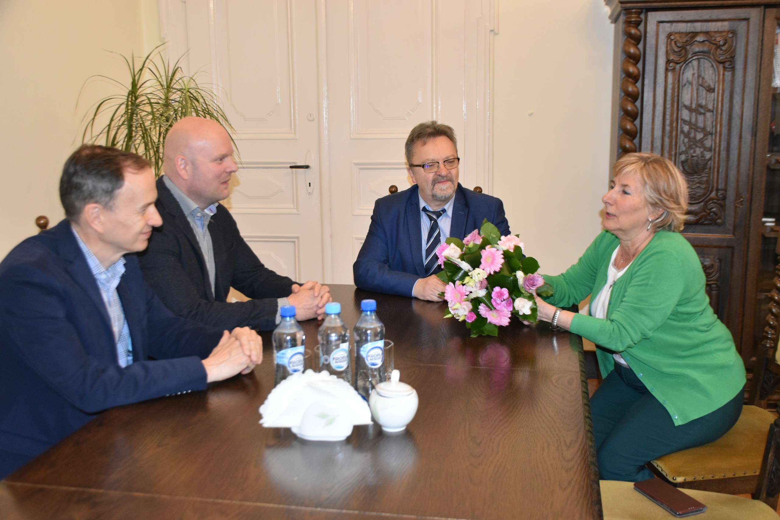 Z wizytą niespodzianką przybyli do naszego urzędu, z okazji Dnia Samorządu Terytorialnego, Adam Hoffmann -zastępca dyrektora ds. finansowych SPS ZOZ w Lęborku, wraz z Arturem Barną - Lekarzem Naczelnym. Gości przyjęli Wicestarosta Lęborski Edmund Głombiewski wraz z Sekretarzem Danutą Mikołajczyk. Panowie, w imieniu dyrekcji szpitala złożyli najserdeczniejsze życzenia wszystkim pracownikom administracji publicznej.