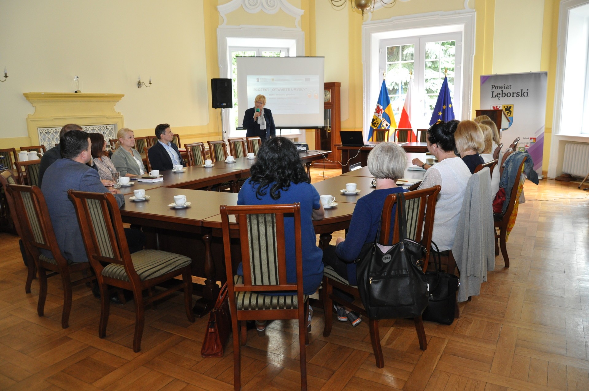 Przybyłych gości uczestniczących w tym wydarzeniu, tj. Dyrektorów i Pracowników merytorycznych szkół/placówek zaangażowanych w realizację projektu, przywitała Wicestarosta Elżbieta Godderis. Wśród zebranych znaleźli się także przedstawiciele organu prowadzącego: Sekretarz Powiatu Lęborskiego Krzysztof Król, Naczelnik Wydziału Edukacji i Spraw Społecznych w Starostwie Powiatowym w Lęborku Ewa Burak, a także karda realizująca projekt z Referatu Programów Pomocowych.