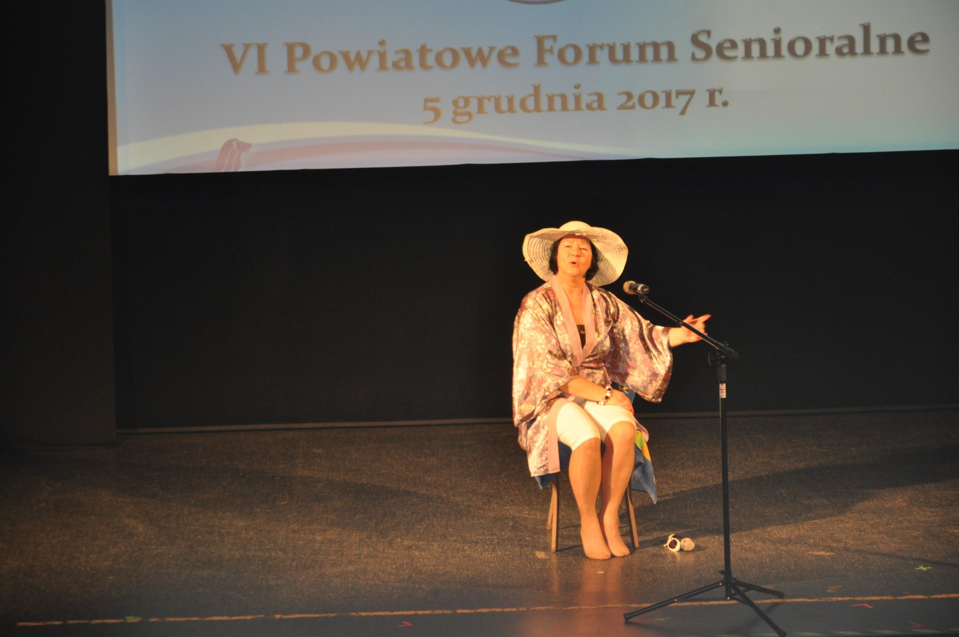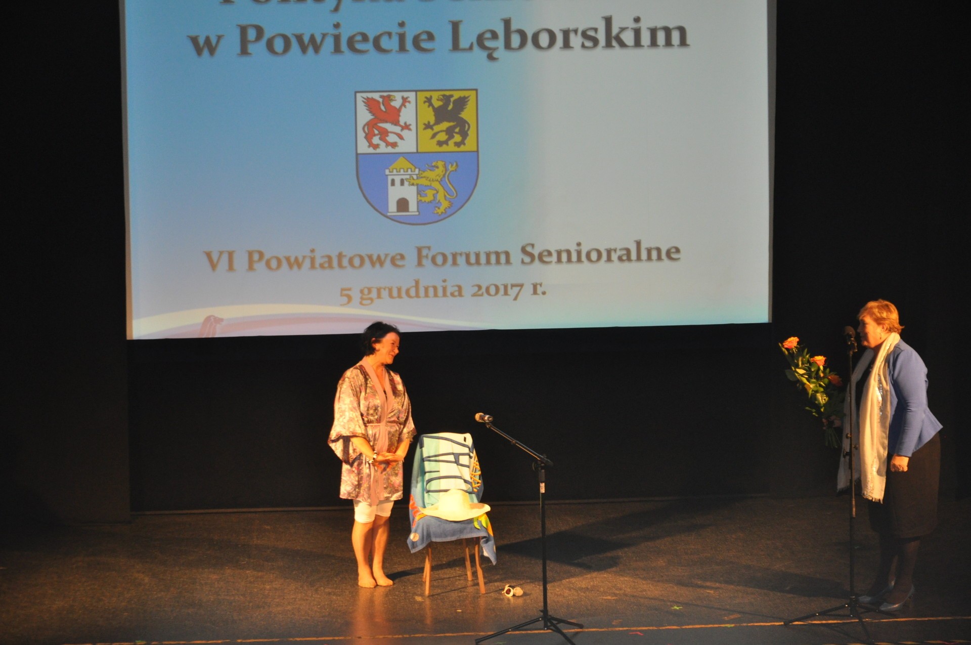 Merytorycznej dyskusji towarzyszyły artystyczne występy. To również stały element spotkań w ramach odbywających się for senioralnych, ponieważ oprócz dyskusji nad problemami ważnymi, spotkania te od zawsze pełnią również rolę integracyjną. Tym razem na scenie zaprezentowała się w repertuarze wokalnym Klaudia Juchniewicz, a w spektaklu jednego aktora Dorota Reszke, prezes Uniwersytetu Trzeciego Wieku w Łebie, a z zamiłowania wokalistka i aktorka. Jako, że grudzień to czas świąteczny, również podczas tego spotkania nie zabrakło dla jego uczestników drobnych upominków, przygotowanych przez lęborskiego starostę.