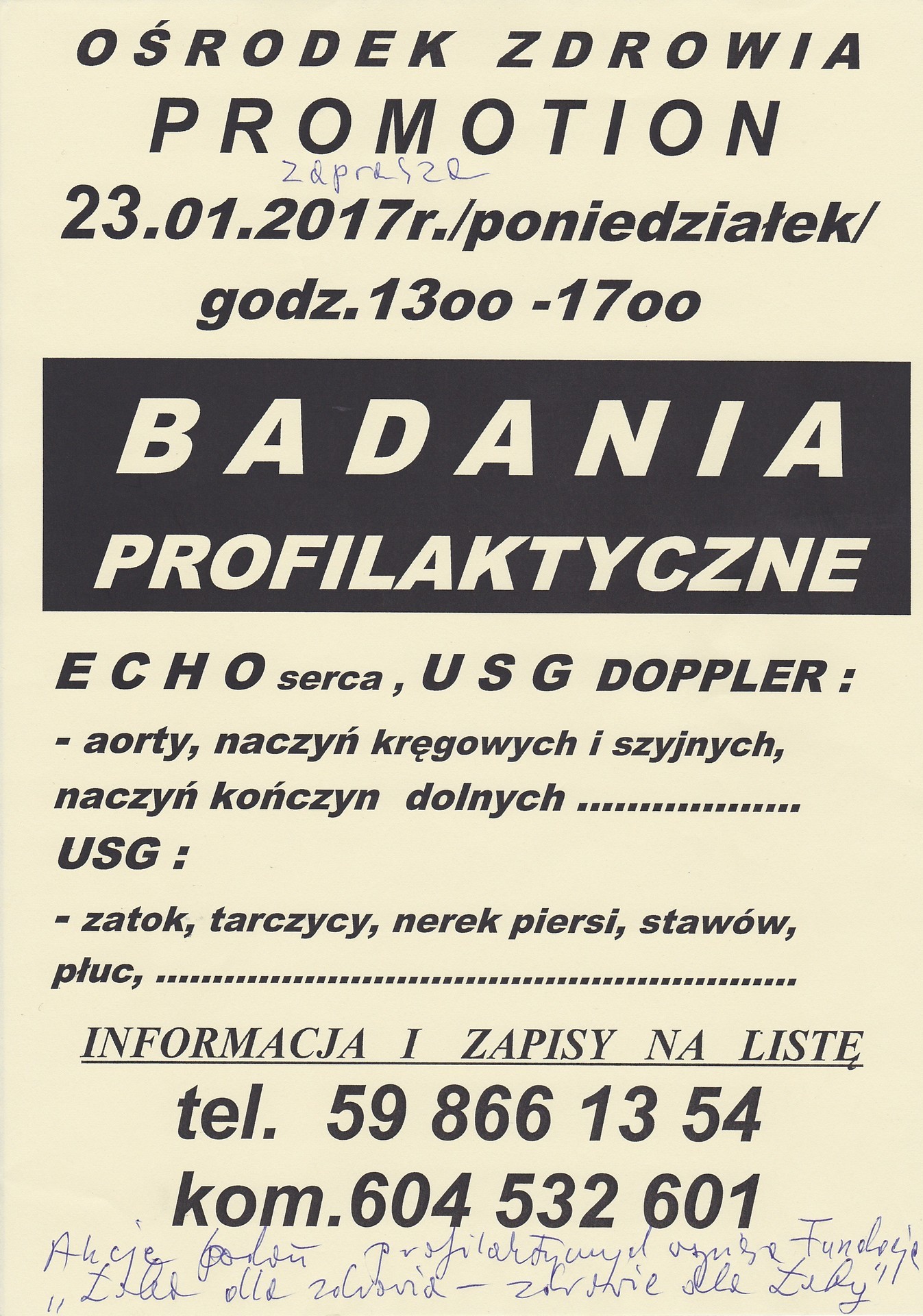 - Zaproszenie na bezpłatne badania profilaktyczne