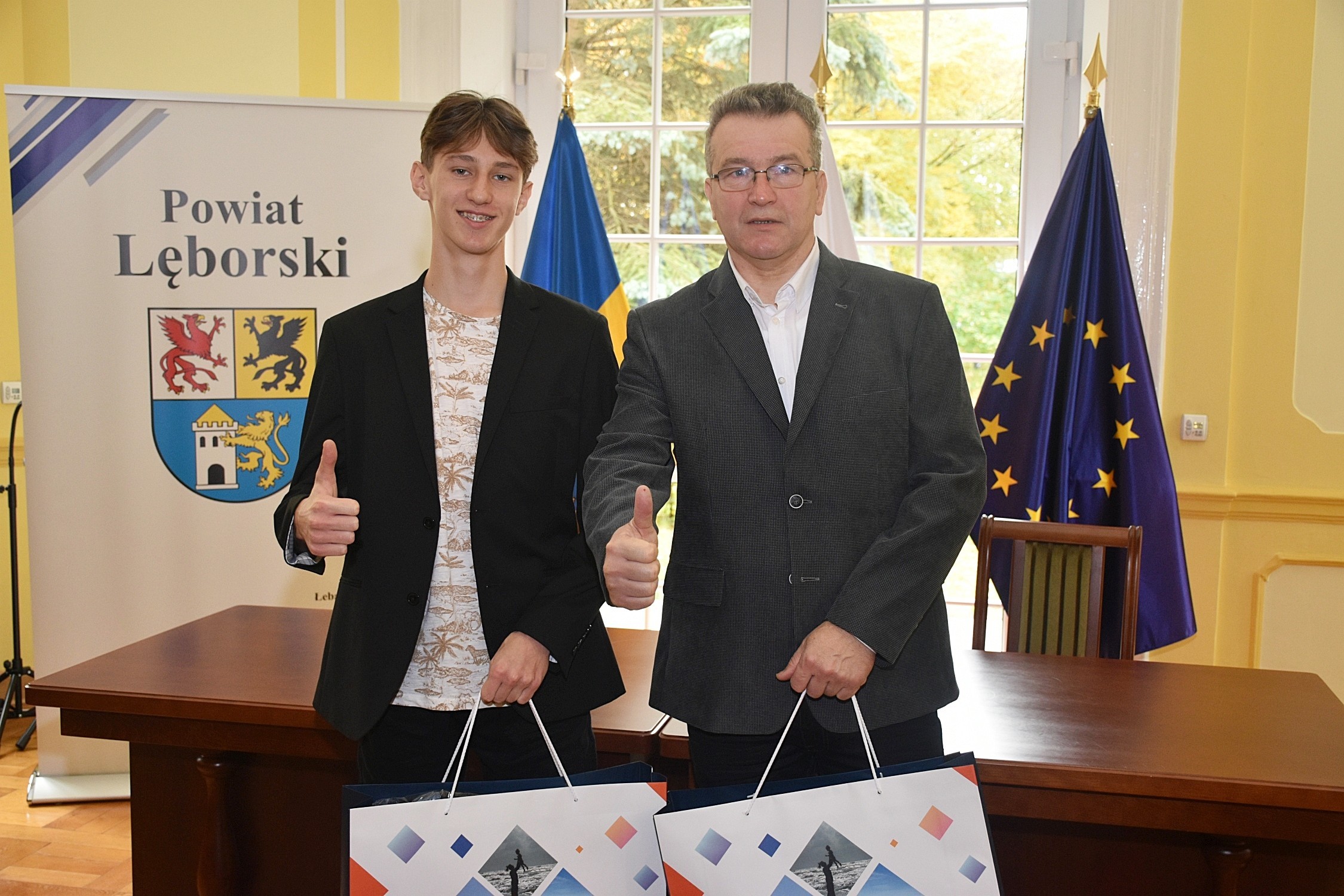 Gratulacje w imieniu Zarządu Powiatu złożyła Mateuszowi i jego trenerowi starosta Alicja Zajączkowska: – Gratulujemy ci sukcesu, trenerowi osiągnięć i wykreowania mistrzowskiego zawodnika. Cieszę się, że w powiecie lęborskim są takie talenty sportowe oraz szkoleniowcy, którzy potrafią takie diamenty dostrzec i należycie „oszlifować”, otwierając drogę do profesjonalnej kariery sportowej, mam nadzieję, że na miarę olimpijską, czego i tobie i trenerowi życzę.