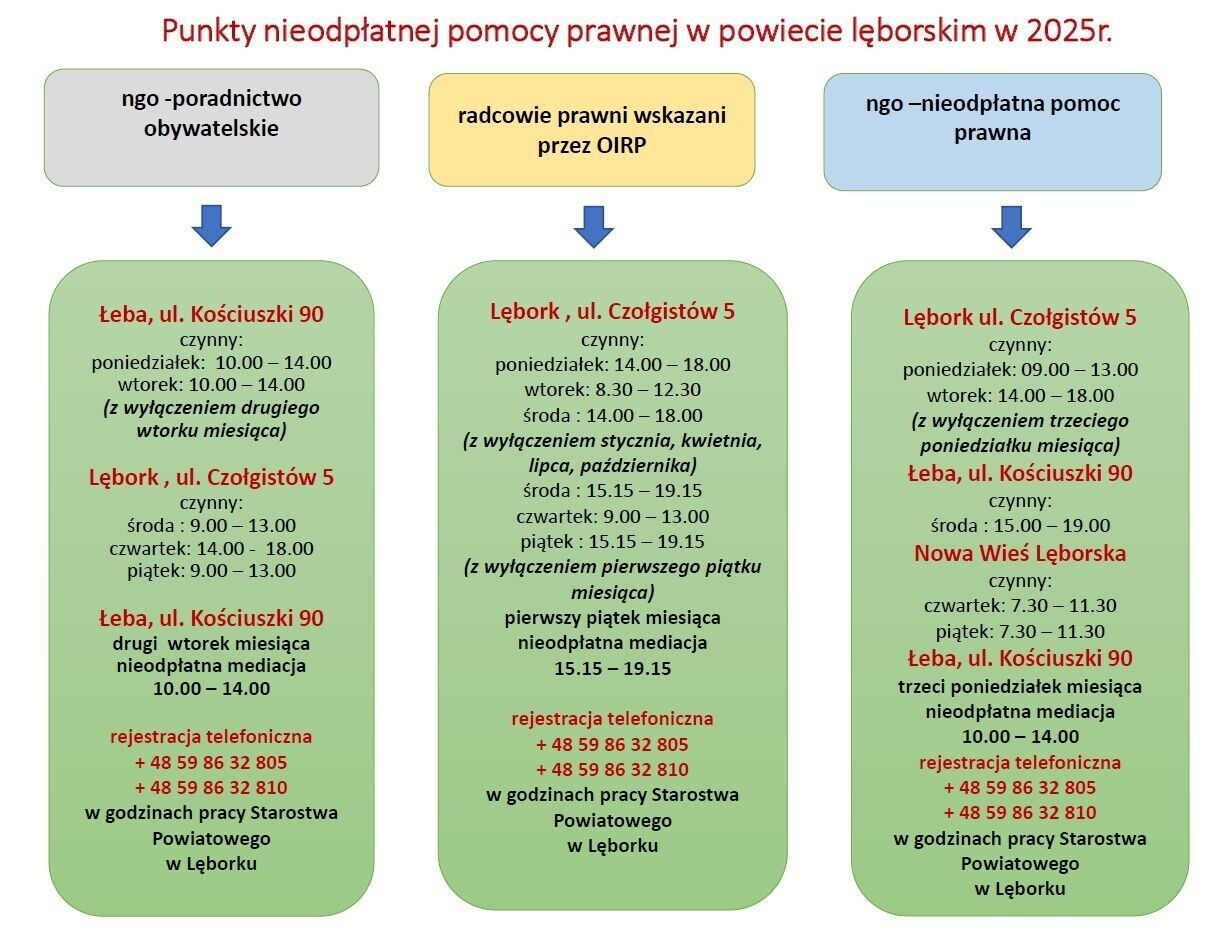 Więcej na temat pomocy prawnej w powiecie lęborskim - tutaj: https://www.powiat-lebork.com/dla-mieszkanca/nieodplatna-pomoc-prawna-2/#maincontent
