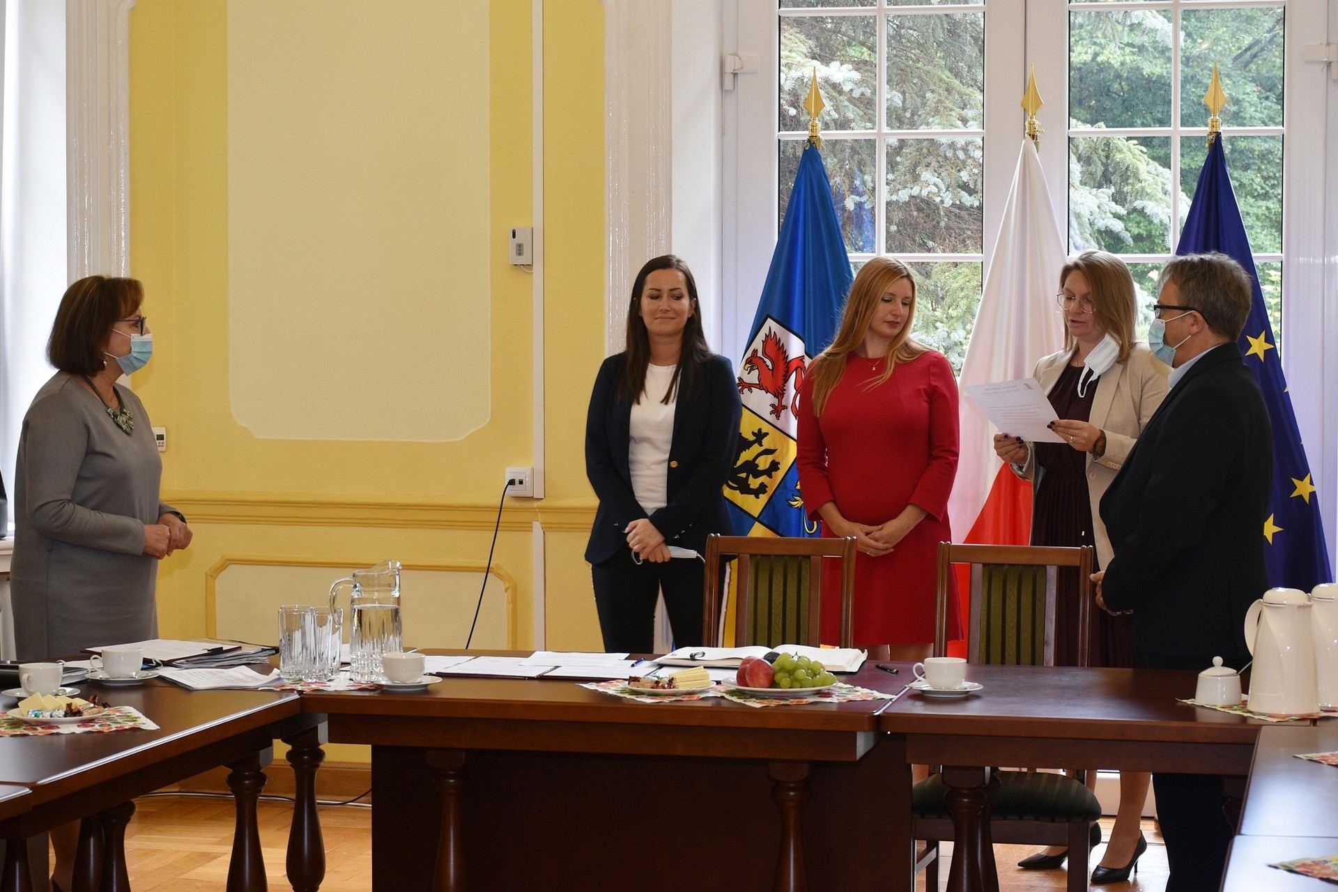 Alicja Zajączkowska, Starosta Lęborski wraz z Edmundem Głombiewskim, Wicestarostą Lęborskim, wręczyli akty nadania awansu zawodowego nauczyciela mianowanego nauczycielom szkół ponadpodstawowych prowadzonych przez Powiat Lęborski.