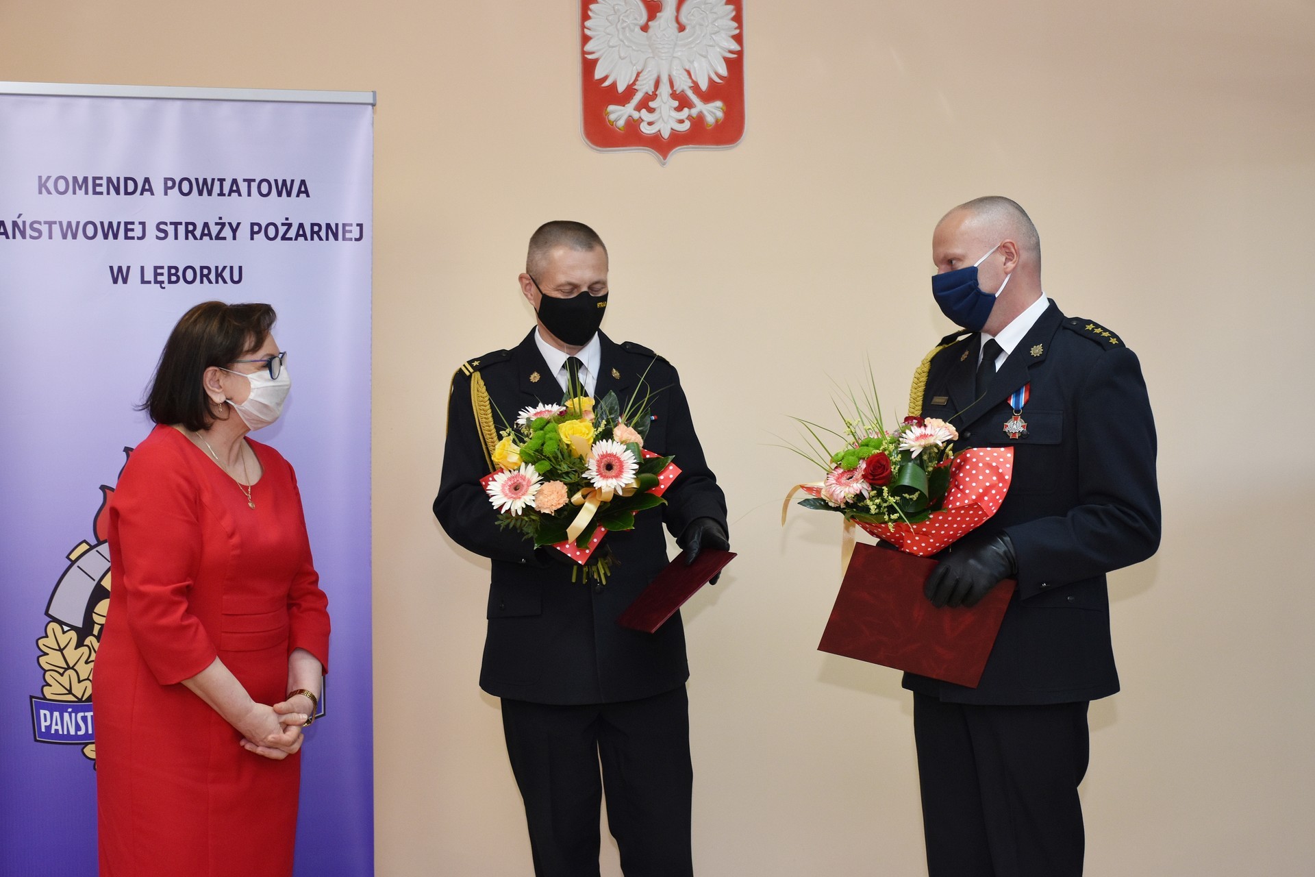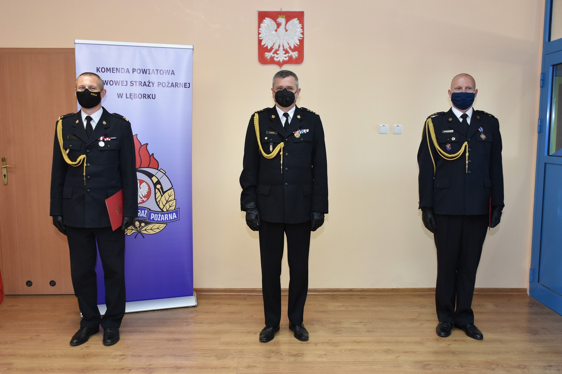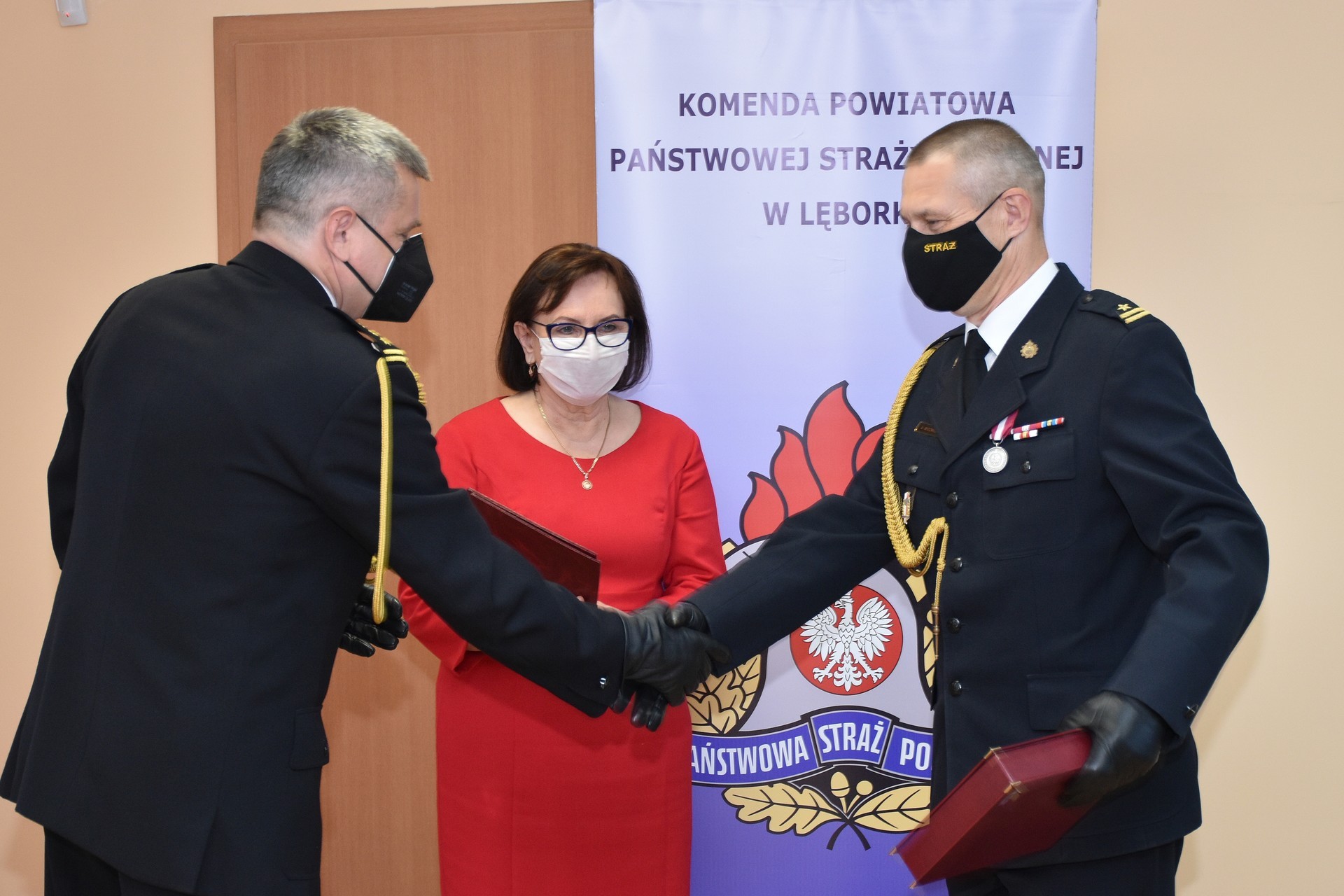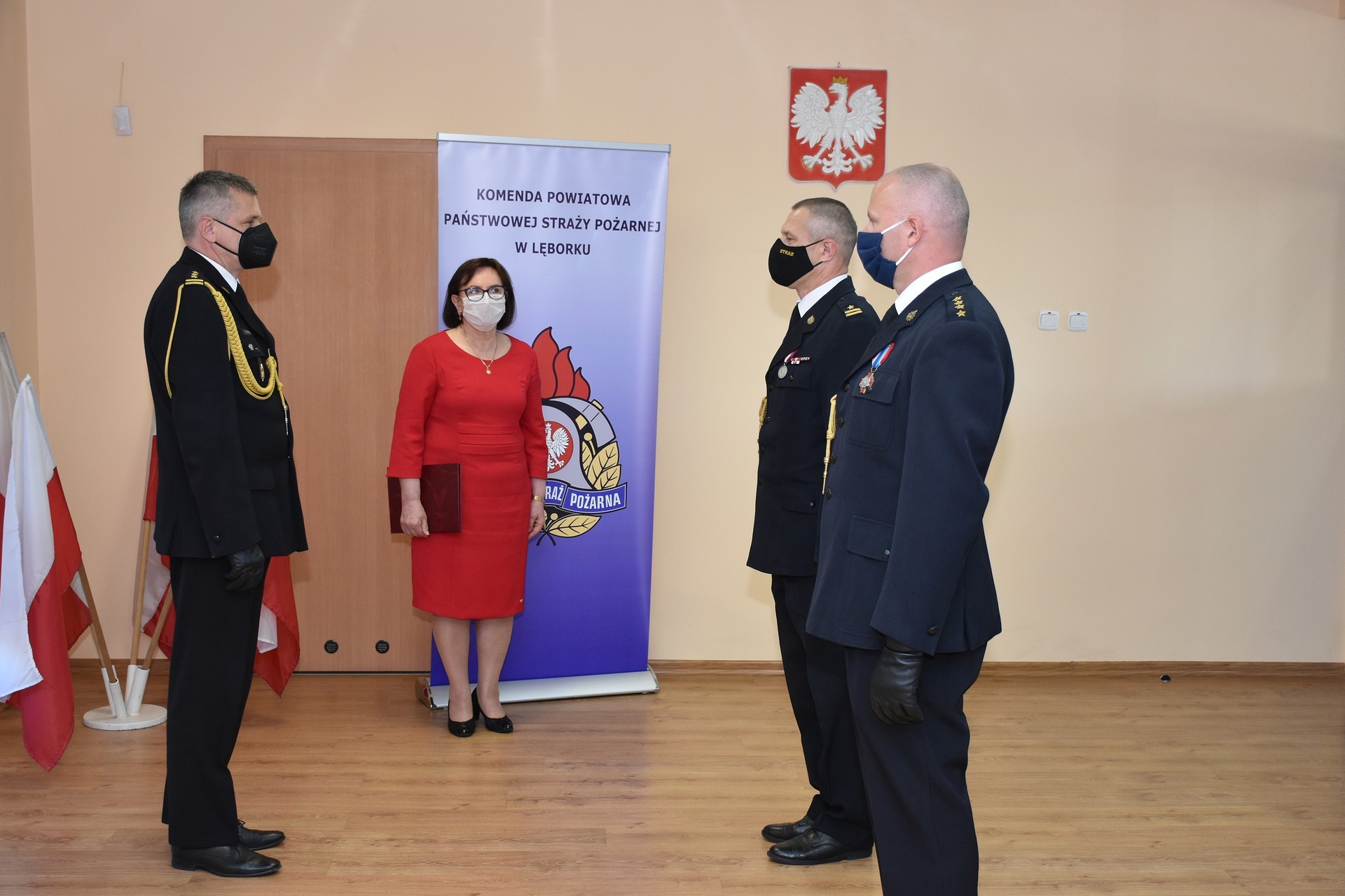 Akty odwołania i powołania lęborskim komendantom wręczył st. bryg. Piotr Socha, Komendant Wojewódzki Państwowej Straży Pożarnej w Gdańsku. Uroczystości w Komendzie Powiatowej Państwowej Straży Pożarnej odbyły się w kameralnym kilkuosobowym składzie osobowym ze względu na konieczność zachowania procedur bezpieczeństwa wynikających z zaleceń przeciwepidemicznych. Miejskie władze samorządowe reprezentował podczas uroczystości Witold Namyślak, Burmistrz Lęborka.